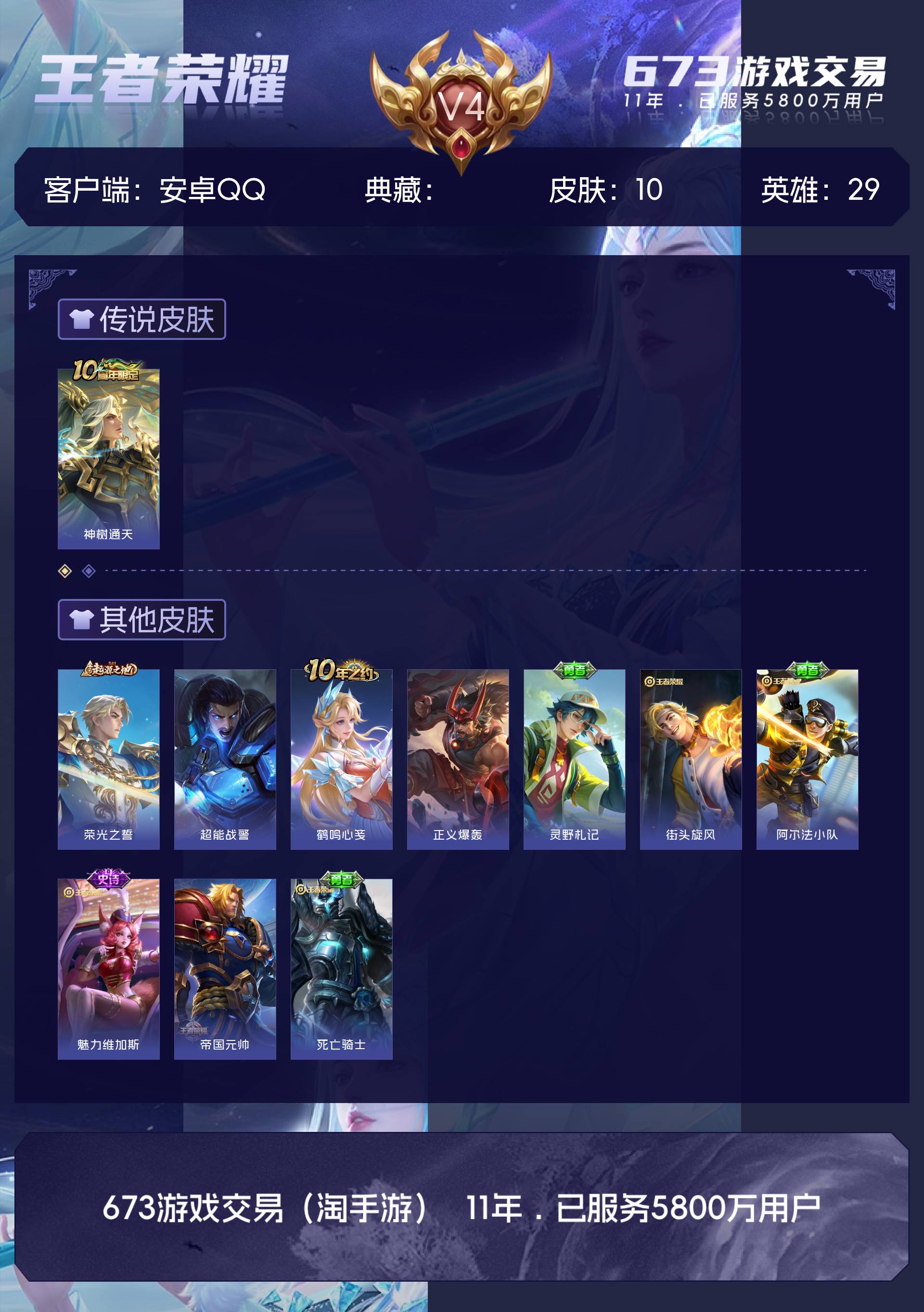 V4 皮肤10 英雄29 秩序白银 传说1 其他皮肤10