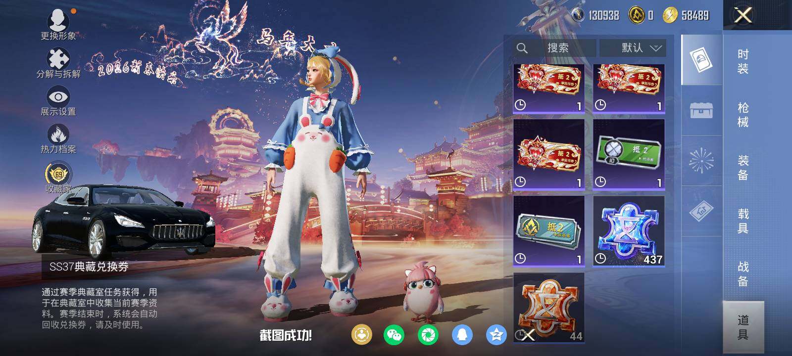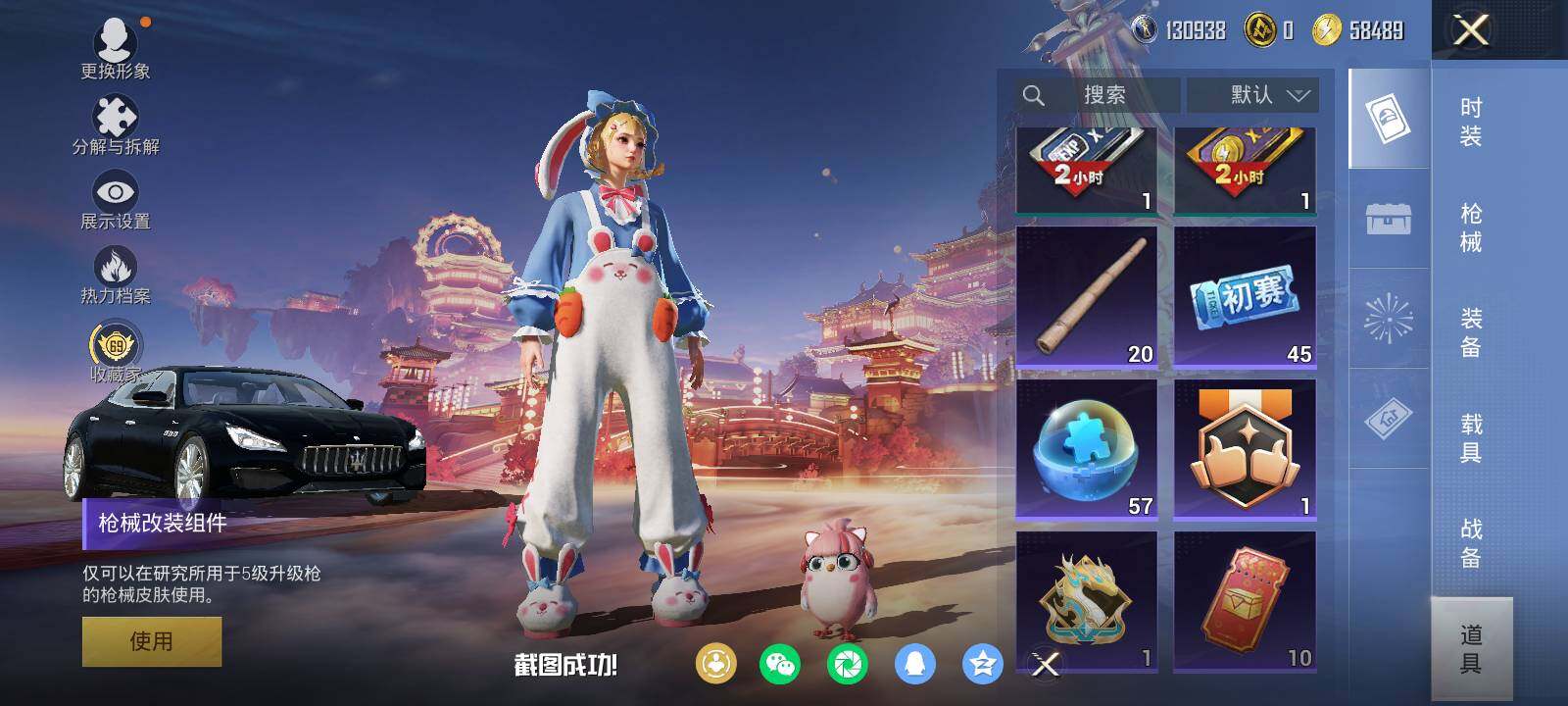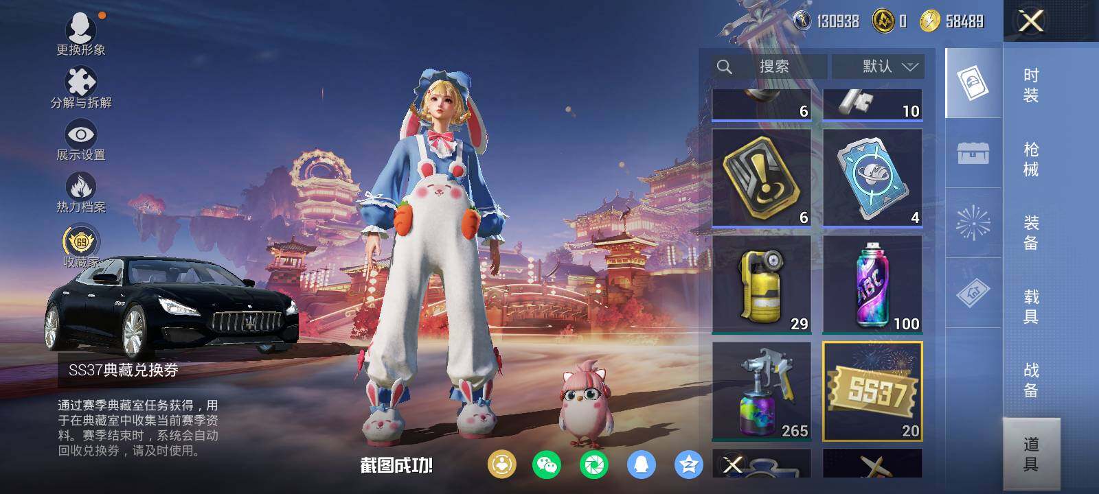 安卓 手Q-5粉装-3特效枪-1载具-3粉色飞行器-84373热力值-19王牌印记-192套装-278枪皮