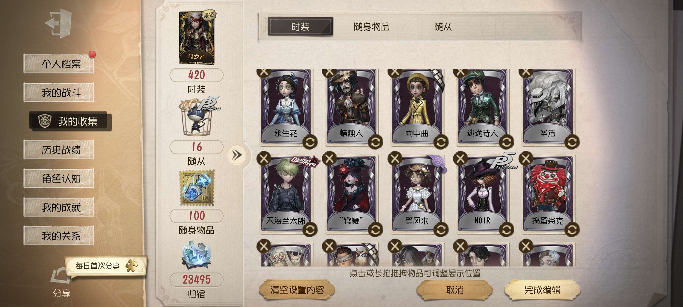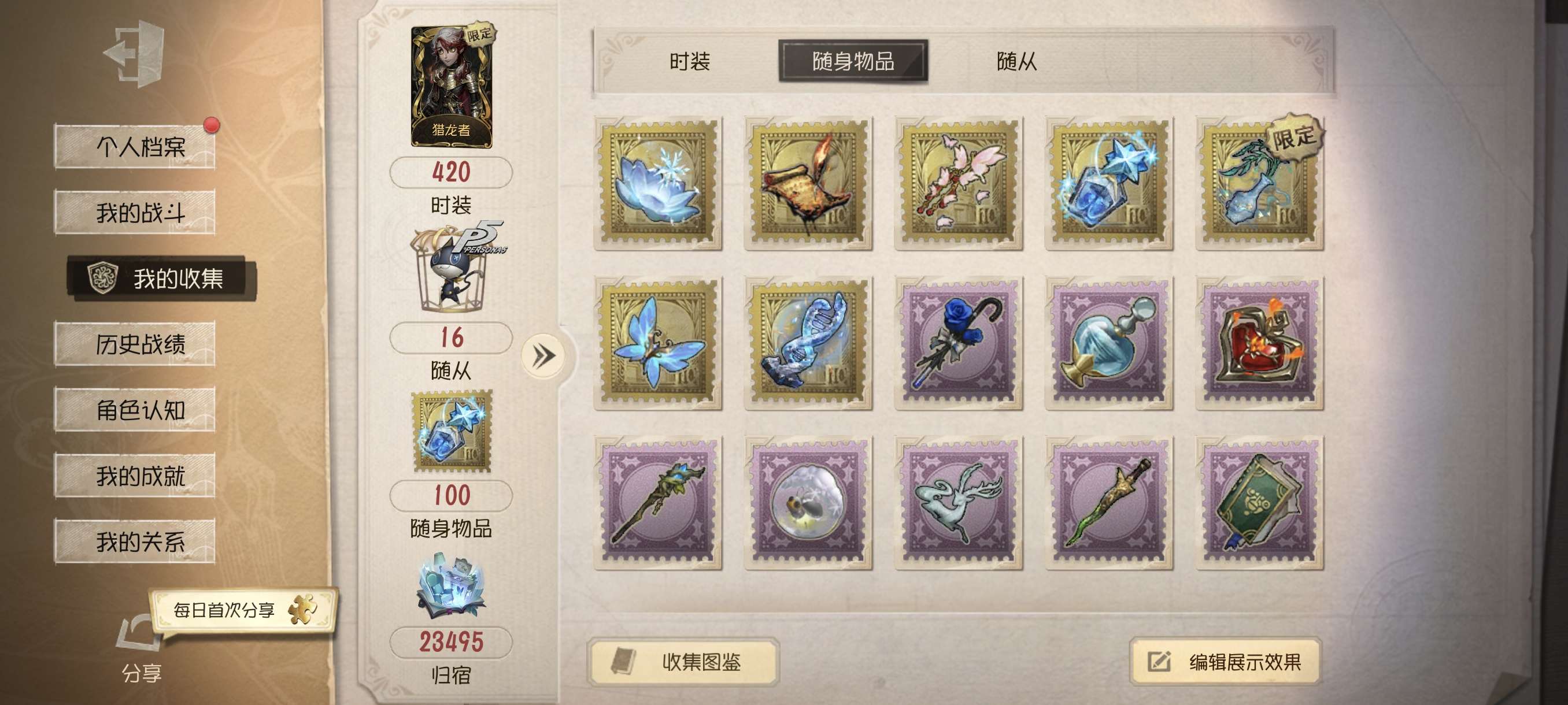 随身物品数量: