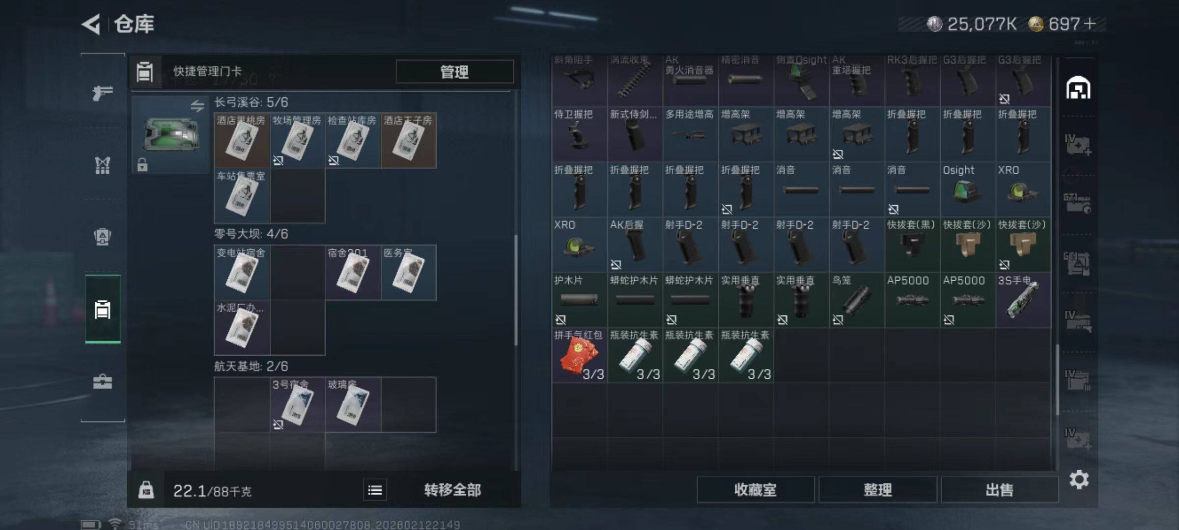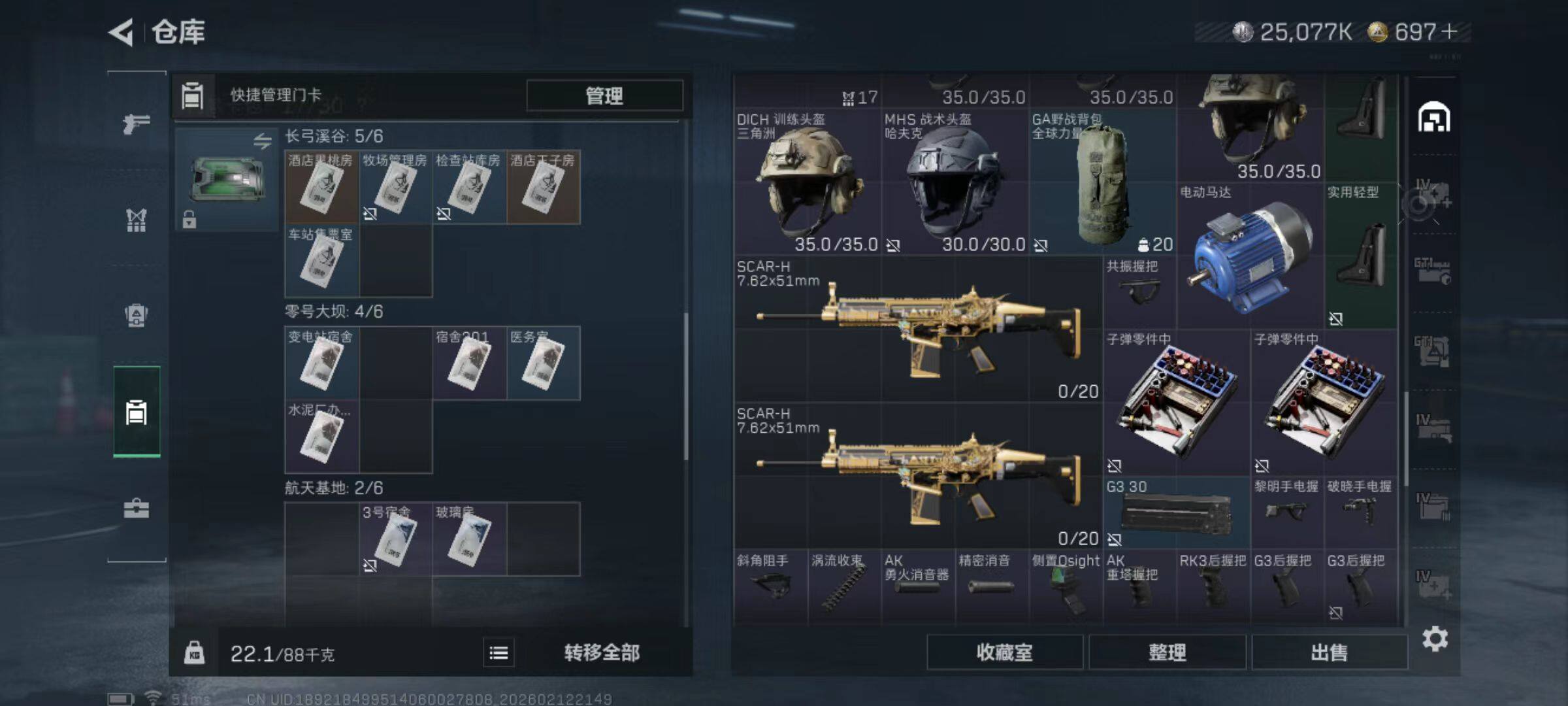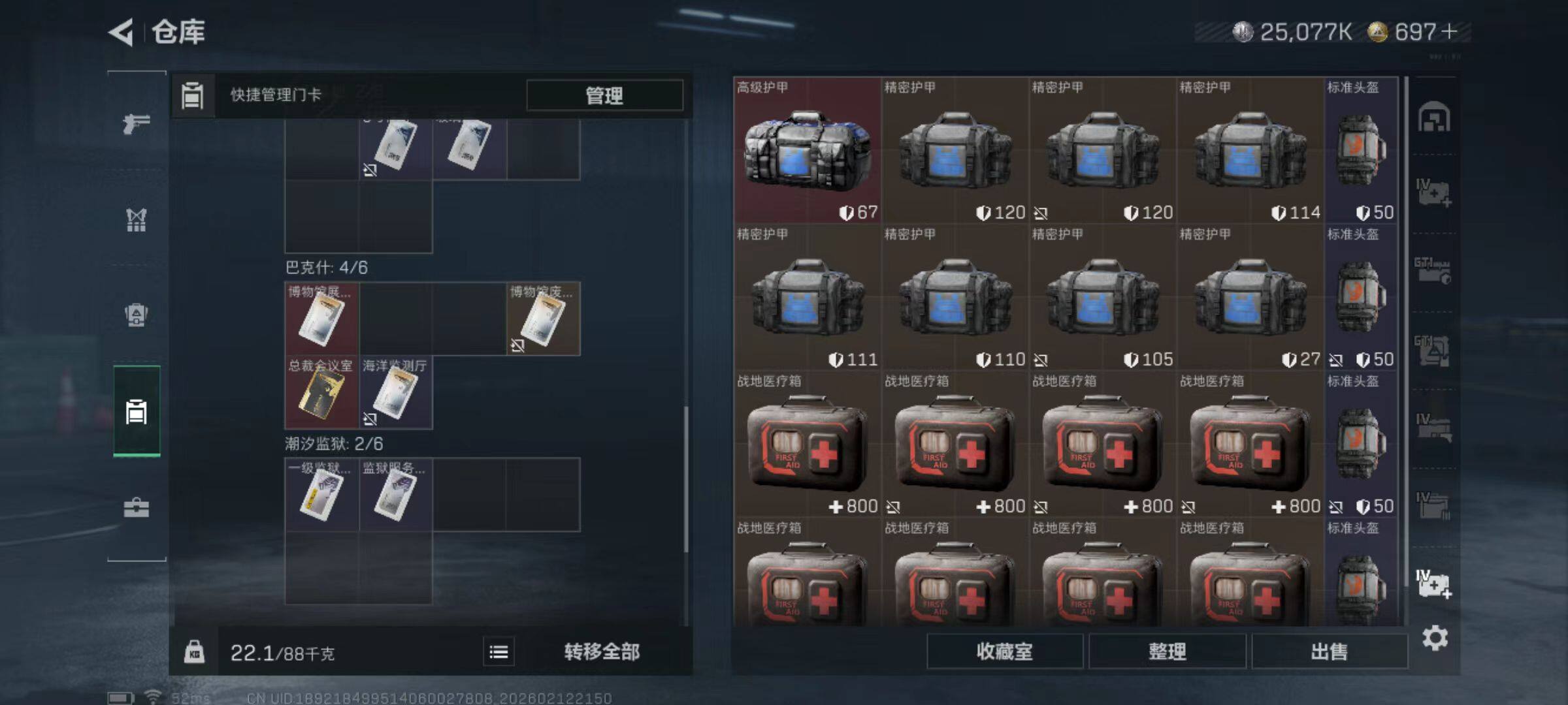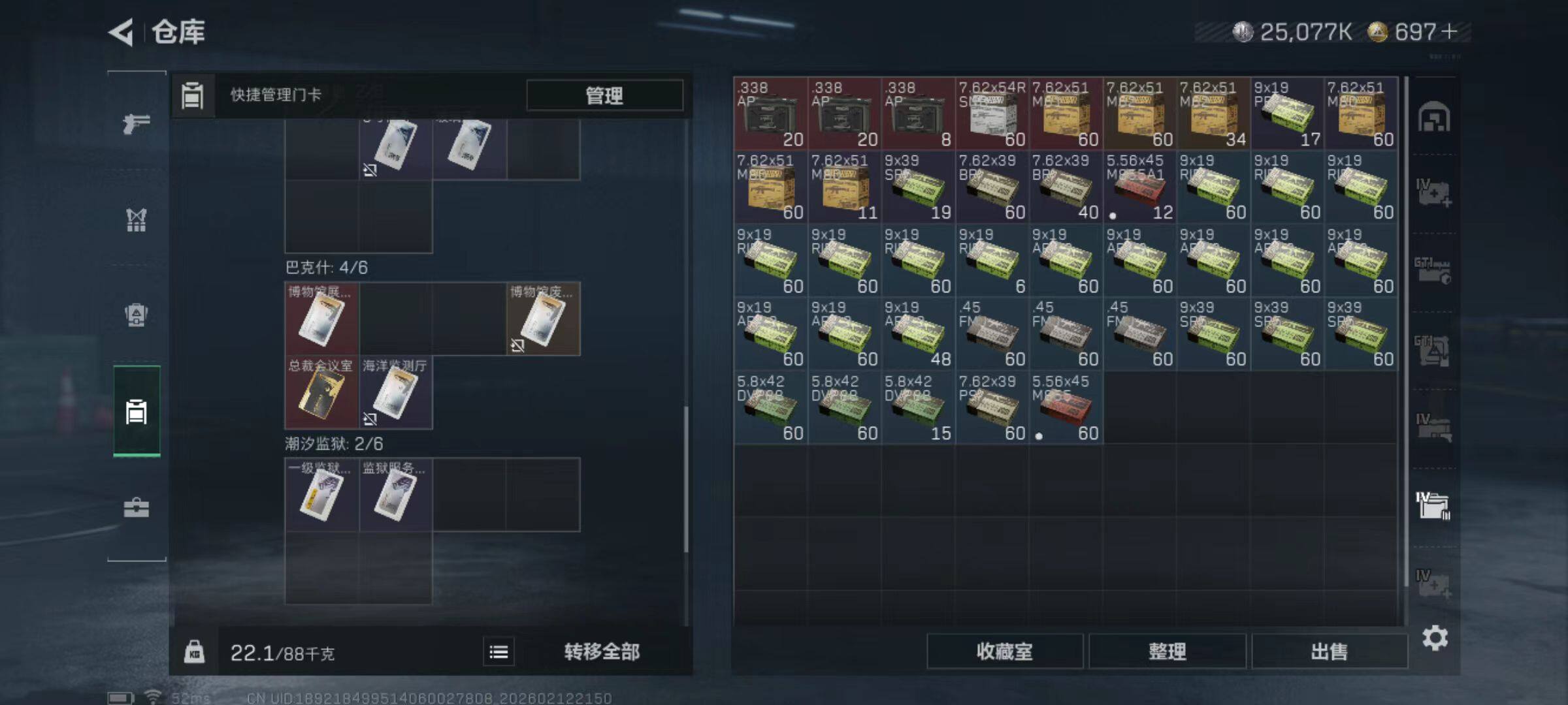 总资产(M):206M/哈夫币(K):25077K/哈夫币(K):25077K/传说枪皮数:16/全面战场等级:50_段位:上等兵/烽火地带等级:60_段位:黄金/红狼-电锯惊魂/近战-黑鹰/M4A1突击步枪-蚀金玫瑰/M4A1突击步枪-阿米娅/AK-12突击步枪-特斯拉线圈/SCAR-H战斗步枪-启航/G3战斗步枪-骑士/CAR-15突击步枪-阿米娅/腾龙突击步枪-捞点薯条/KC17突击步枪-