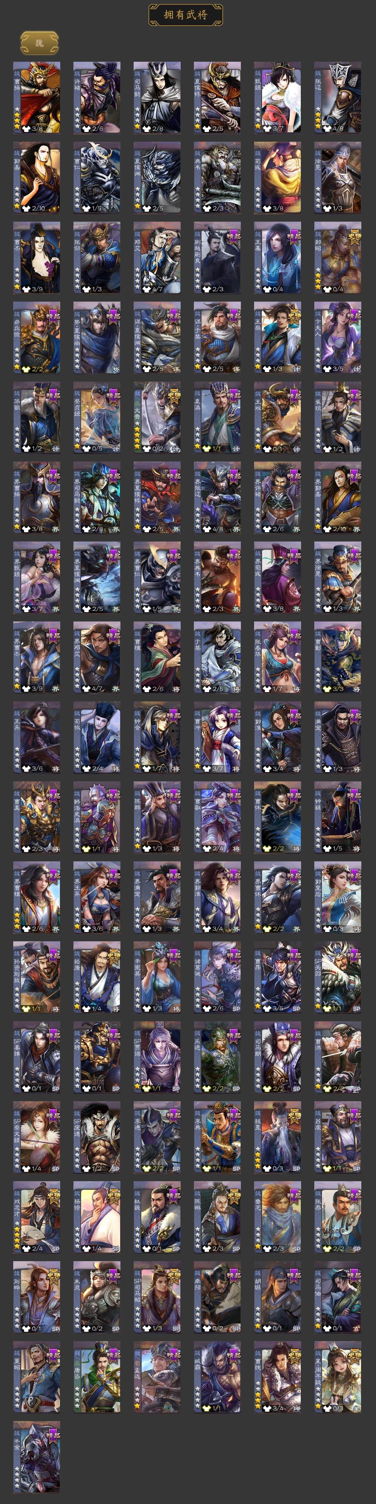 神赵云,神甘宁,神诸葛亮,SP司马昭,星周不疑,王粲,杨修,嵇康,郝昭,陈琳,曹纯,戏志才,刘晔,程昱,谋诸葛亮,马云騄,谋夏侯氏,谋赵云,诸葛瞻,赵襄,王平,沙摩柯,