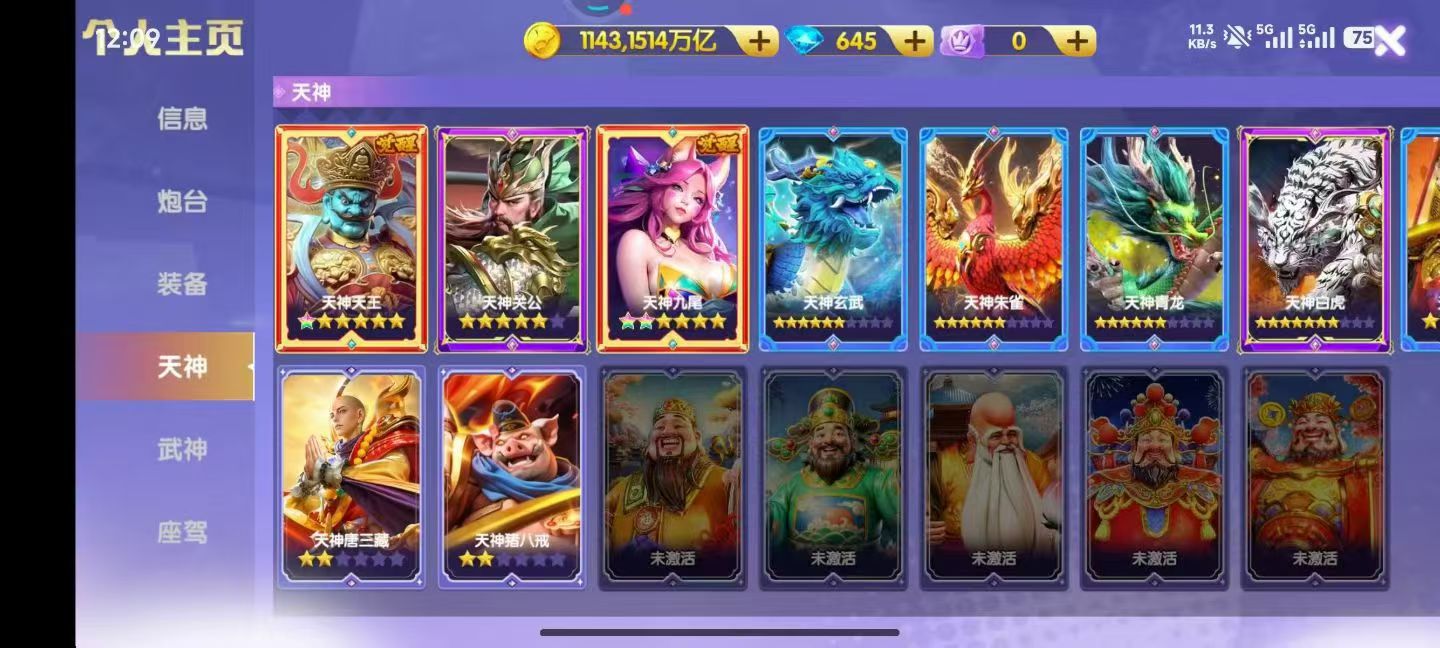 1143兆。2.5万炮神装24连击。天神双觉醒双龙。洪荒三级西游羁绊,15武神连击1800便宜出