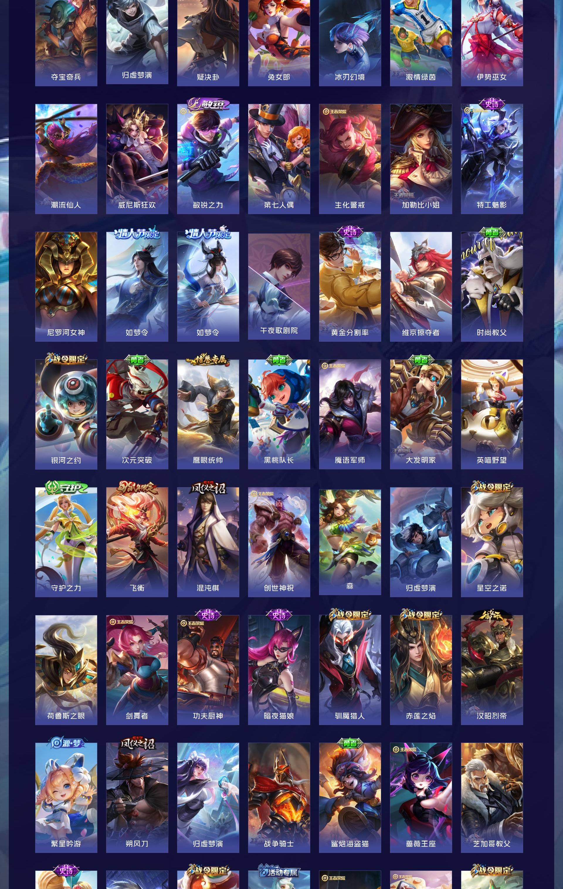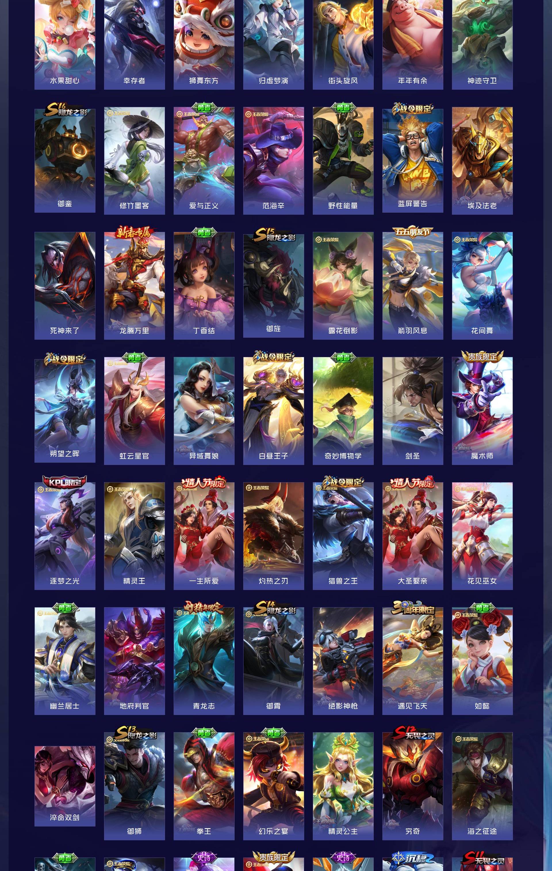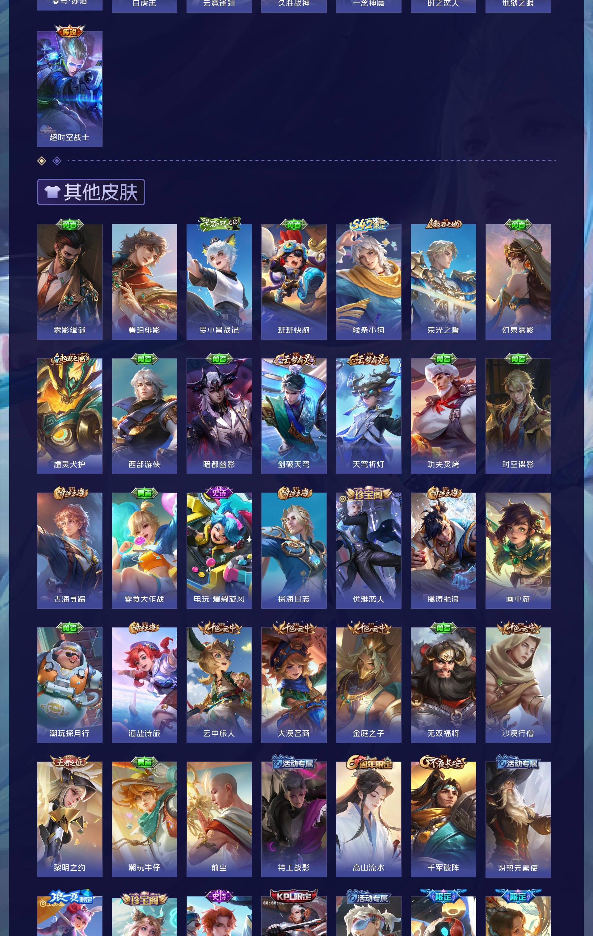 V10 皮肤346 英雄128 至尊星耀 荣耀典藏5 传说30 其他皮肤318