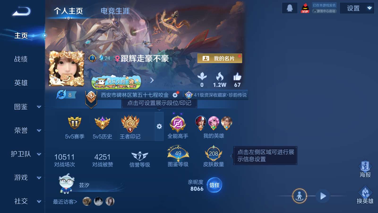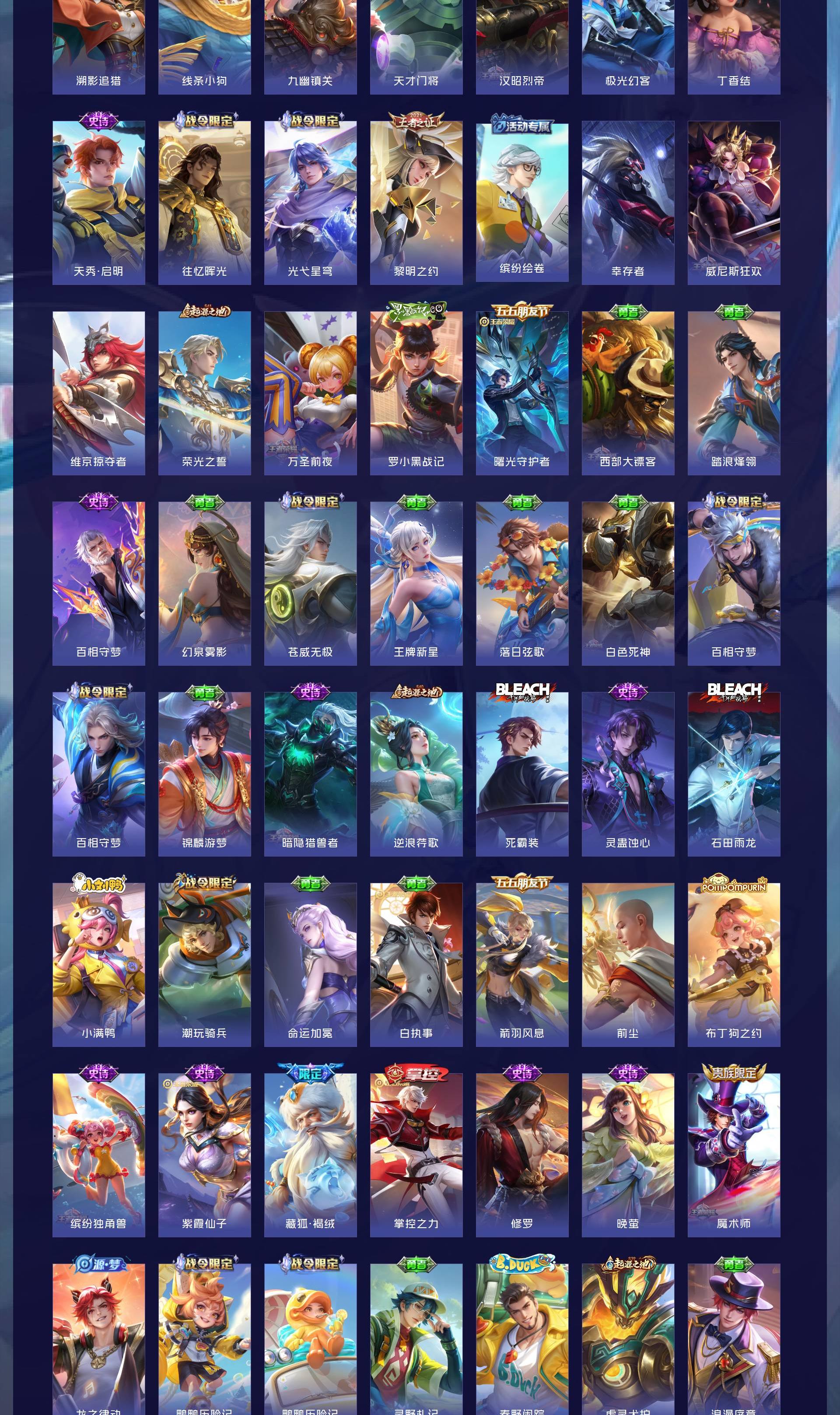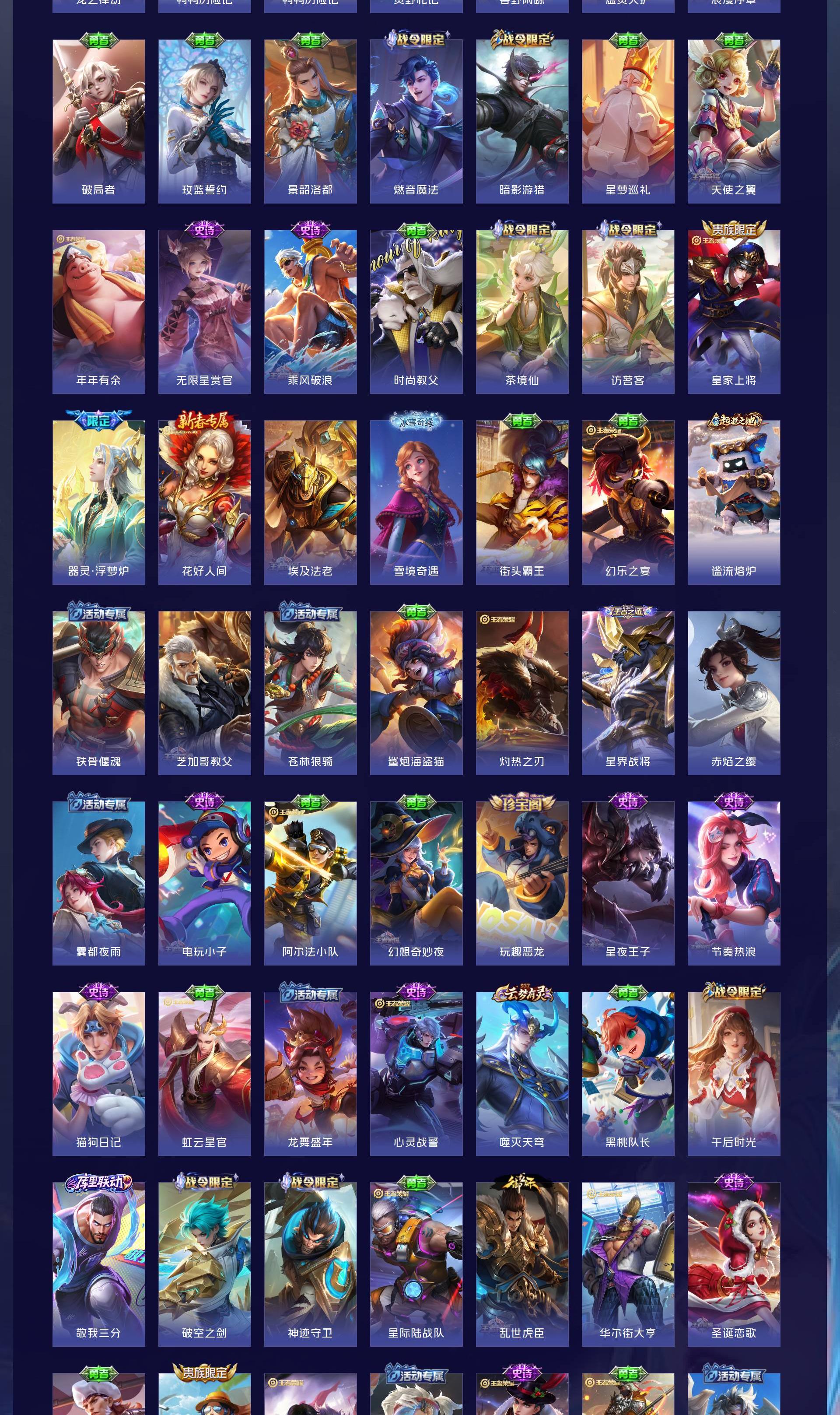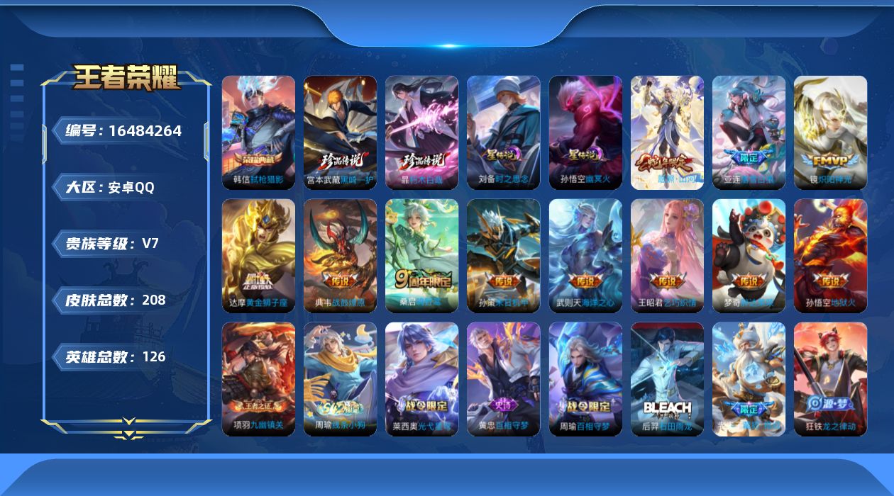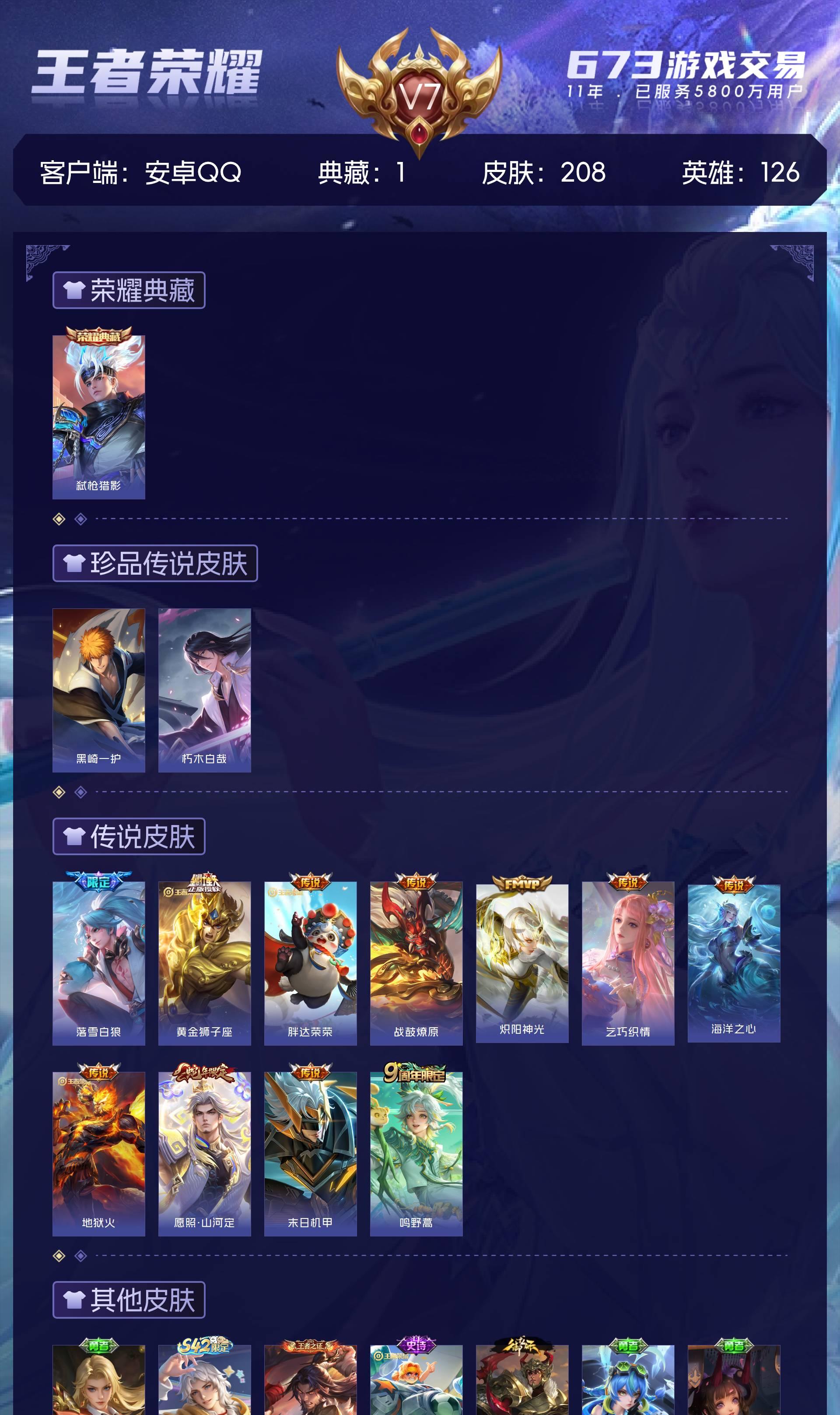V7 皮肤208 英雄126 至尊星耀 荣耀典藏1 珍品传说2 传说11 其他皮肤200