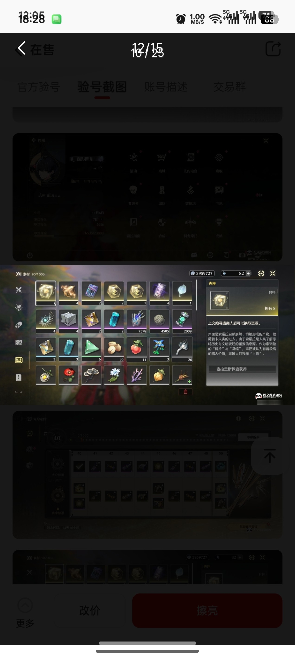 通过App,与卖家商议价格及保险,并向卖家索要账号最新截图,确认后下单购买。
