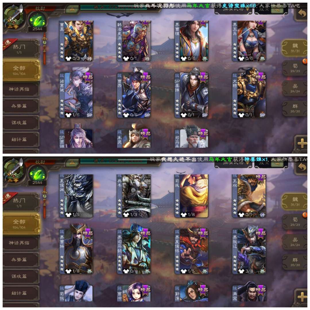 官服字母活绑势太史慈吴景双史诗,天宫军八司马孚2千5魂4万毛(可半价史诗和动皮),三卡充足活树