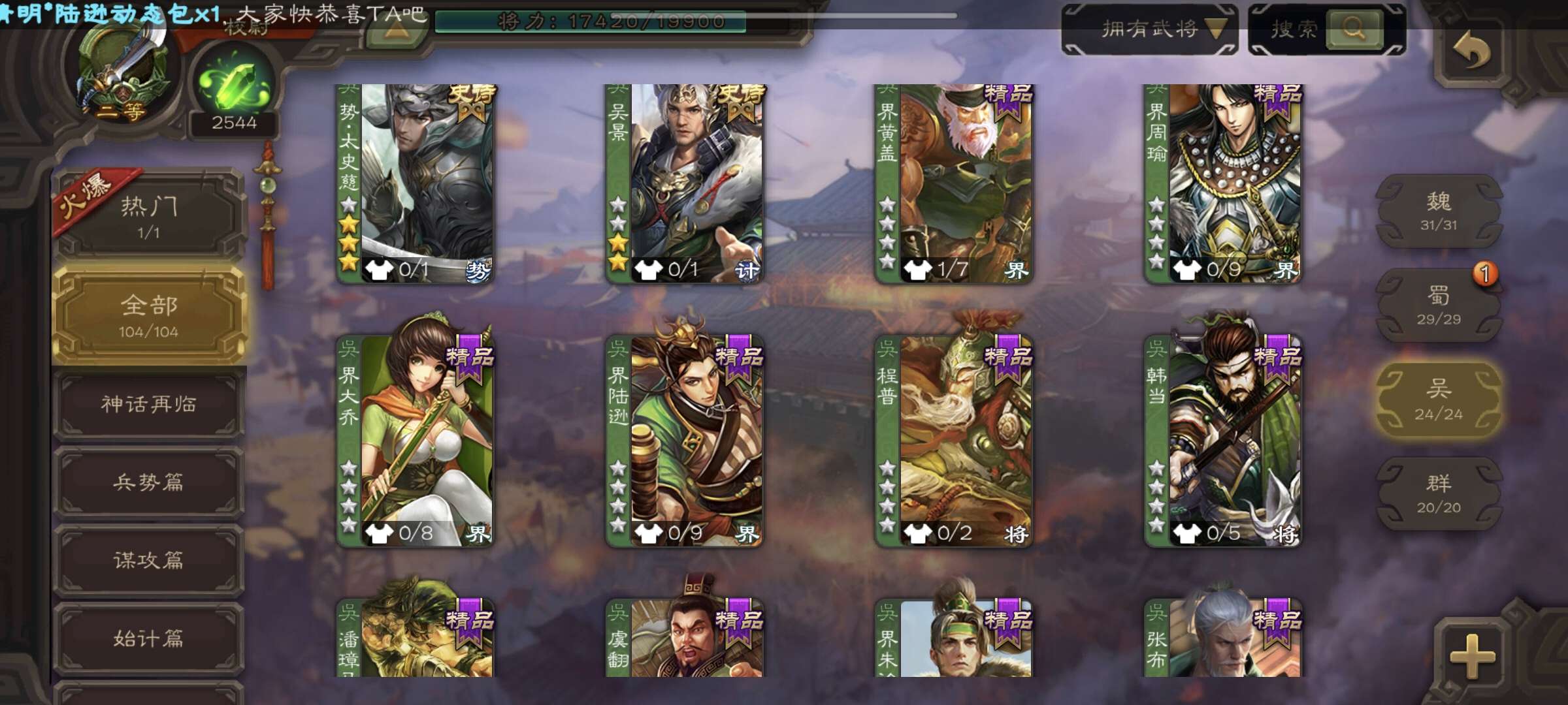 史诗武将数量: