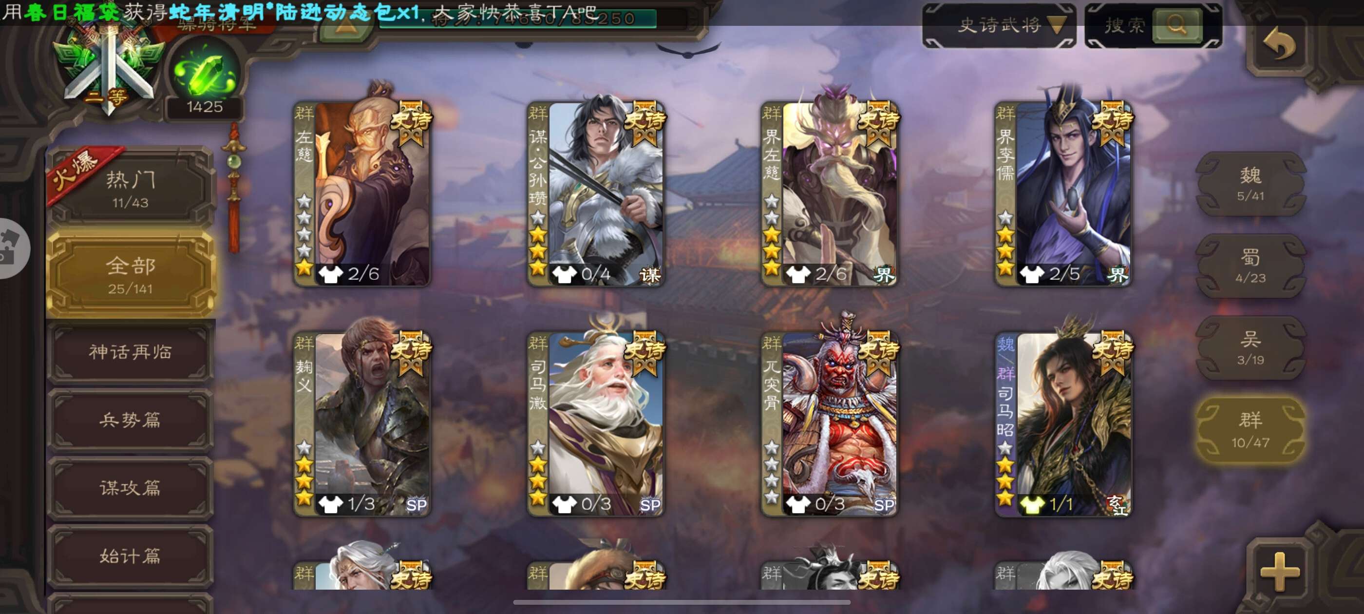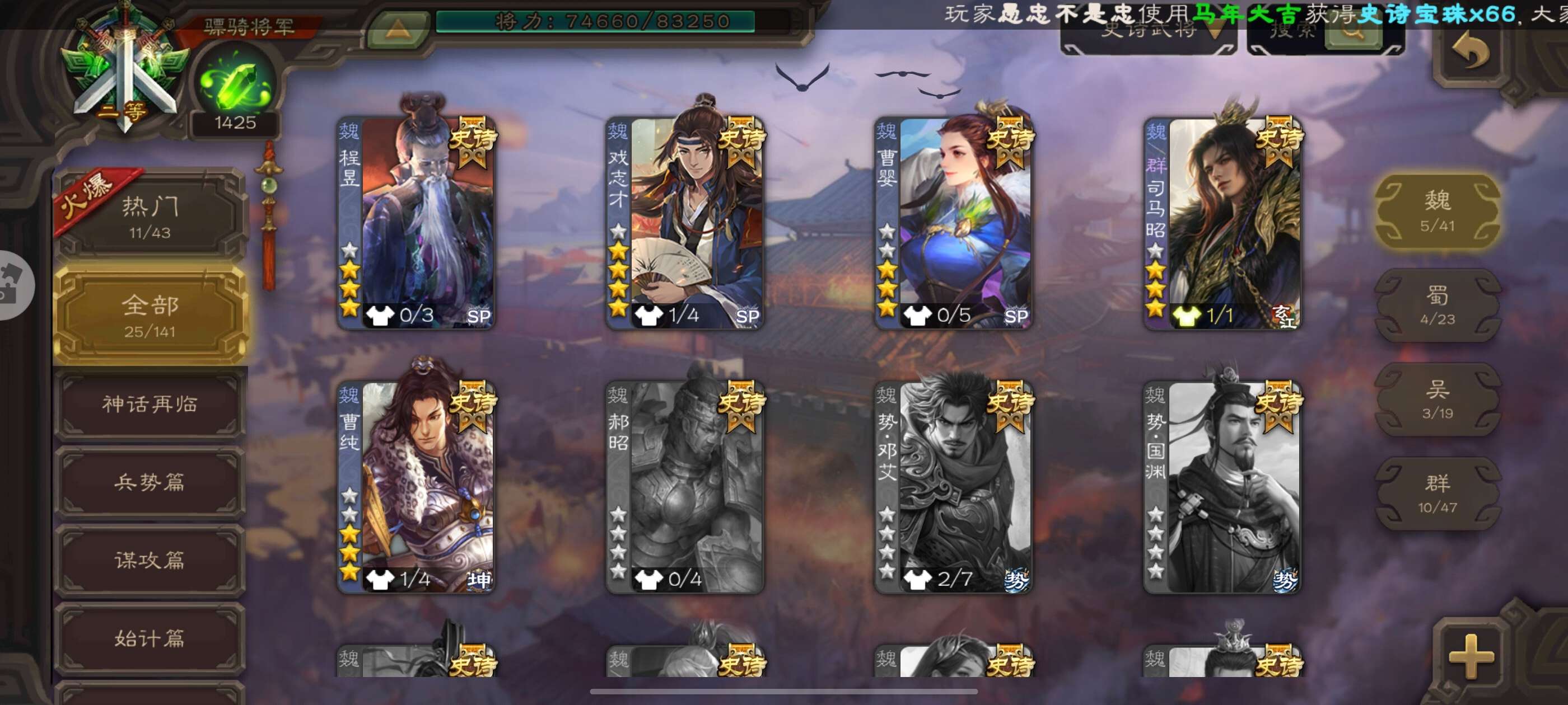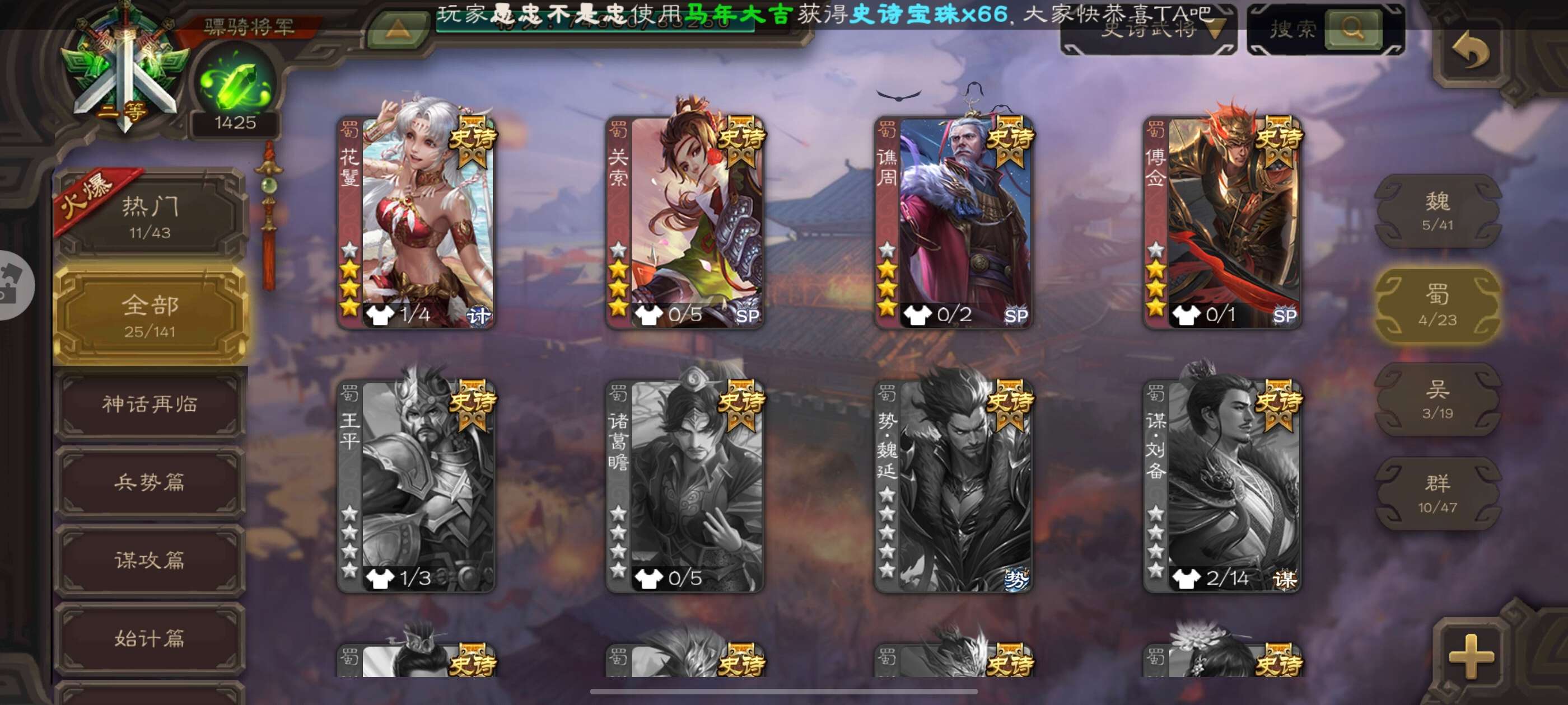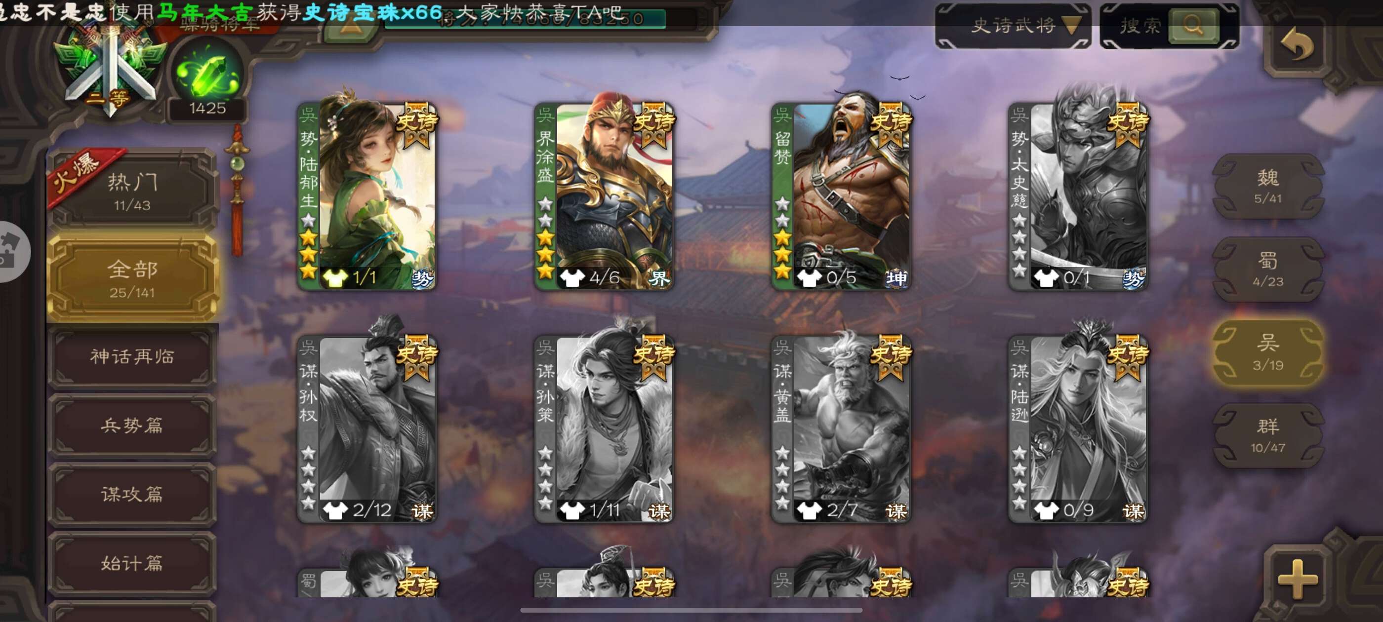 史诗武将数量: