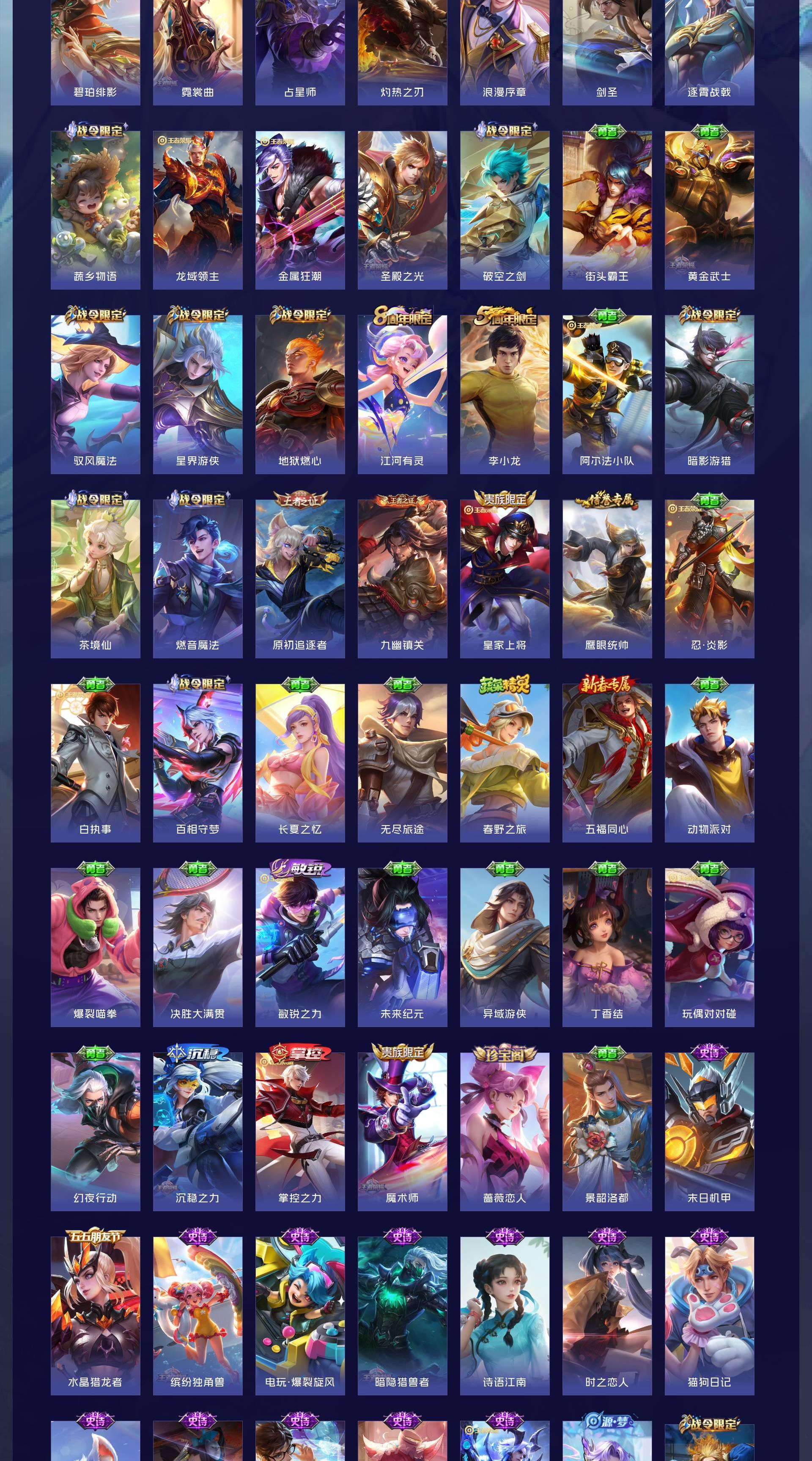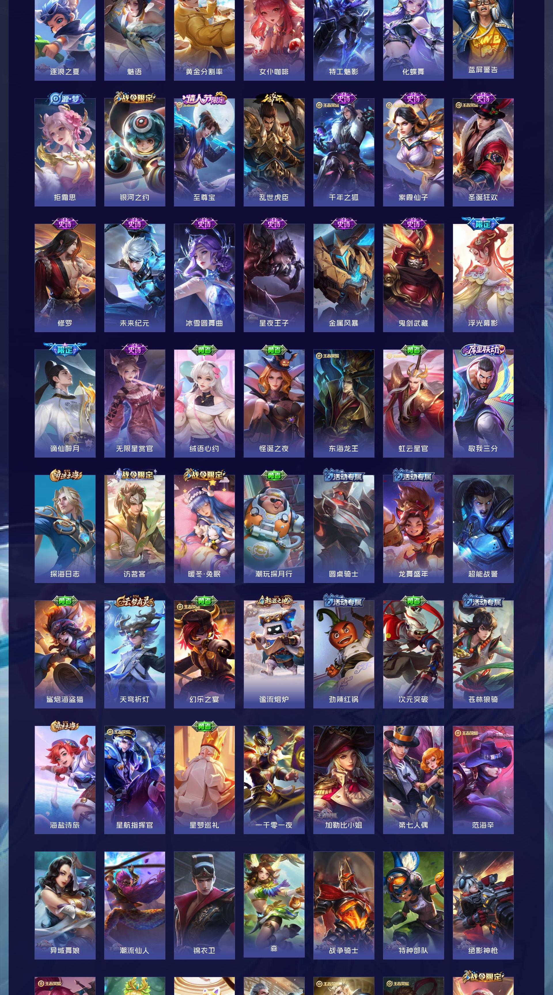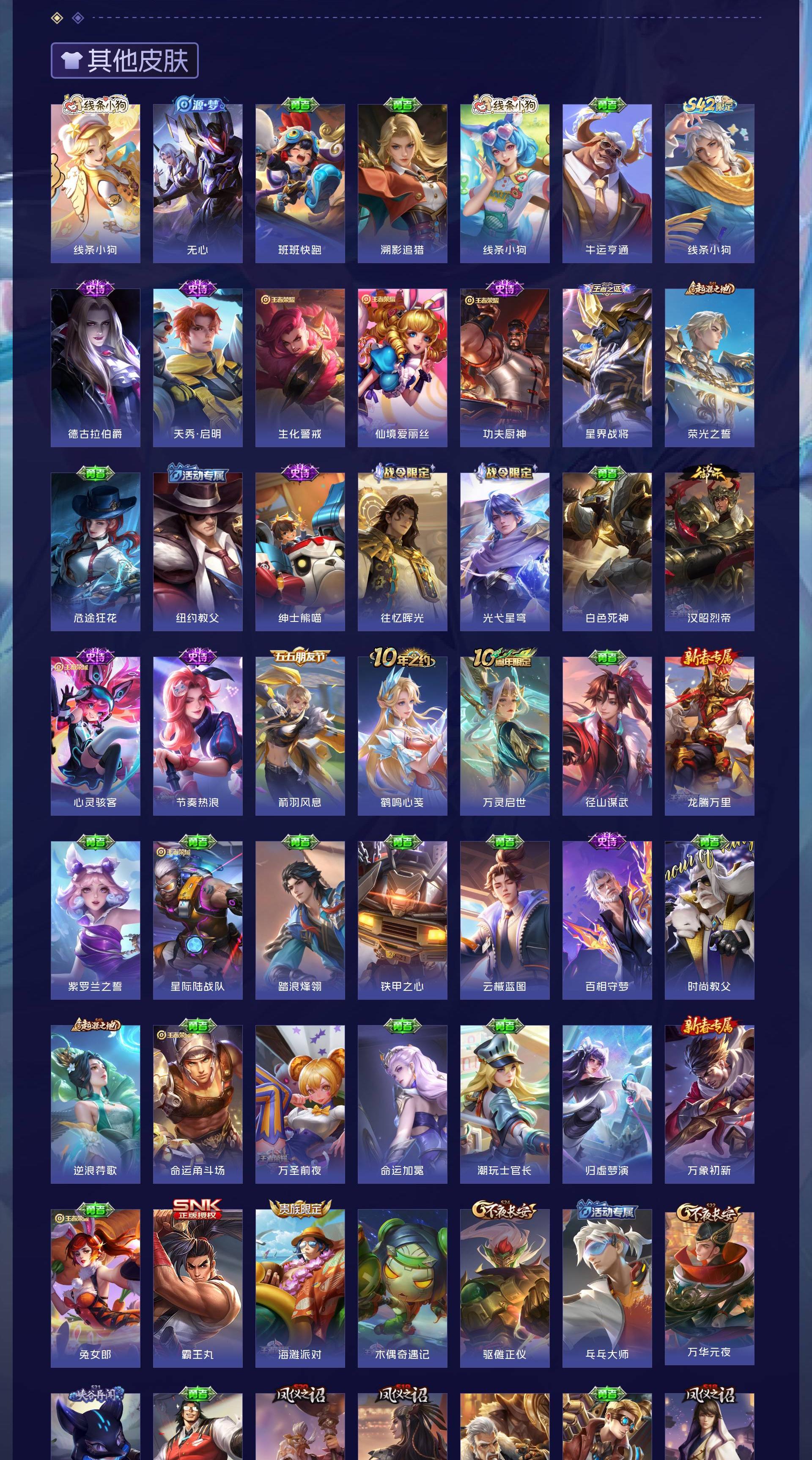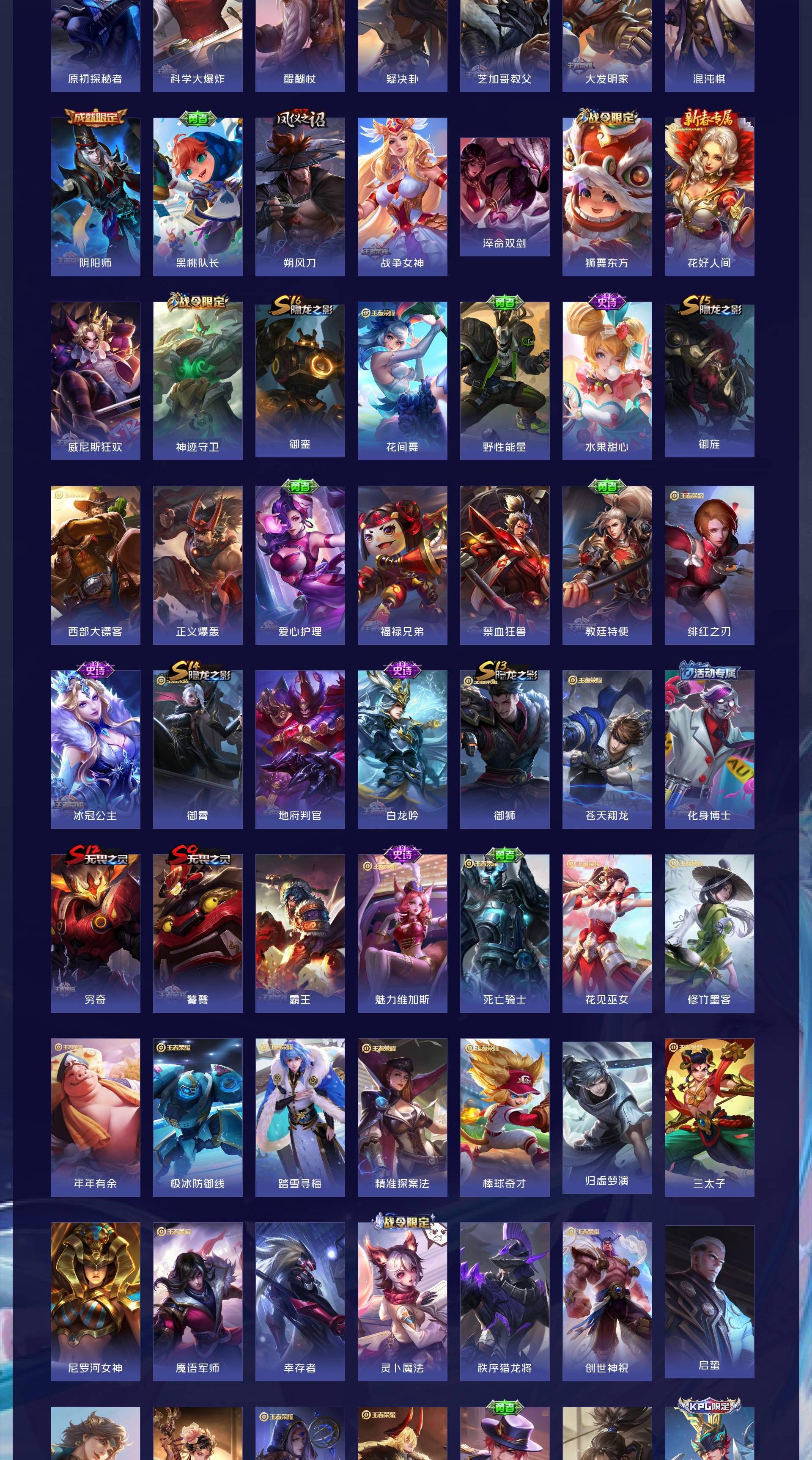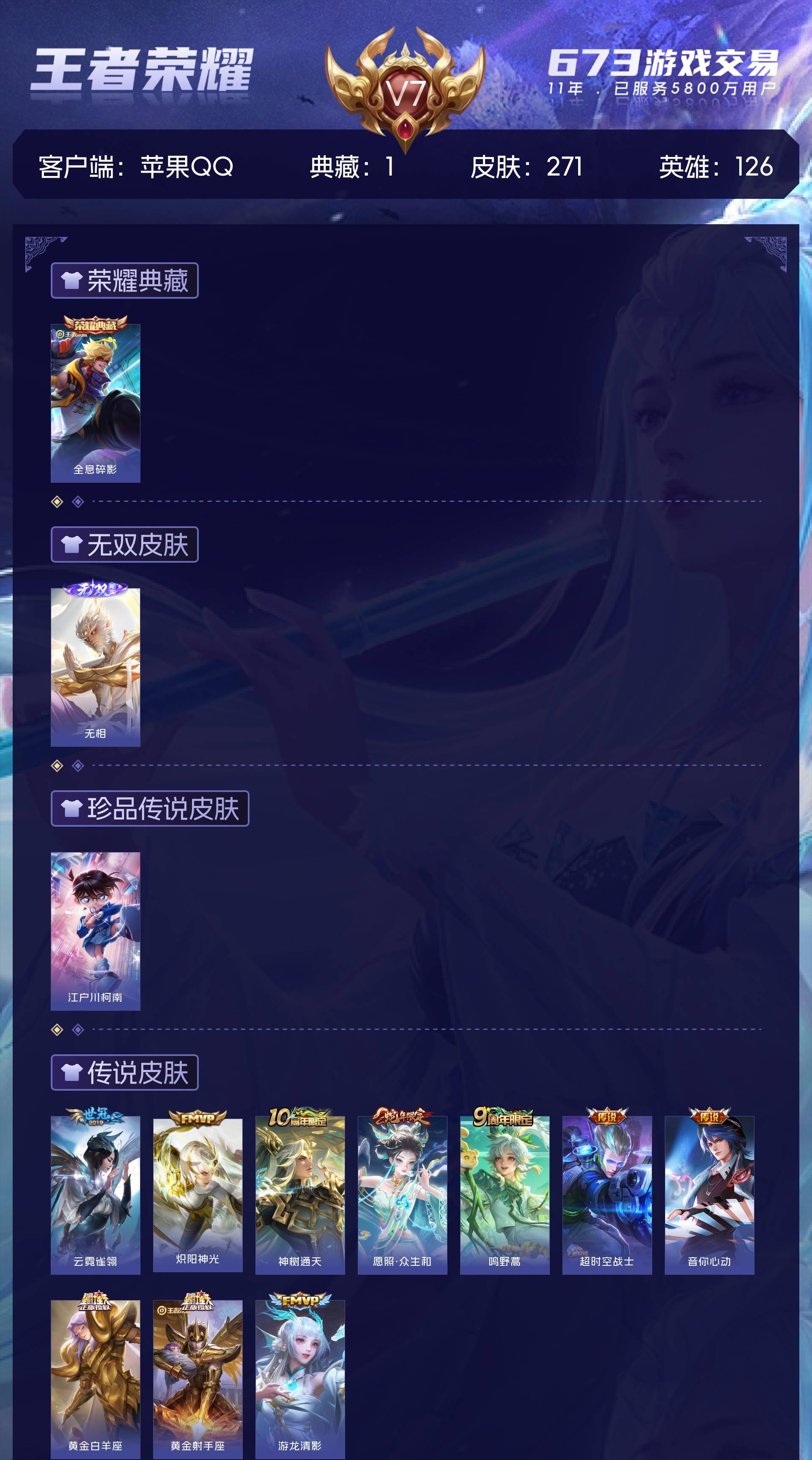 V7 皮肤271 英雄126 至尊星耀 荣耀典藏1 无双皮肤1 珍品传说1 传说10 其他皮肤263