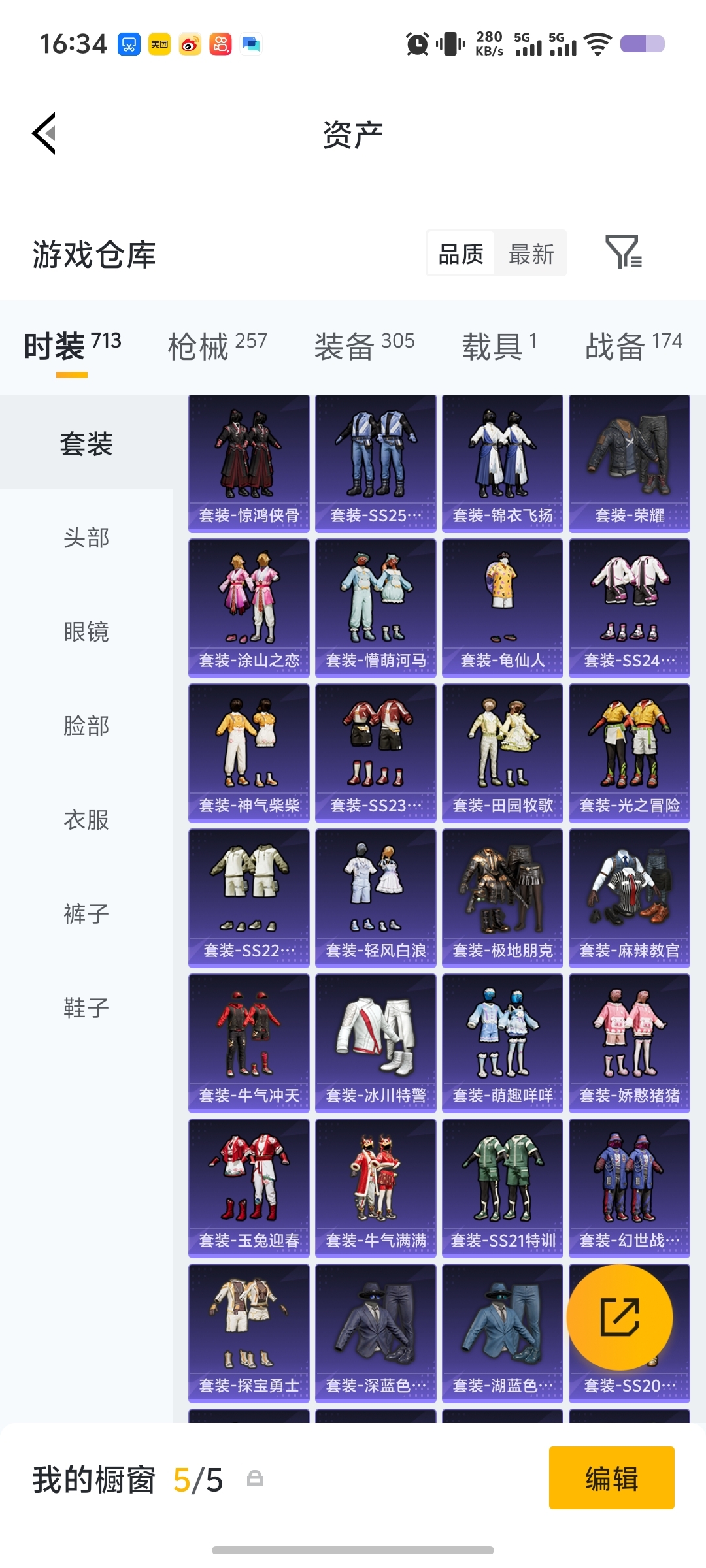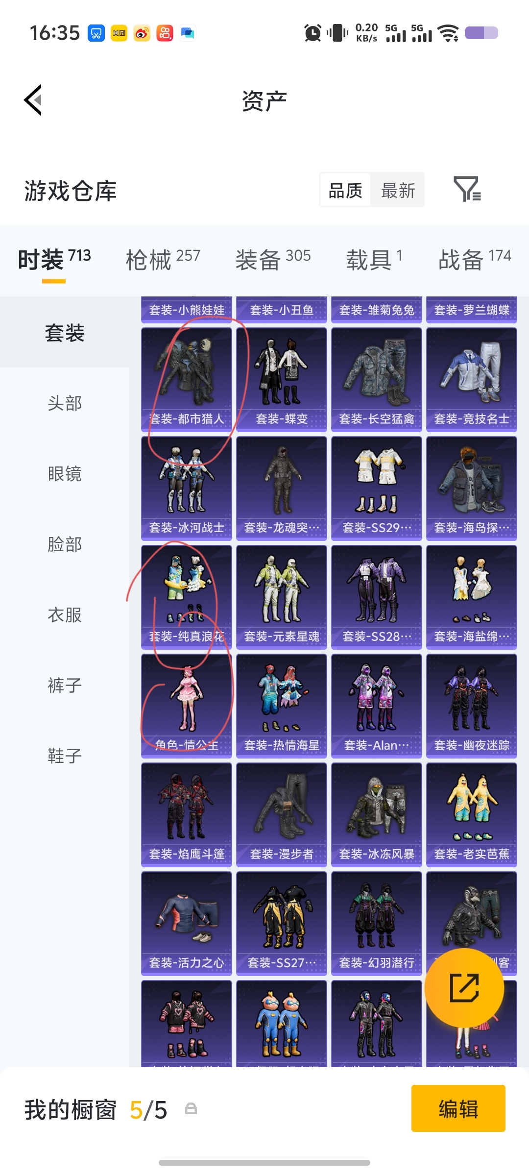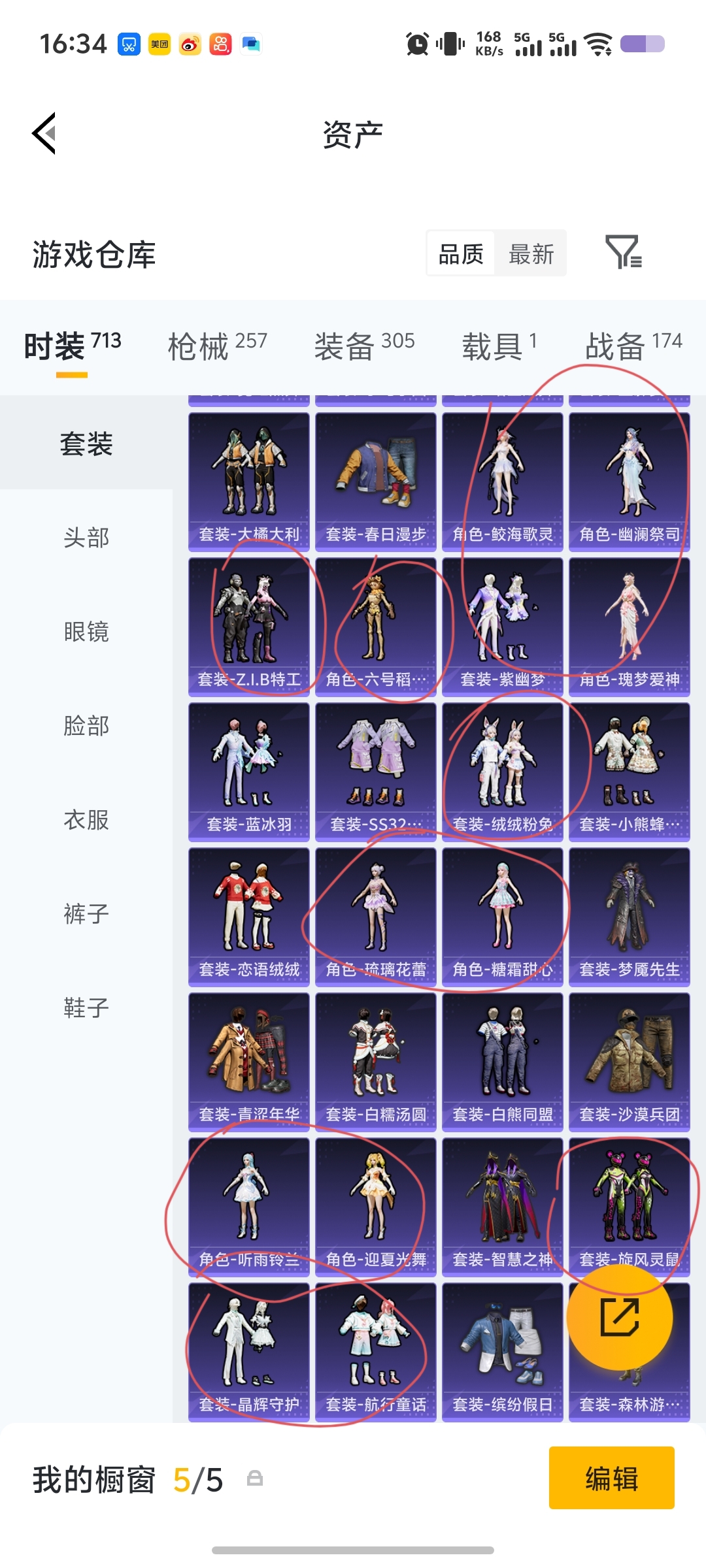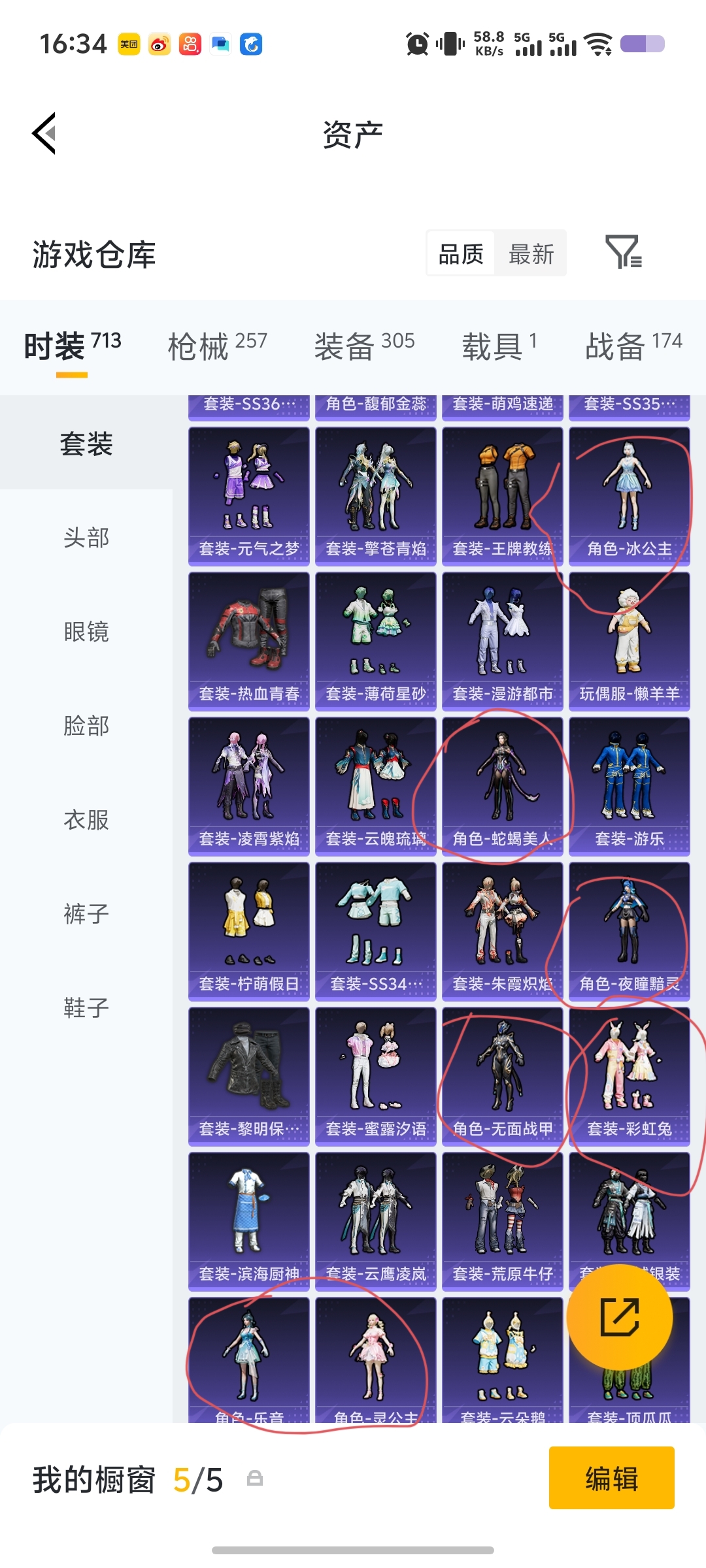 1两套红装,有个3级,多个热门好看的女皮粉装,其它我主要抽小转盘服装和一些中大转盘的副套多总充2w