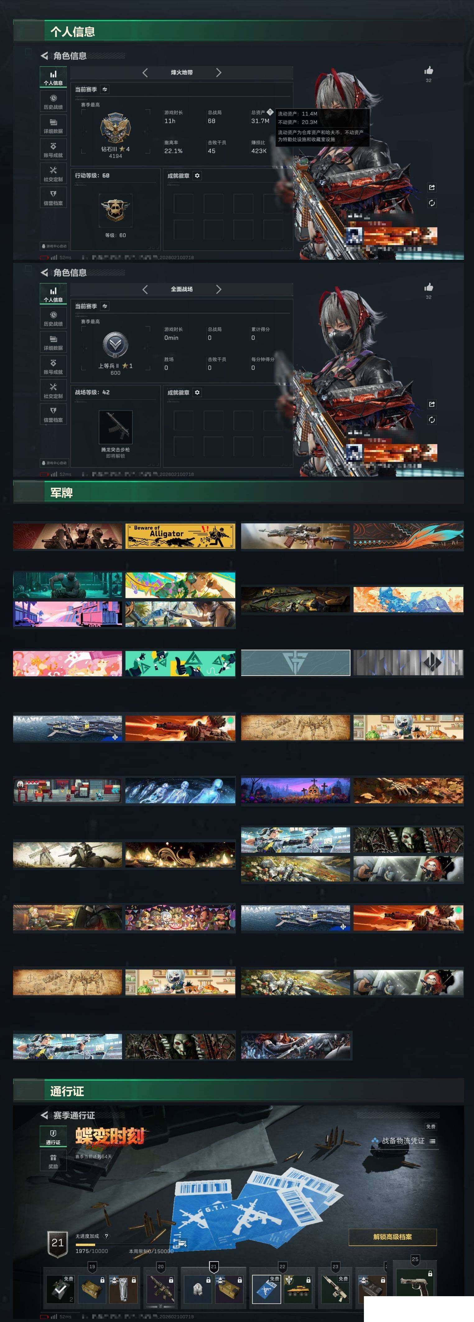 【sjs8122】信条 m7 维什戴尔 烽火地带段位: 钻石 全面战场段位: 上等兵 总资产: 31000000 哈夫币: 119000 sjs8122 干员外观: 骇爪-维什戴尔,红狼-电锯惊魂,露娜-金牌射手(S7) 传说武器皮肤: QBZ95-1突击步枪-破军,M4A1突击步枪-阿米娅,CAR-15突击步枪-阿米娅,M250通用机枪-骑士之心,R93狙击步枪-维什戴尔,SCAR-H战斗步枪-启航,G3战斗步枪-骑士,KC17突击步枪-电锯惊魂,近战-信条,P90冲锋枪-信条,SR-25射手