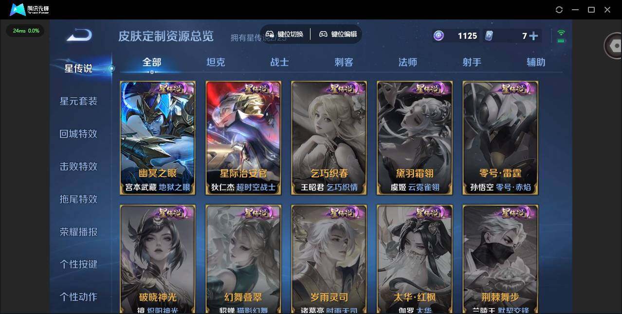 贵族等级: V8 英雄数: 127 皮肤数: 239 荣耀水晶: 拾光映像 星传说: 幽冥之眼,星际治安官 传说皮: 黄金狮子座,黄金白羊座,地狱之眼,胖达荣荣,超时空战士-狄仁杰,澜逐花归海,幻光神枪,祥瑞亨通,神树通天 限定皮: 李小龙,梁祝,天狼狩猎者,神奇女侠,白虎志,玄武志,一生所爱,武陵仙君,高山流水,猪悟能,匿光追影者,傲雪梅枪,启示之音,至美·乘鲤谣