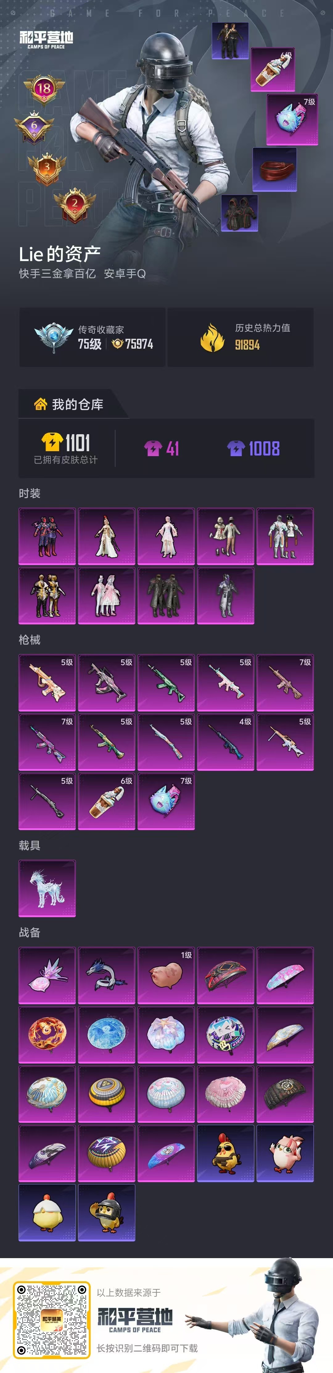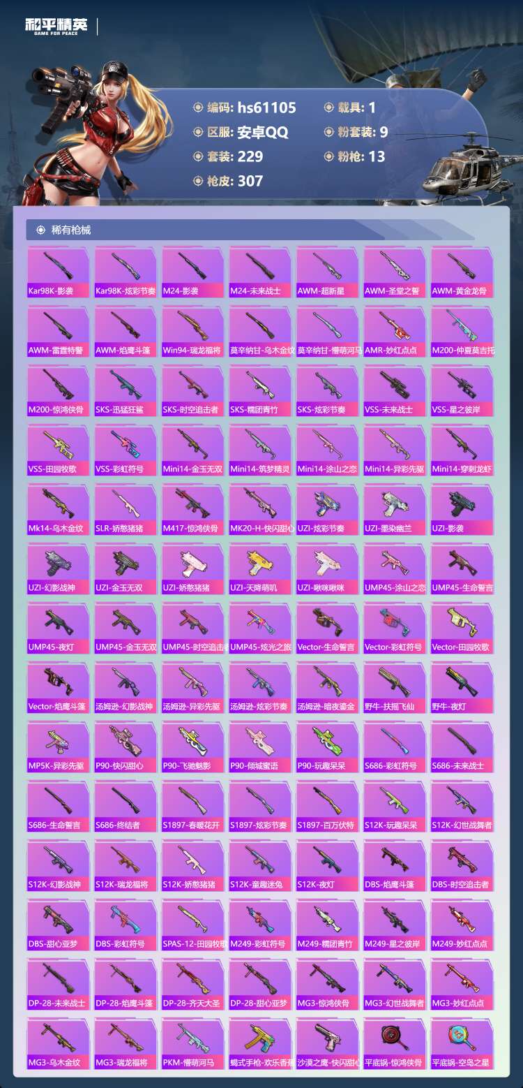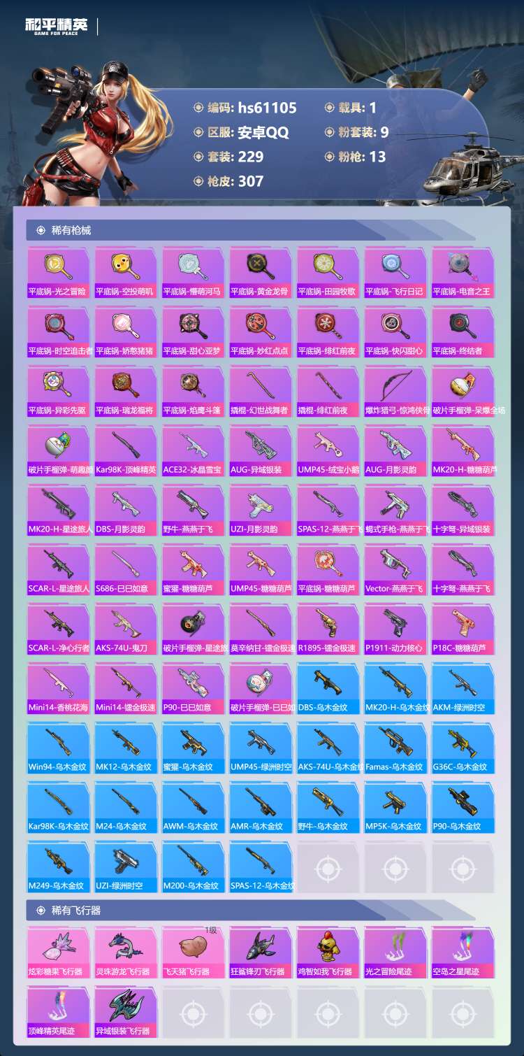 hs61105 安卓手Q-18王牌印记-9粉装-13特效枪-1载具-91894热力值-229套装-3