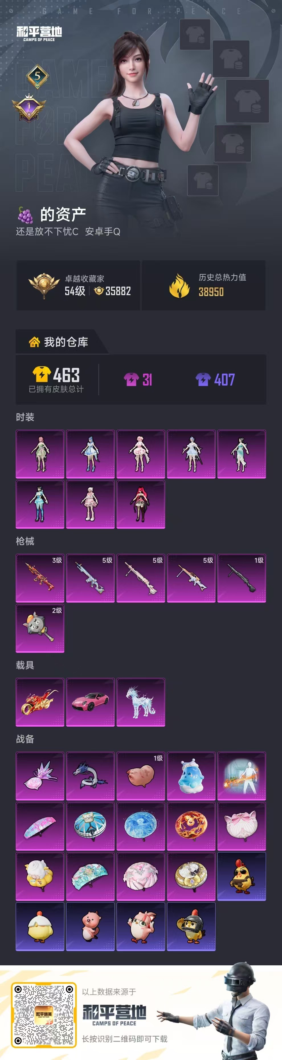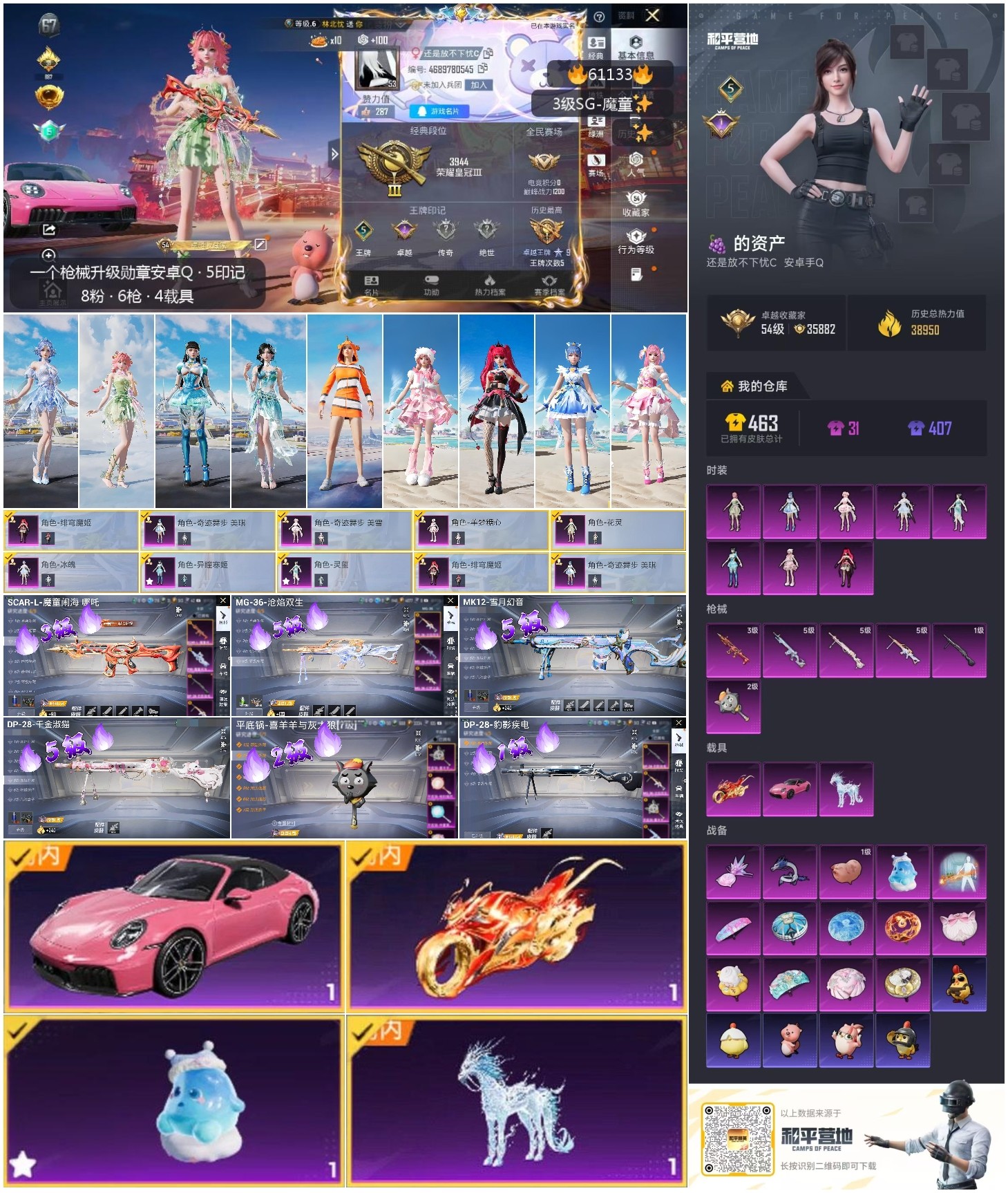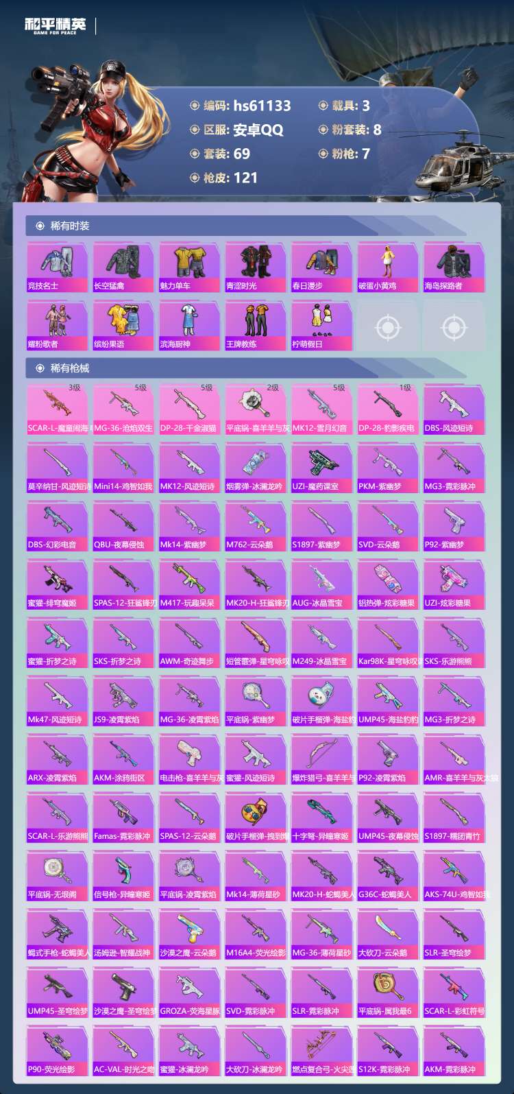 hs61133 安卓手Q-6王牌印记-8粉装-7特效枪-3载具-39231热力值-69套装-121枪