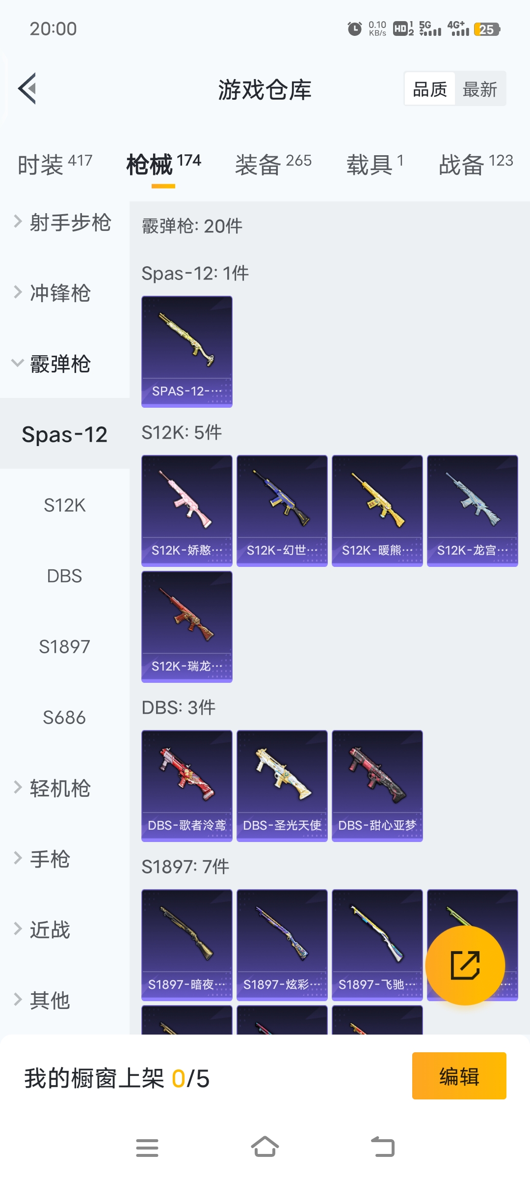 梦幻火箭等18套粉装,1车子,7级五爪等7把特效枪,