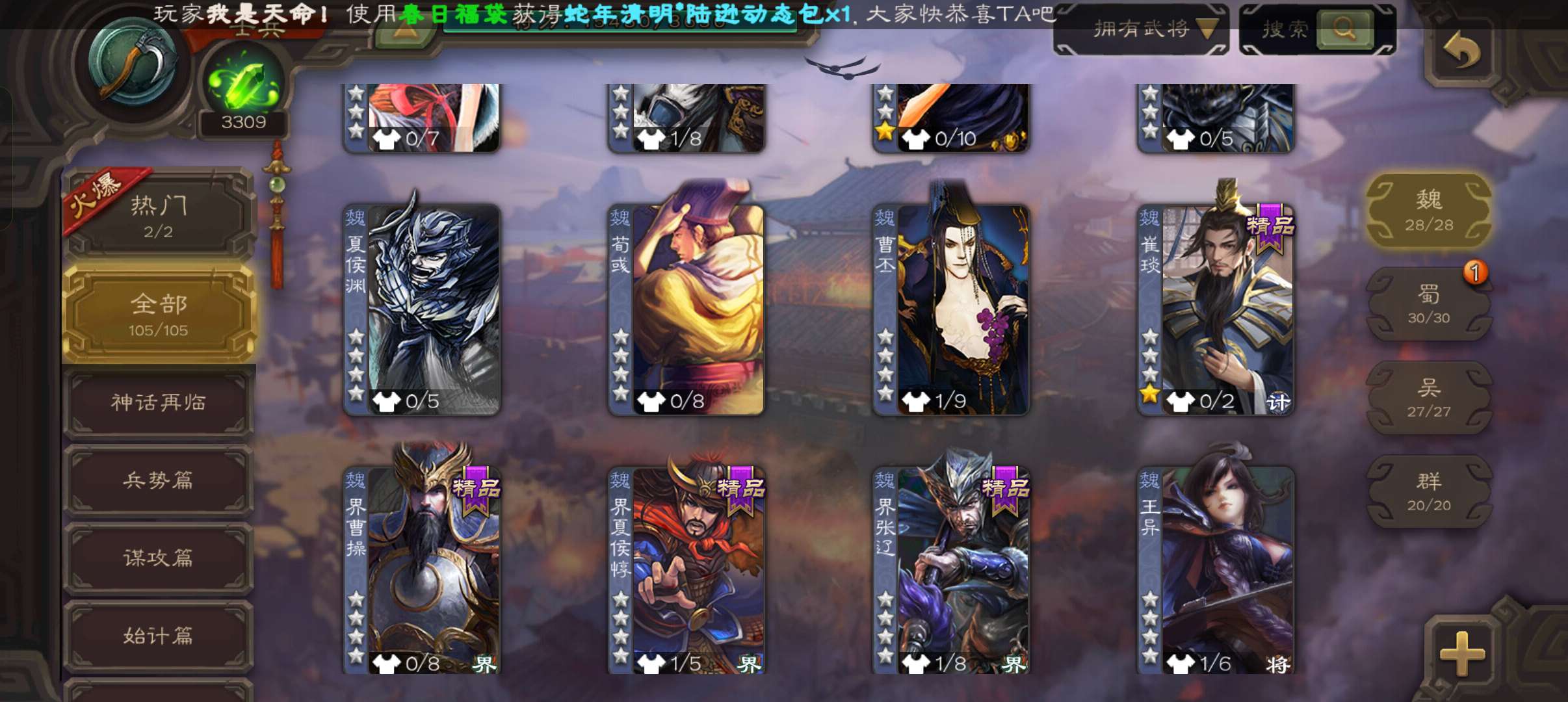 史诗武将数量: