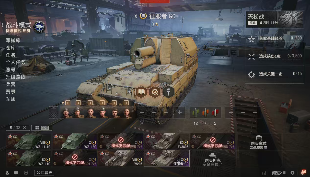 银币2400万、债券35500、金币2500、全局27万、个人储备120个2辆10级车:征服者GC