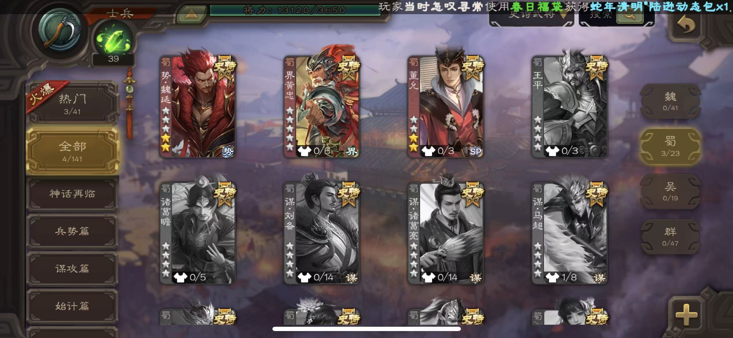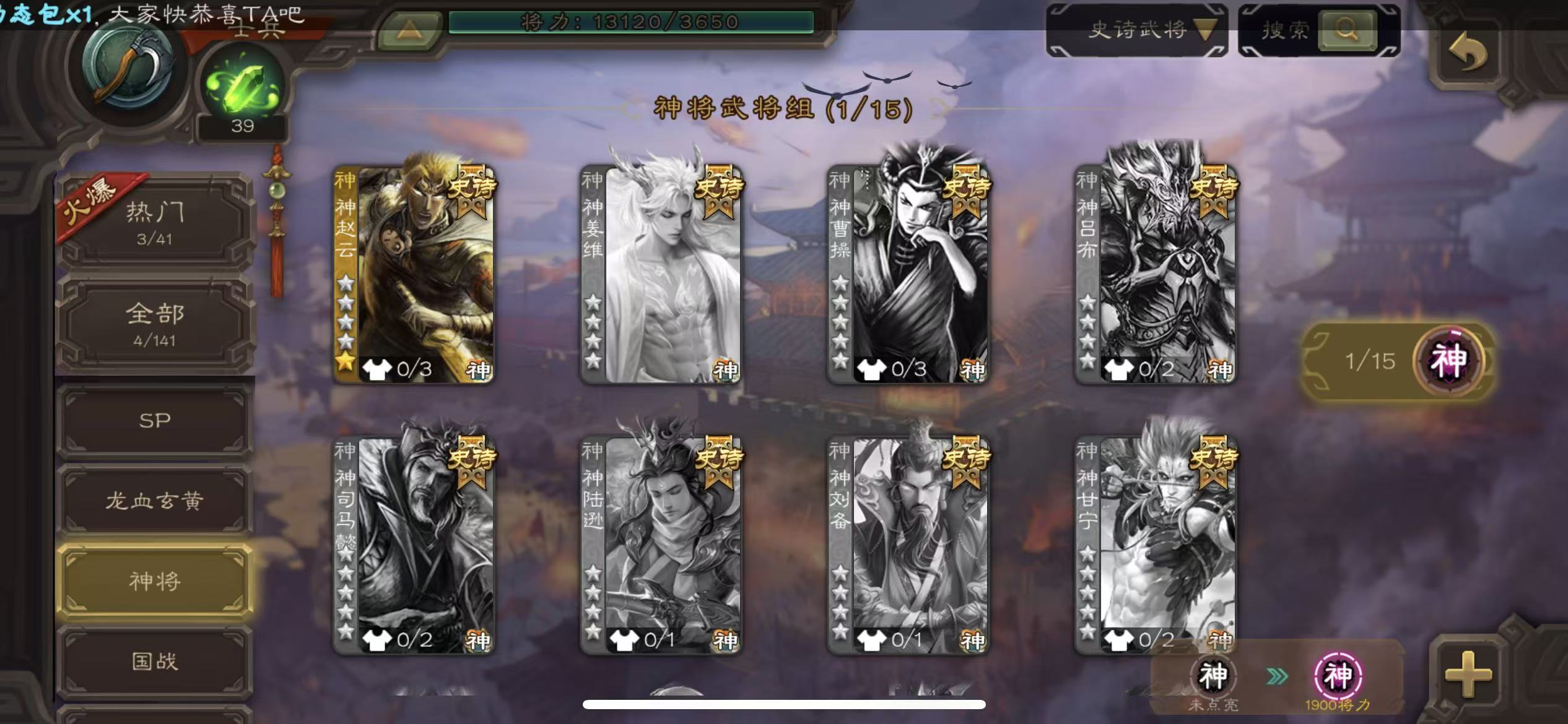 史诗武将数量: