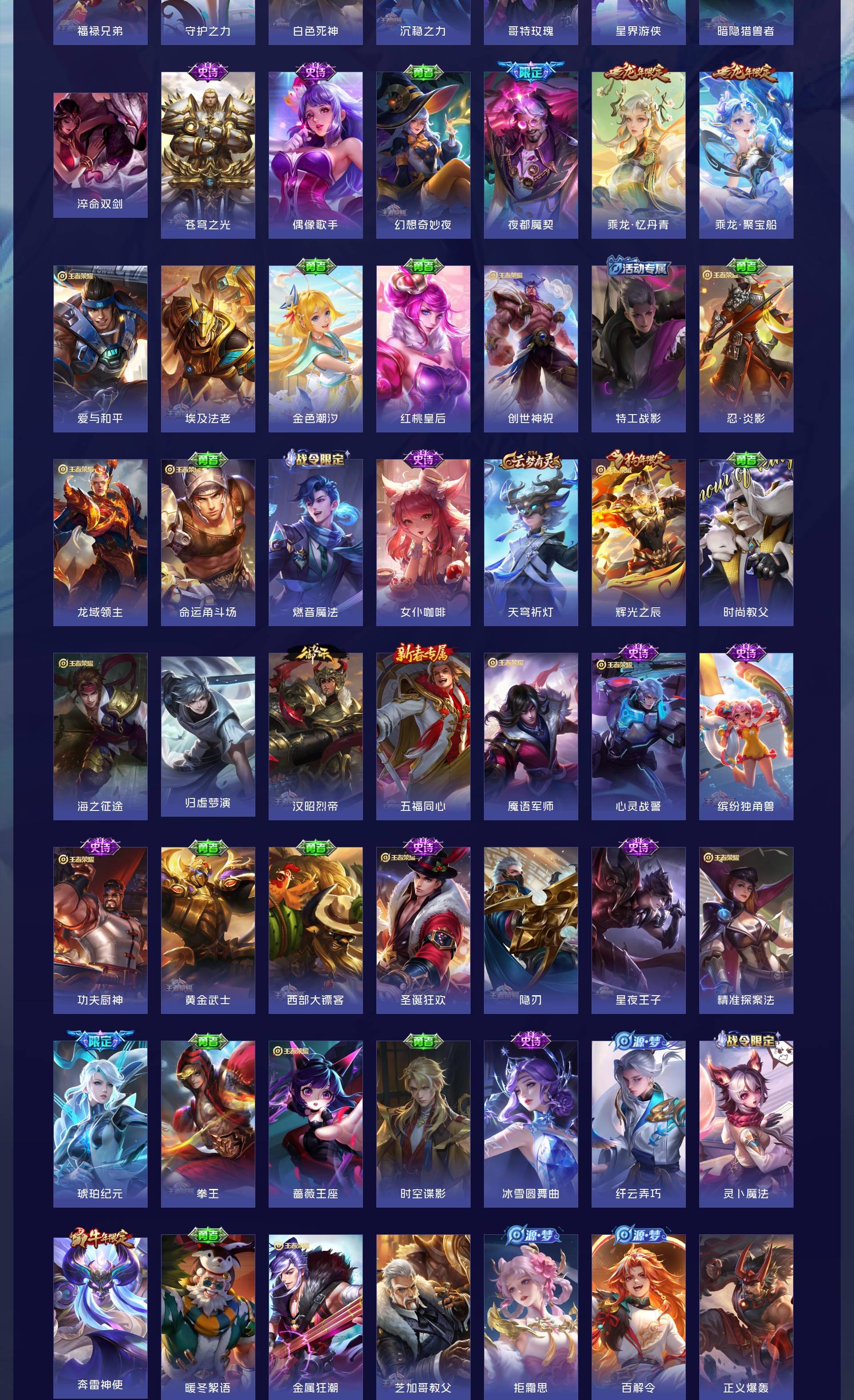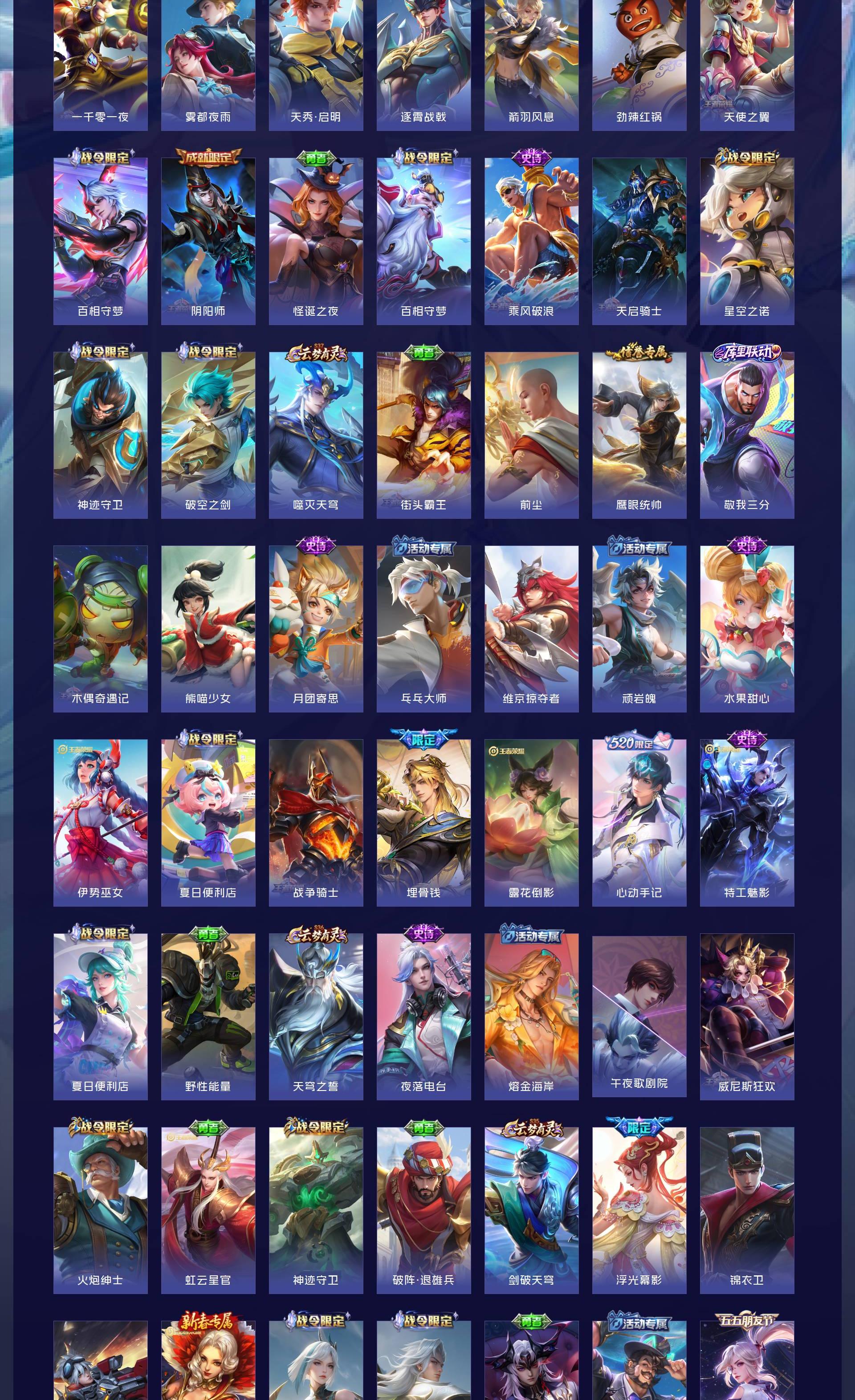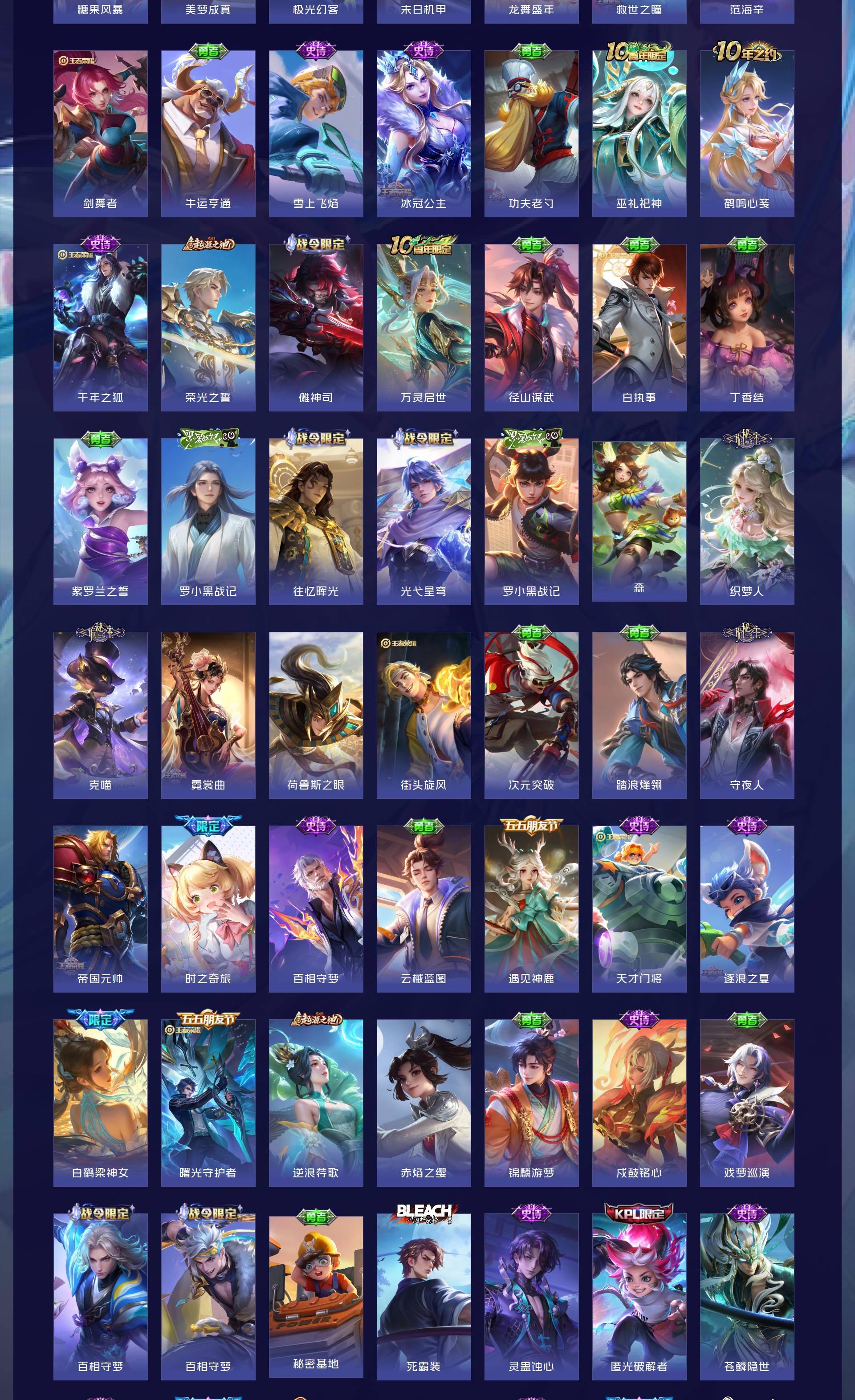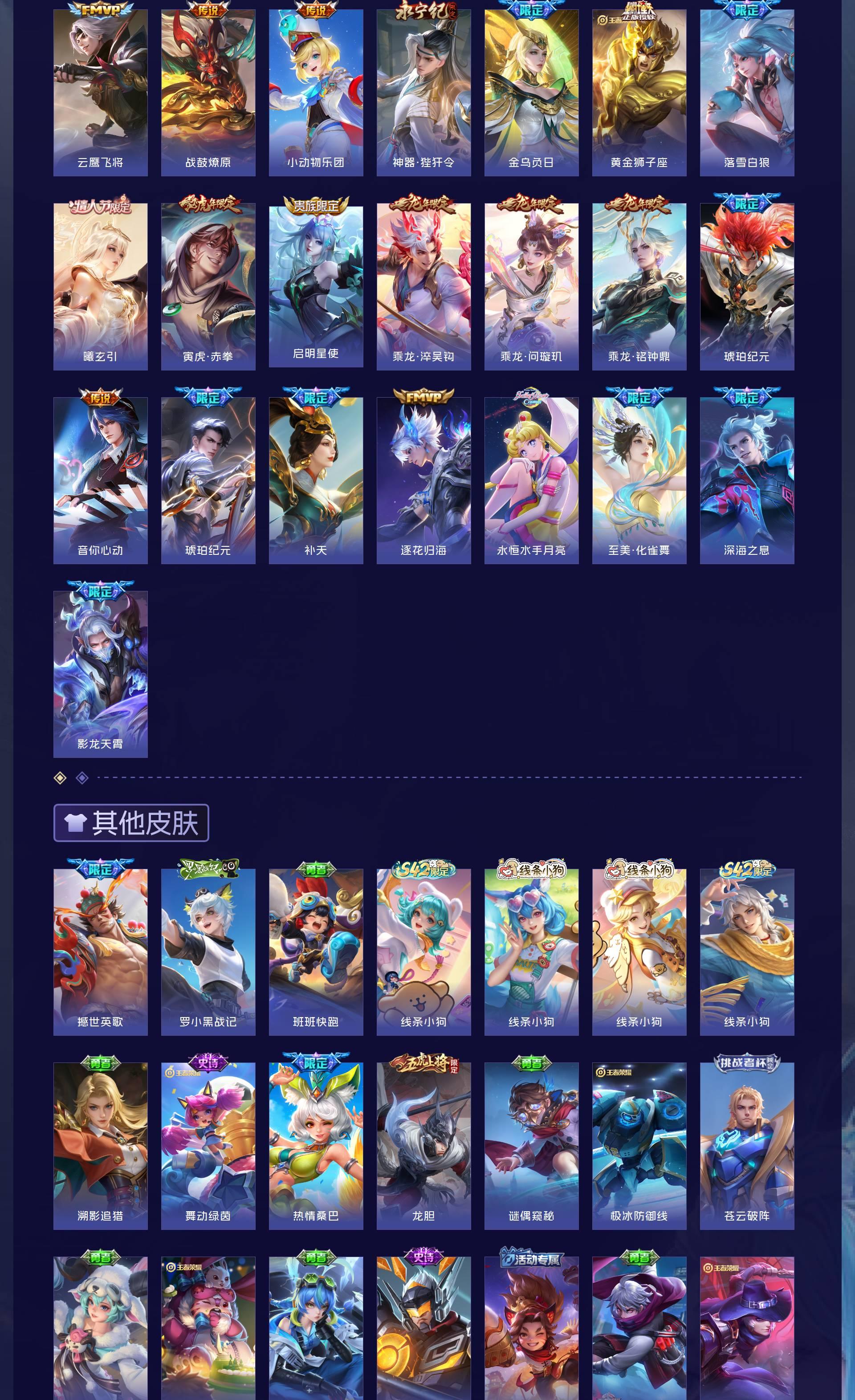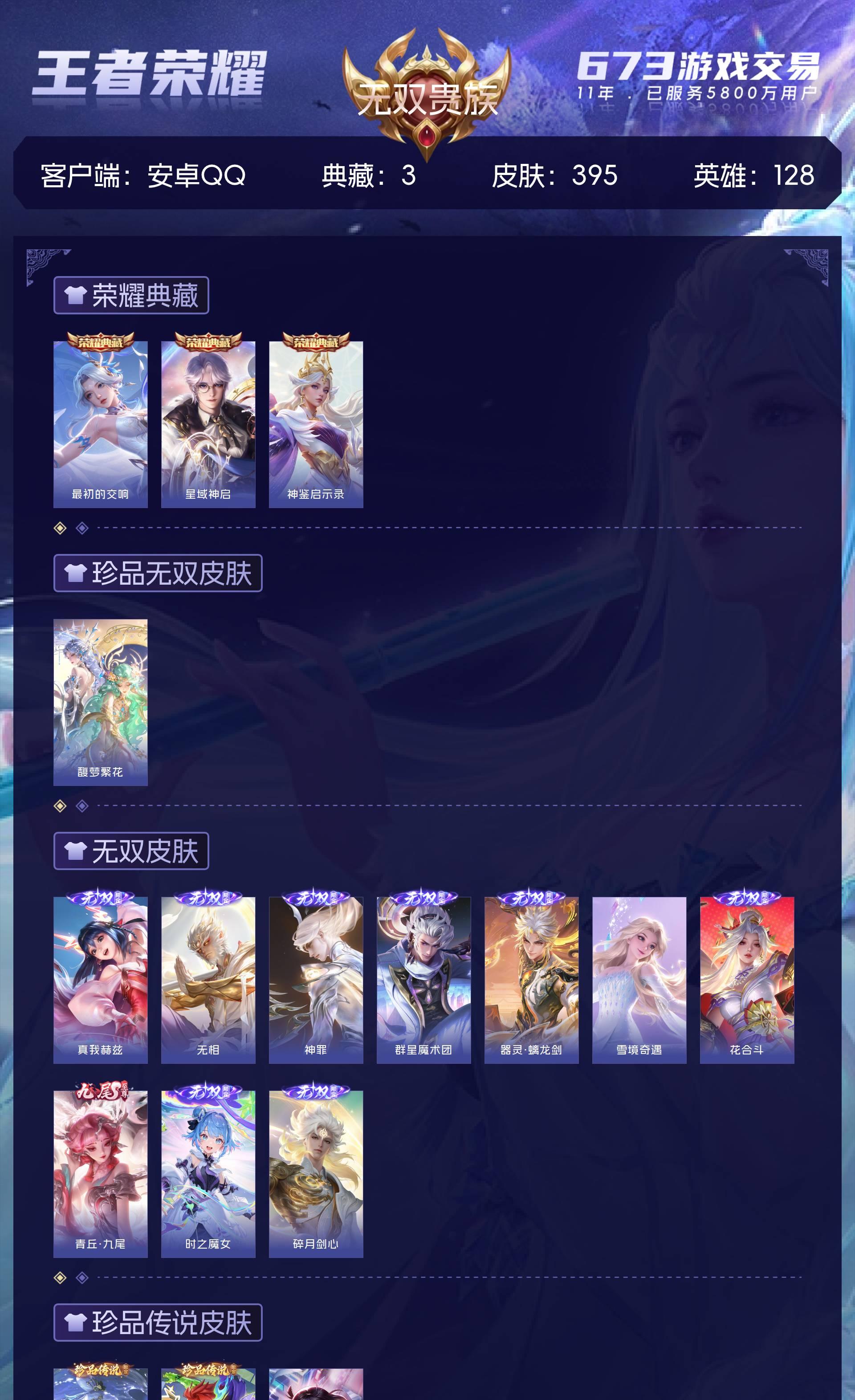 无双贵族 皮肤395 英雄128 至尊星耀 荣耀典藏3 珍品无双1 无双皮肤10 珍品传说3 星传说4 传说65 其他皮肤313