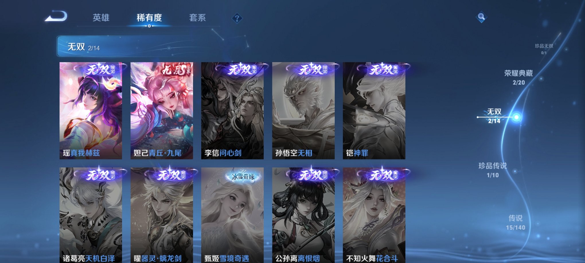 【2无双1珍品307皮肤2水晶15传说3星元 秒换绑不用等】安卓QQ-127英雄