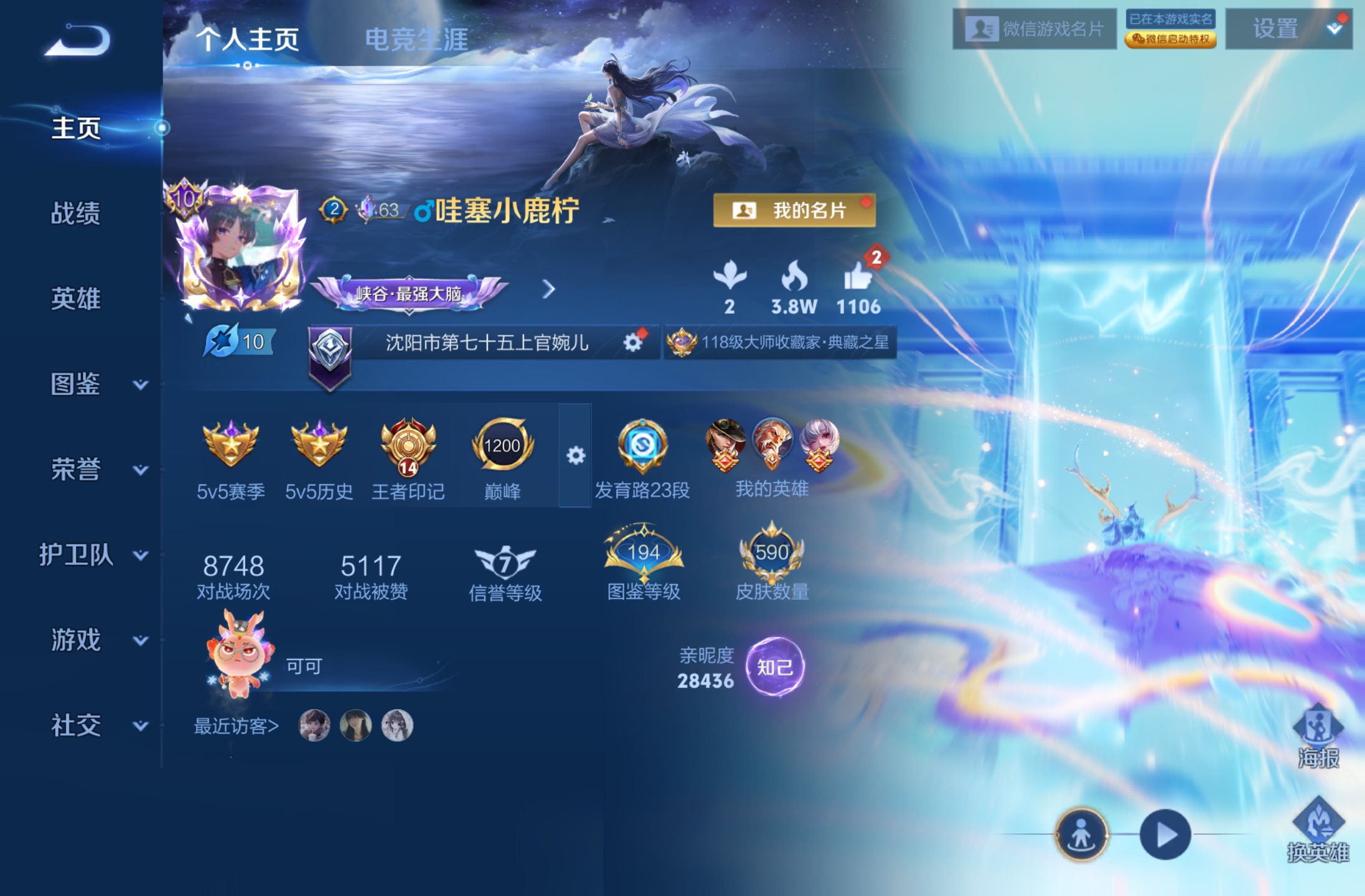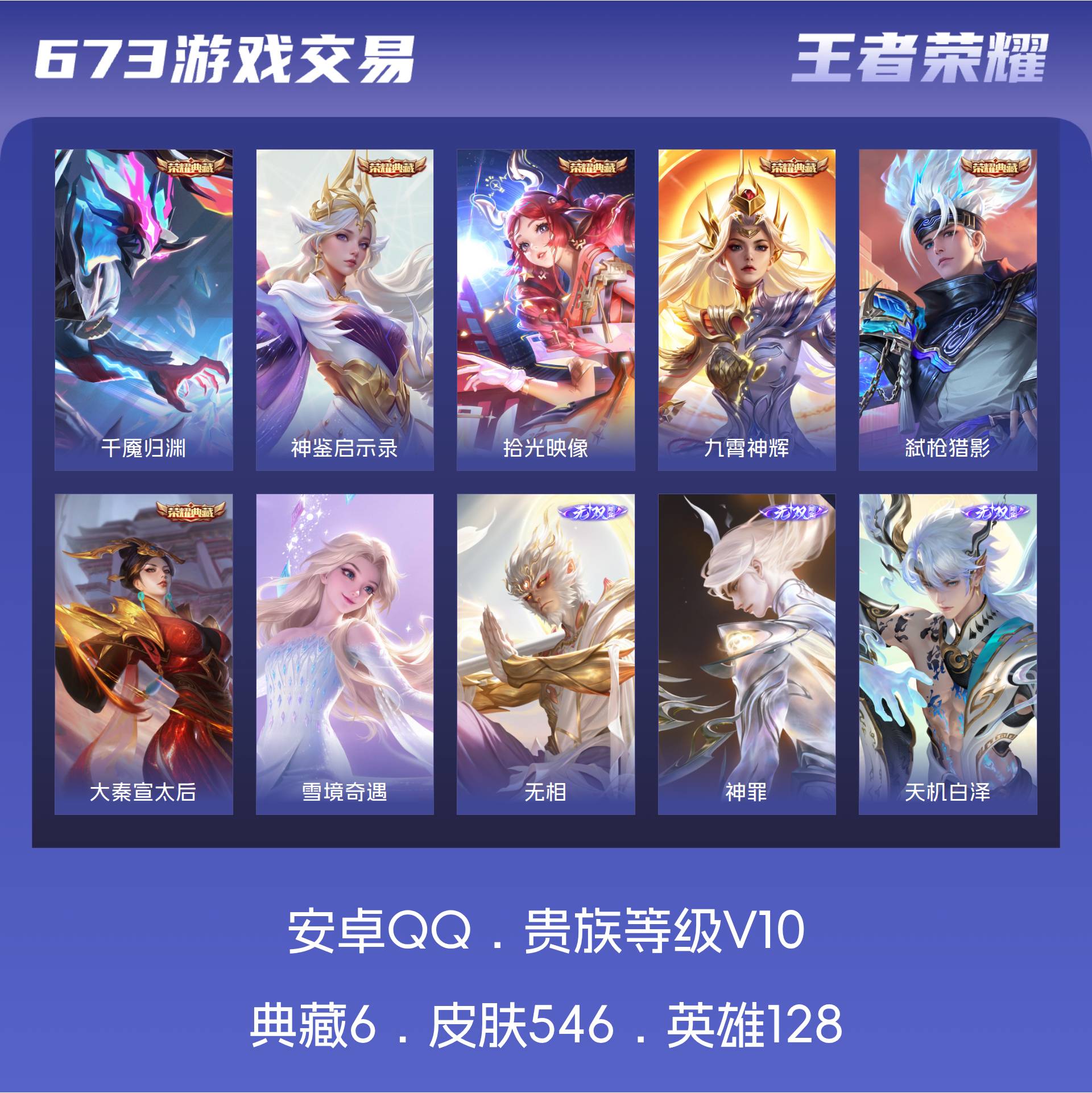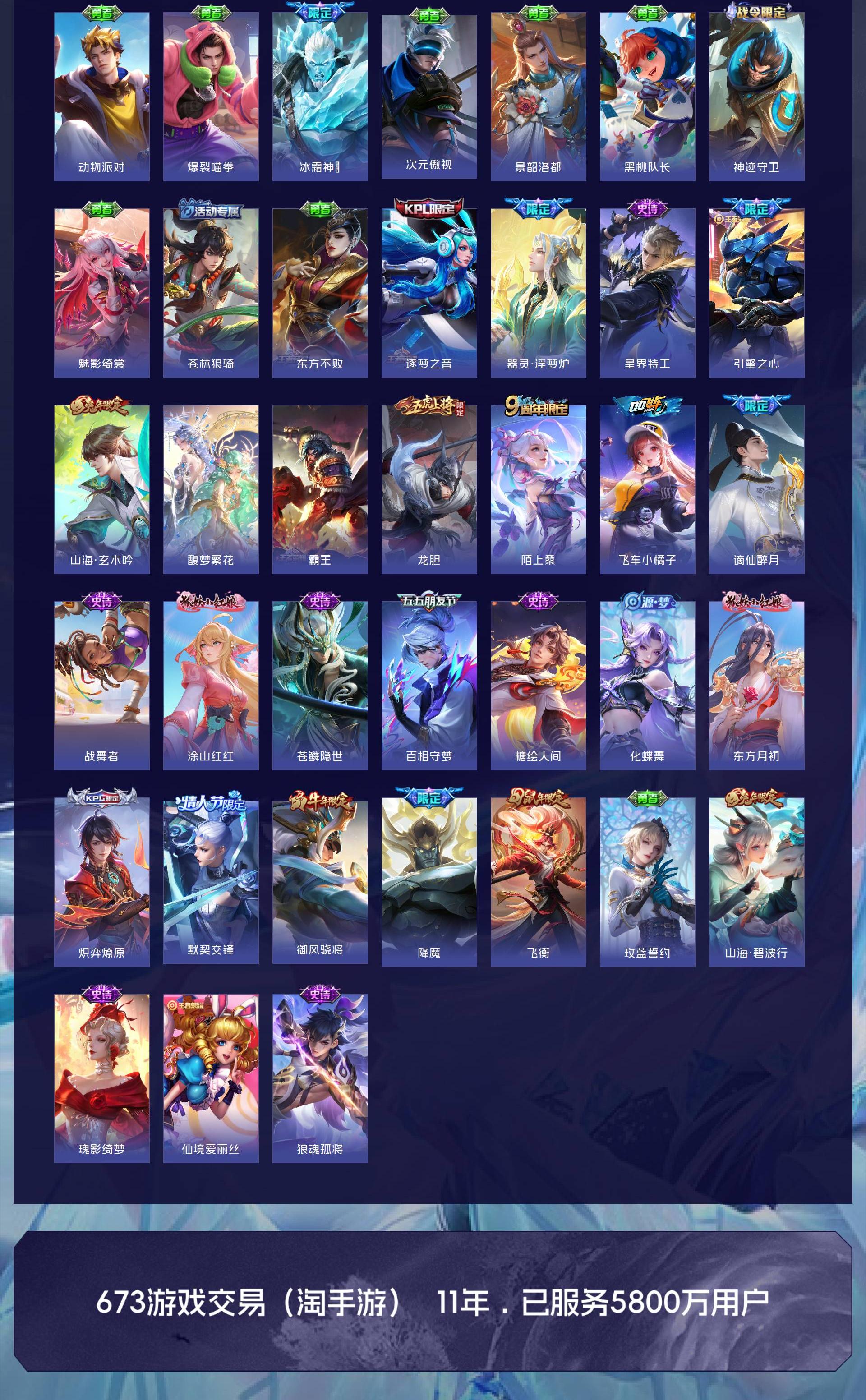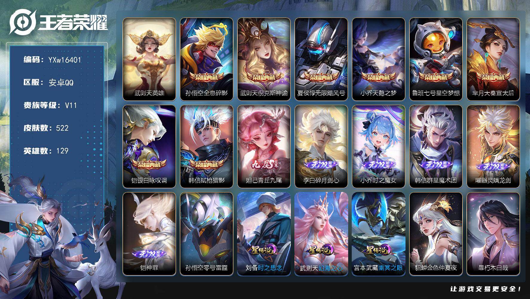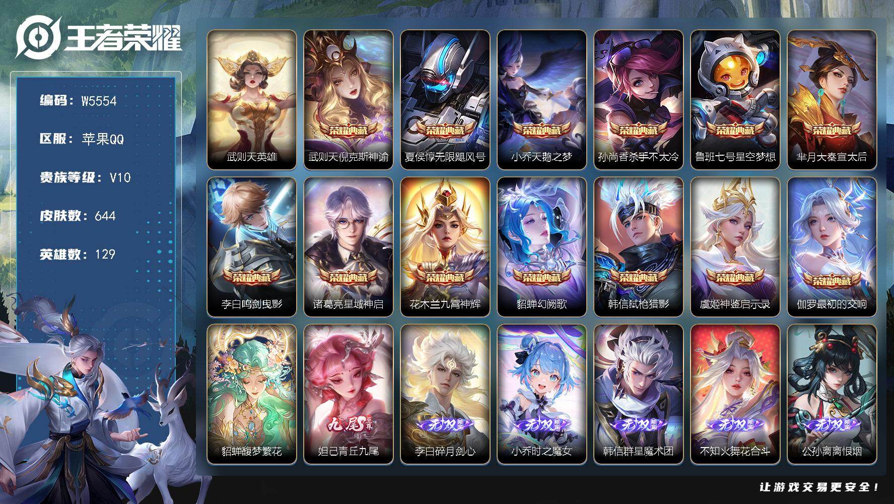 无双贵族 皮肤590 英雄129 绝世王者 荣耀典藏12 珍品无双1 无双皮肤9 珍品传说4 传说99 其他皮肤472