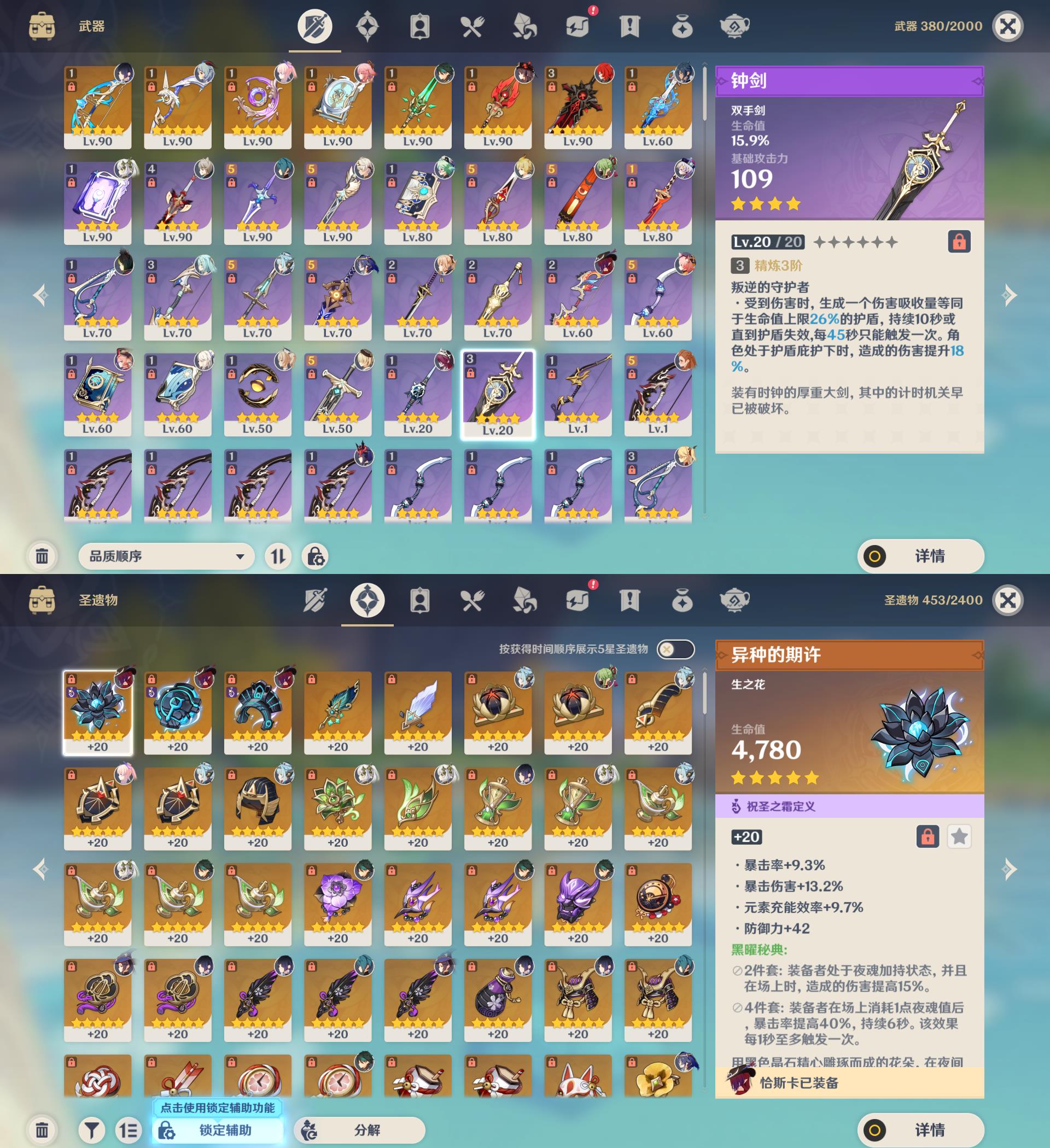 【YSYT901】58级/36黄/女主/16个五星角色/8个五星武器/恰斯卡/0命伊涅芙/1命纳西妲/珊瑚宫心海/魈/甘雨/八重神子/2命莫娜/1命胡桃/夜兰/提纳里/3命琴/2命迪卢克/1命七七/0命埃洛伊/梦见月瑞希/终末嗟叹之诗/阿莫斯之弓/不灭月华/四风原典/和璞鸢/护摩之杖/精3狼的末路/静水流涌之辉