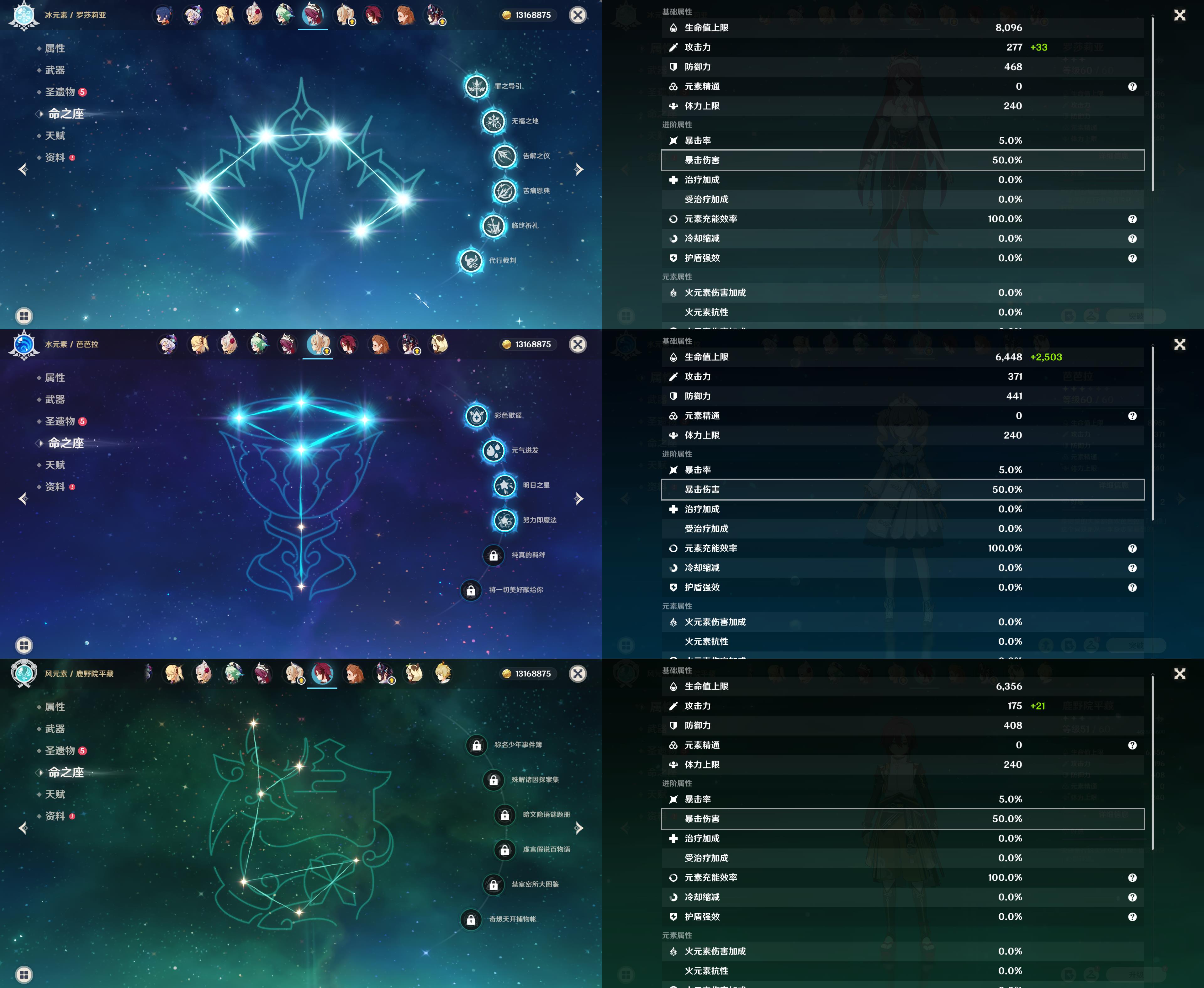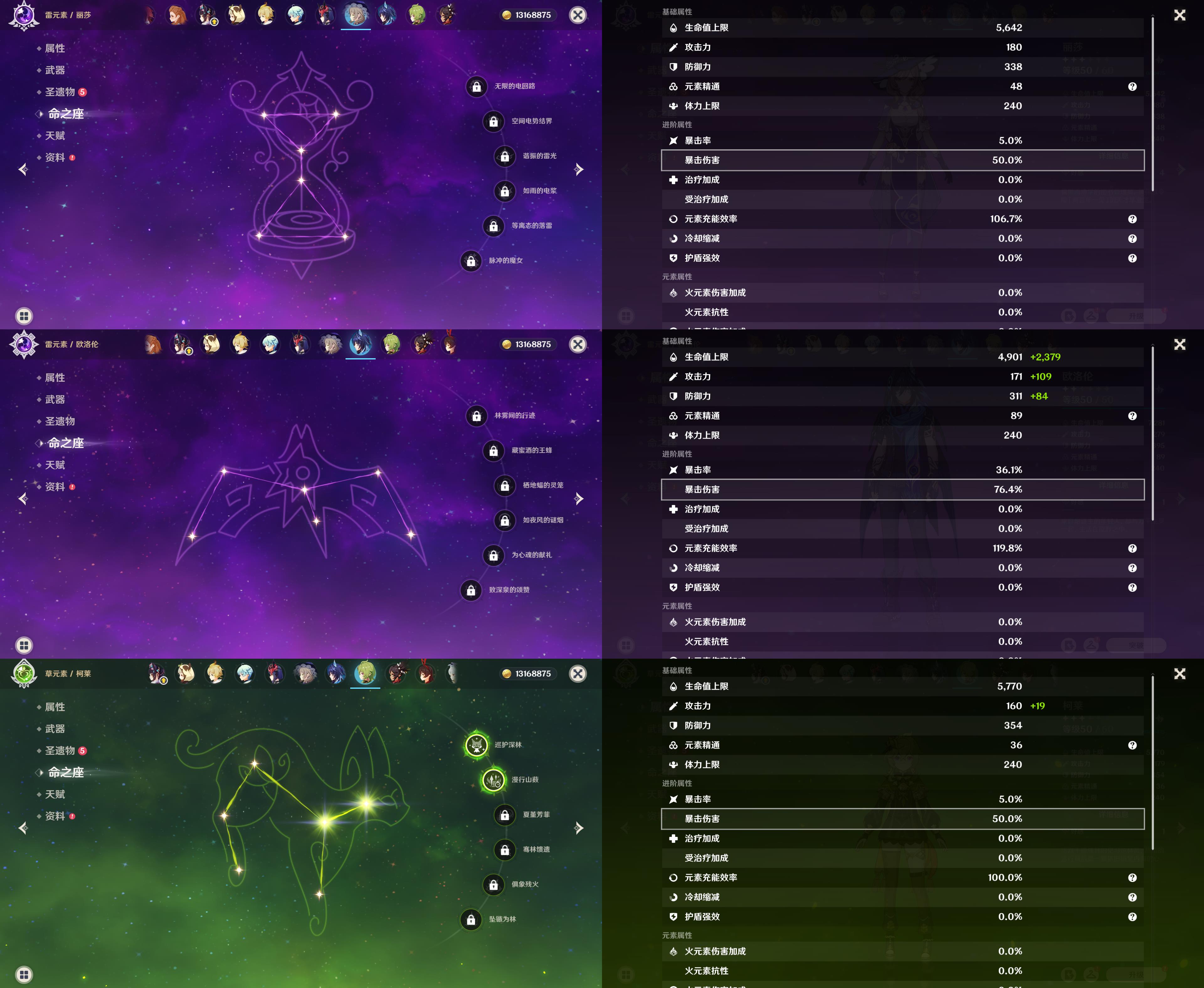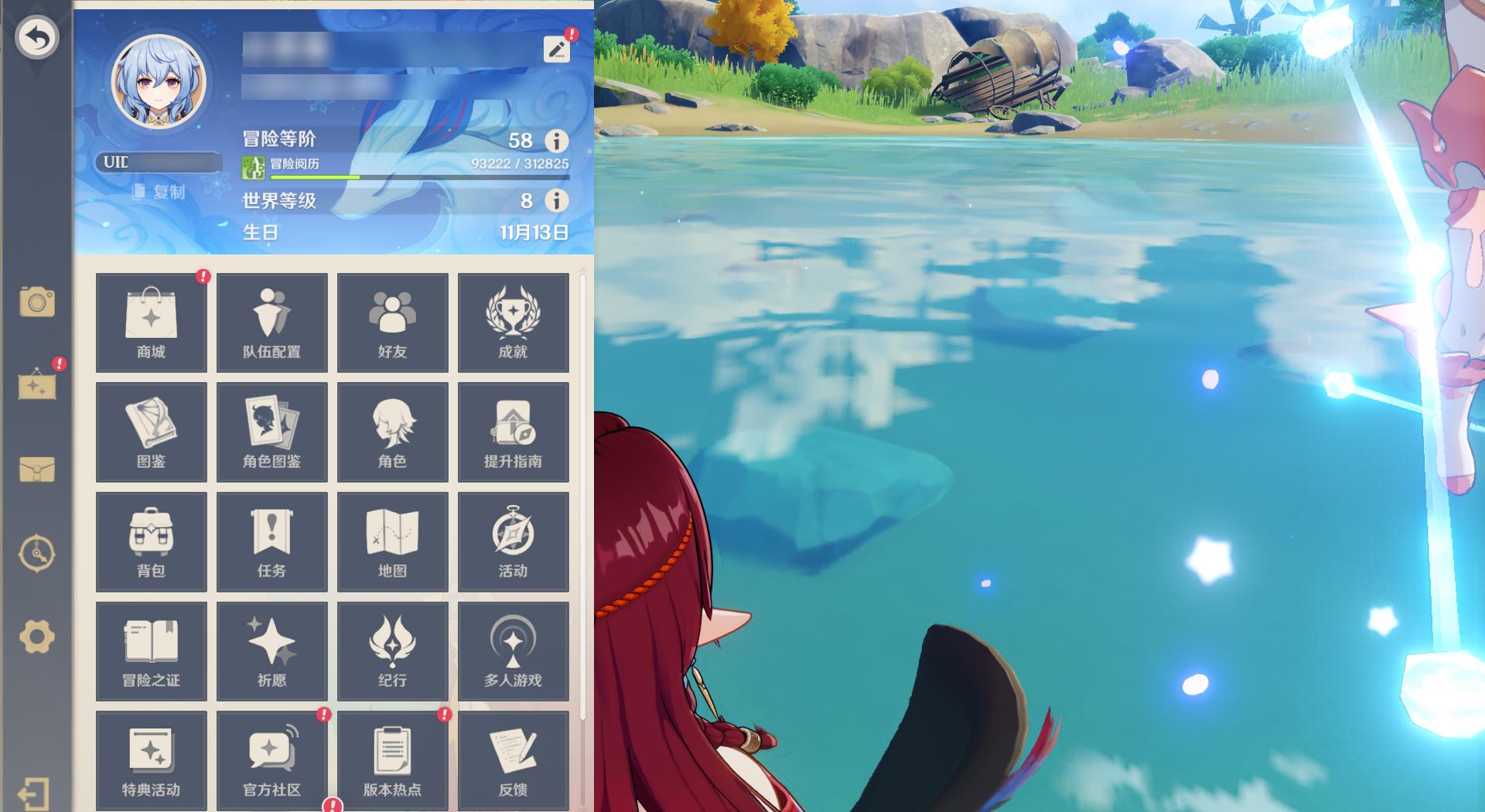 58级/36黄/女主/16个五星角色/8个五星武器/恰斯卡/0命伊涅芙/1命纳西妲