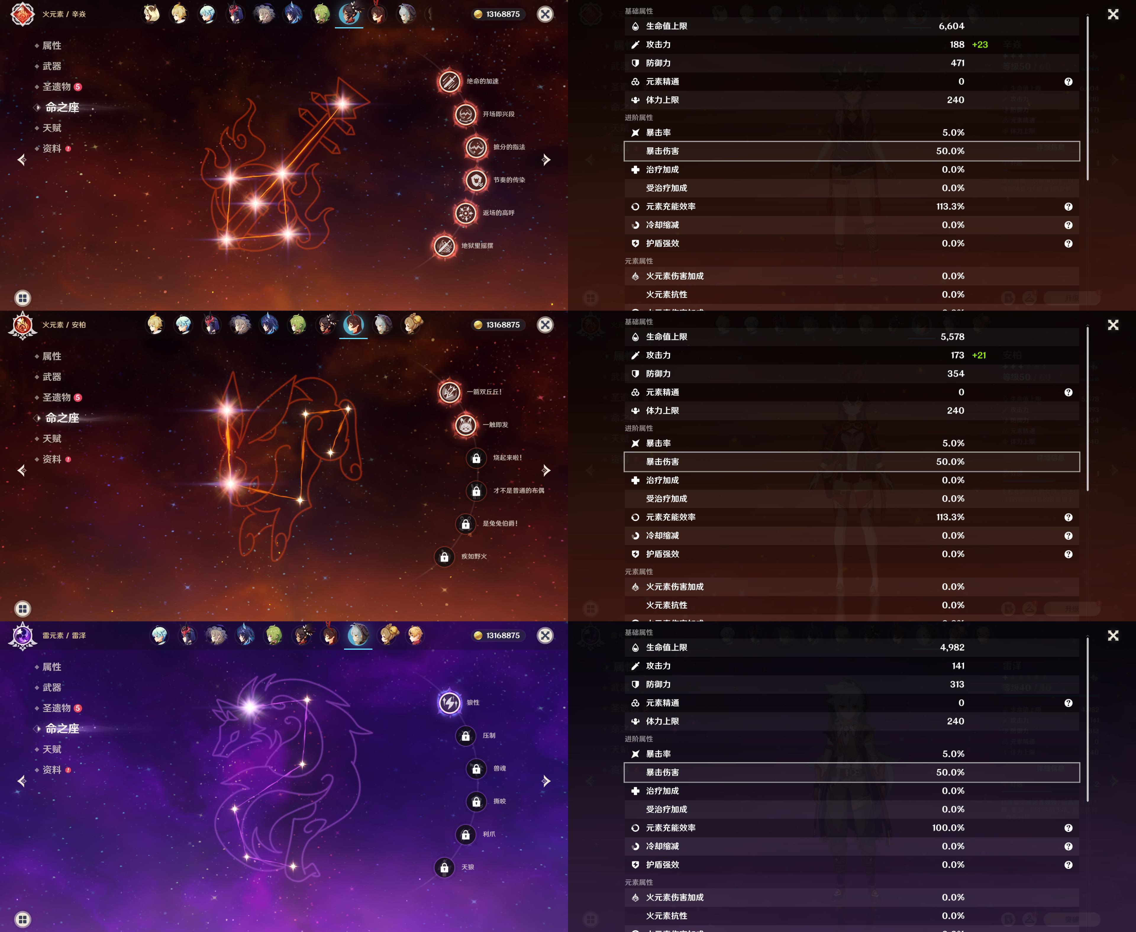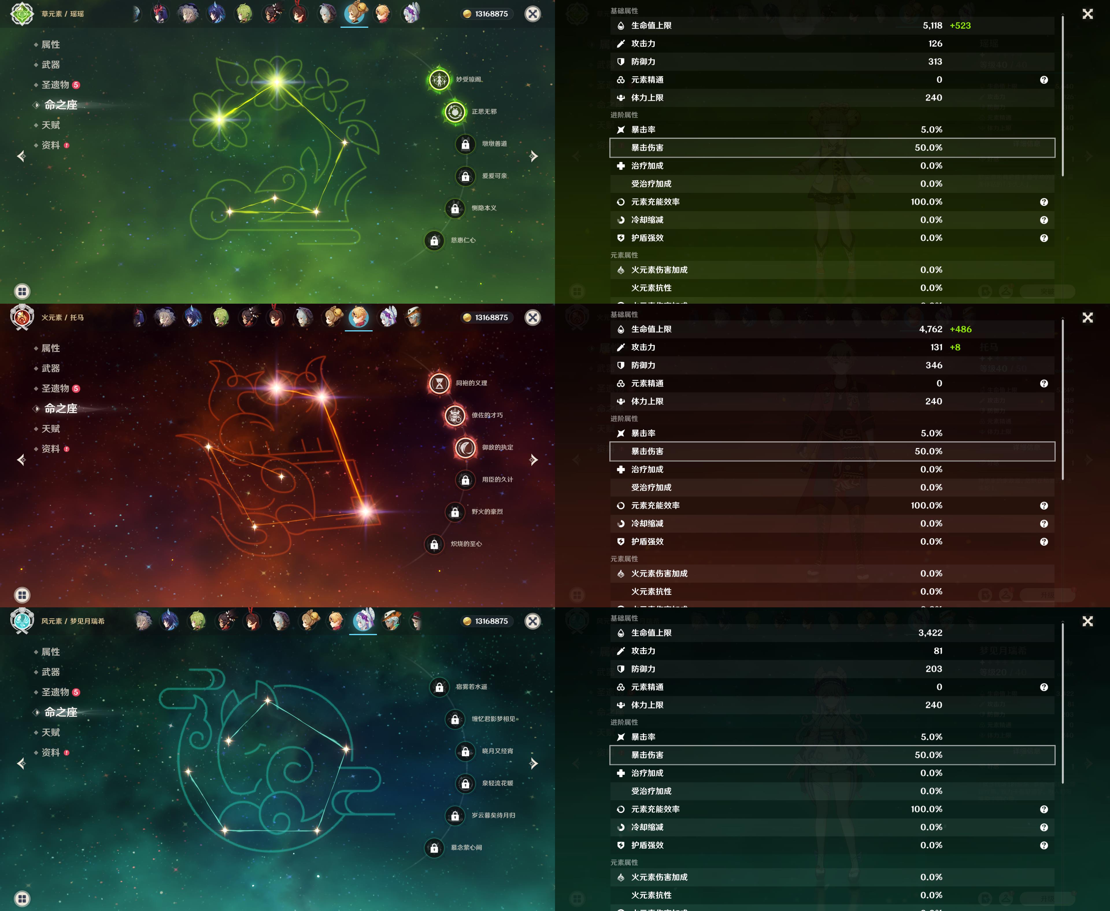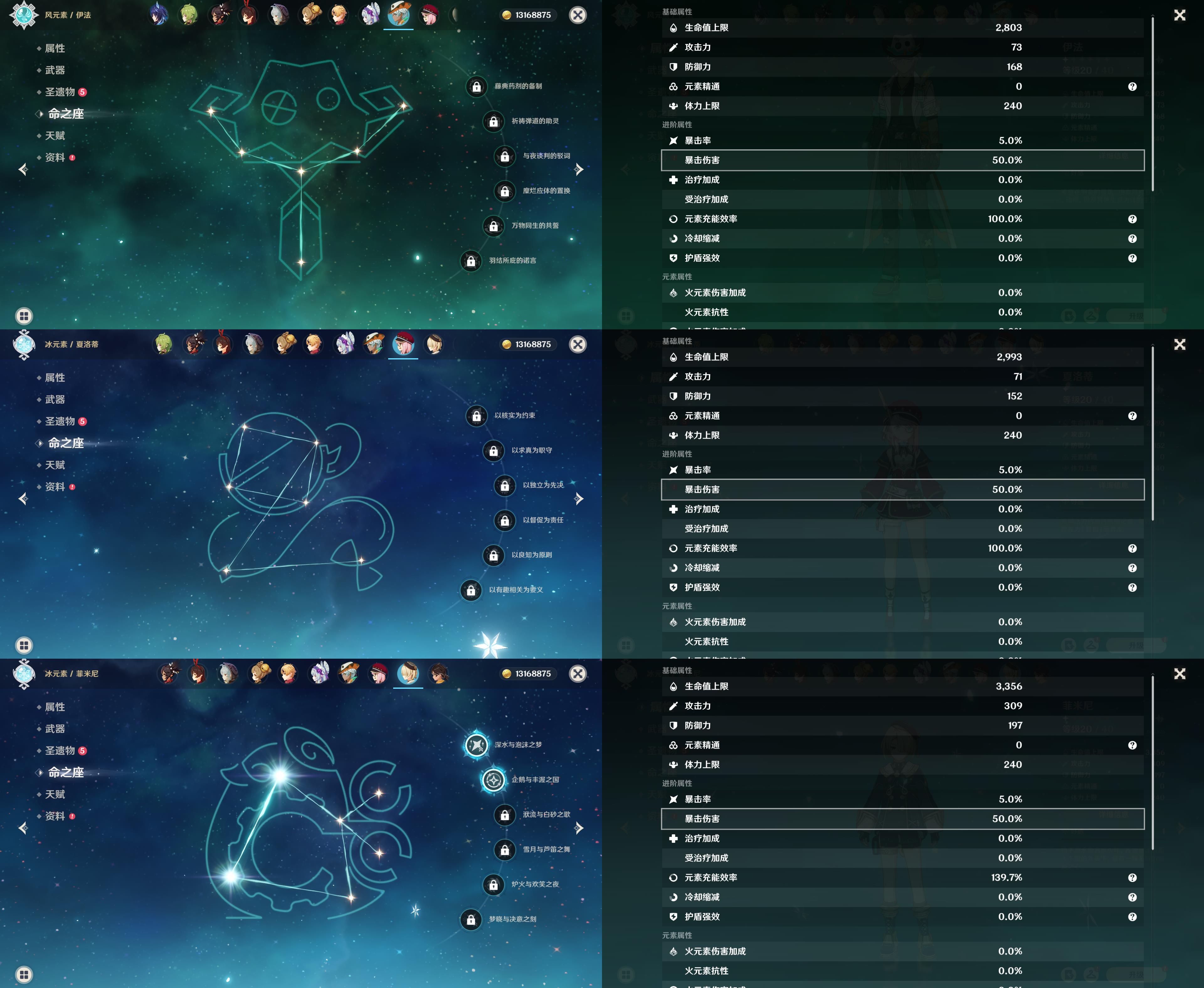 58级/36黄/女主/16个五星角色/8个五星武器/恰斯卡/0命伊涅芙/1命纳西妲