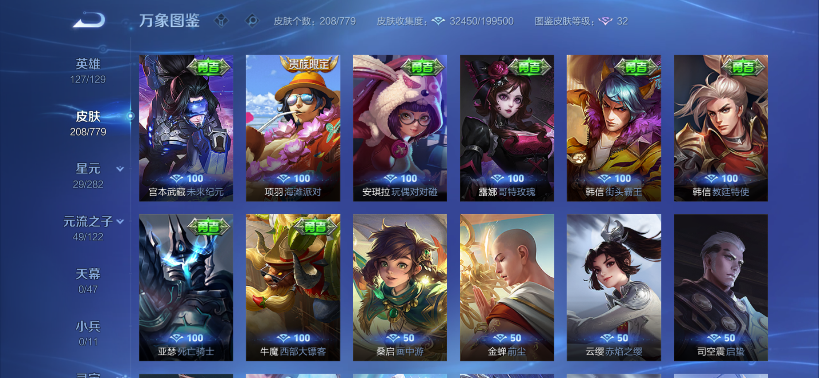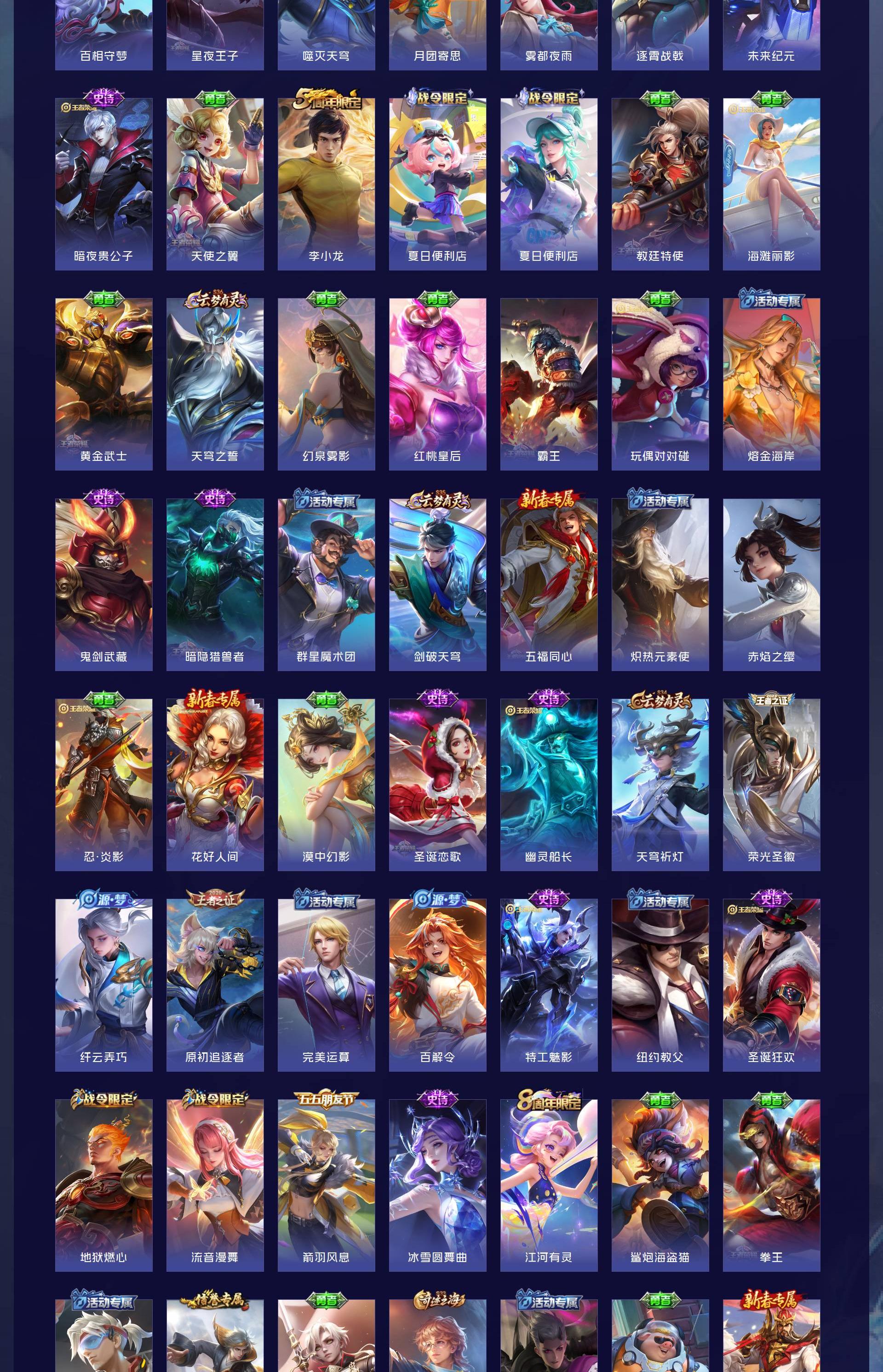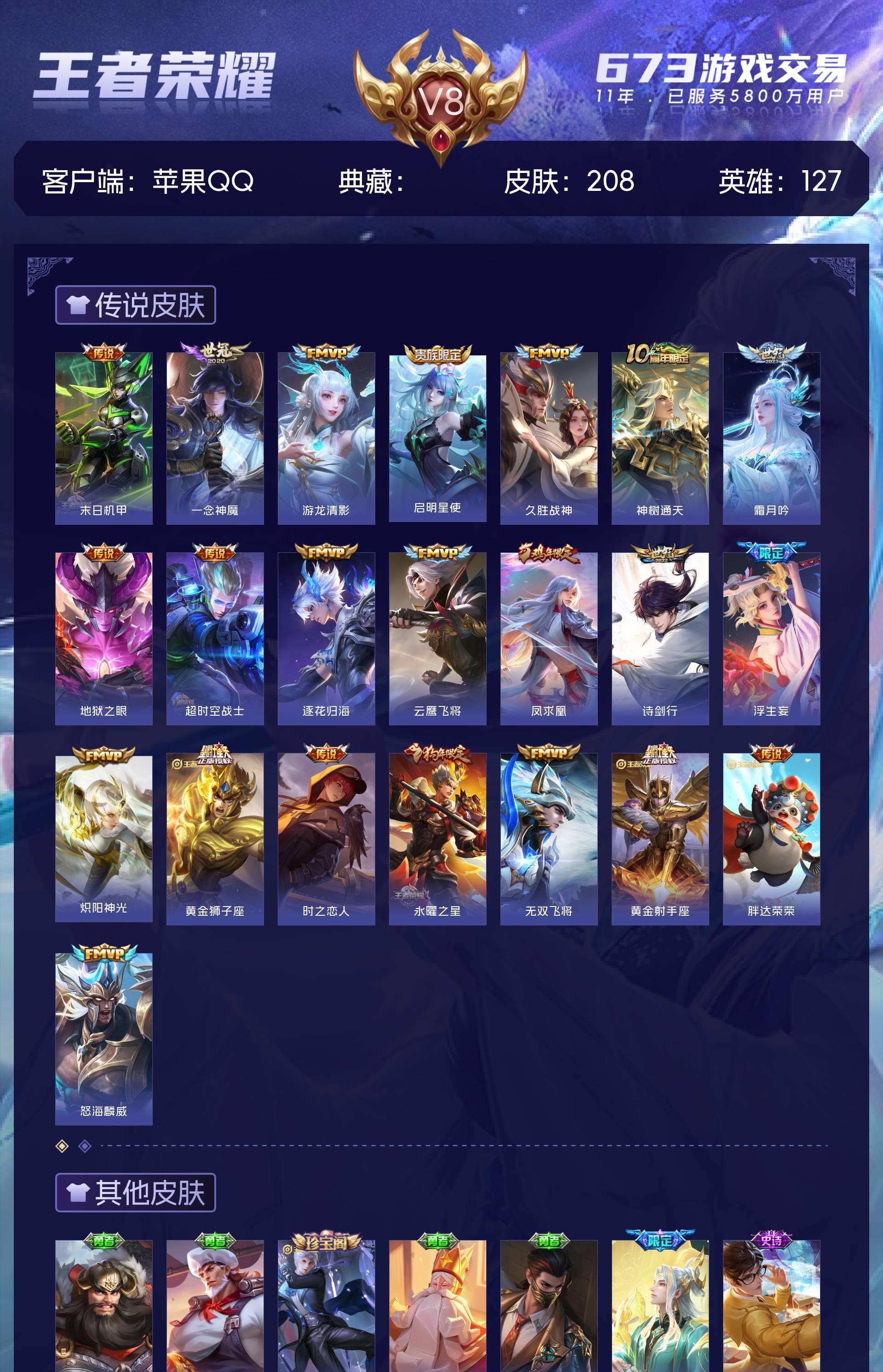 V8 皮肤208 英雄127 至尊星耀 星传说2 传说22 其他皮肤186