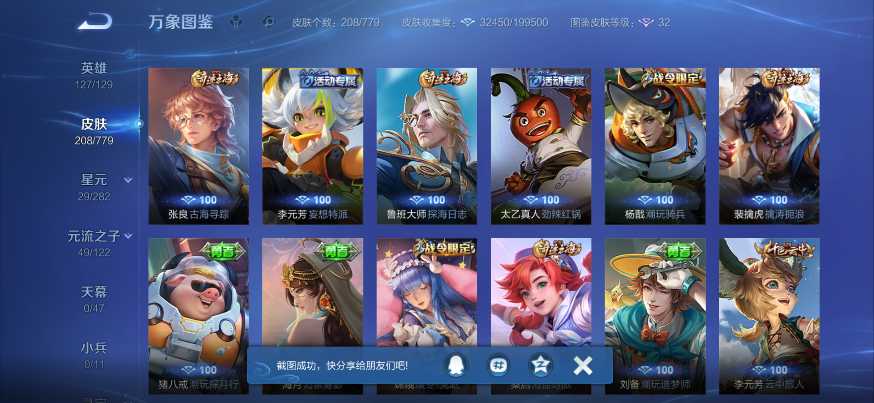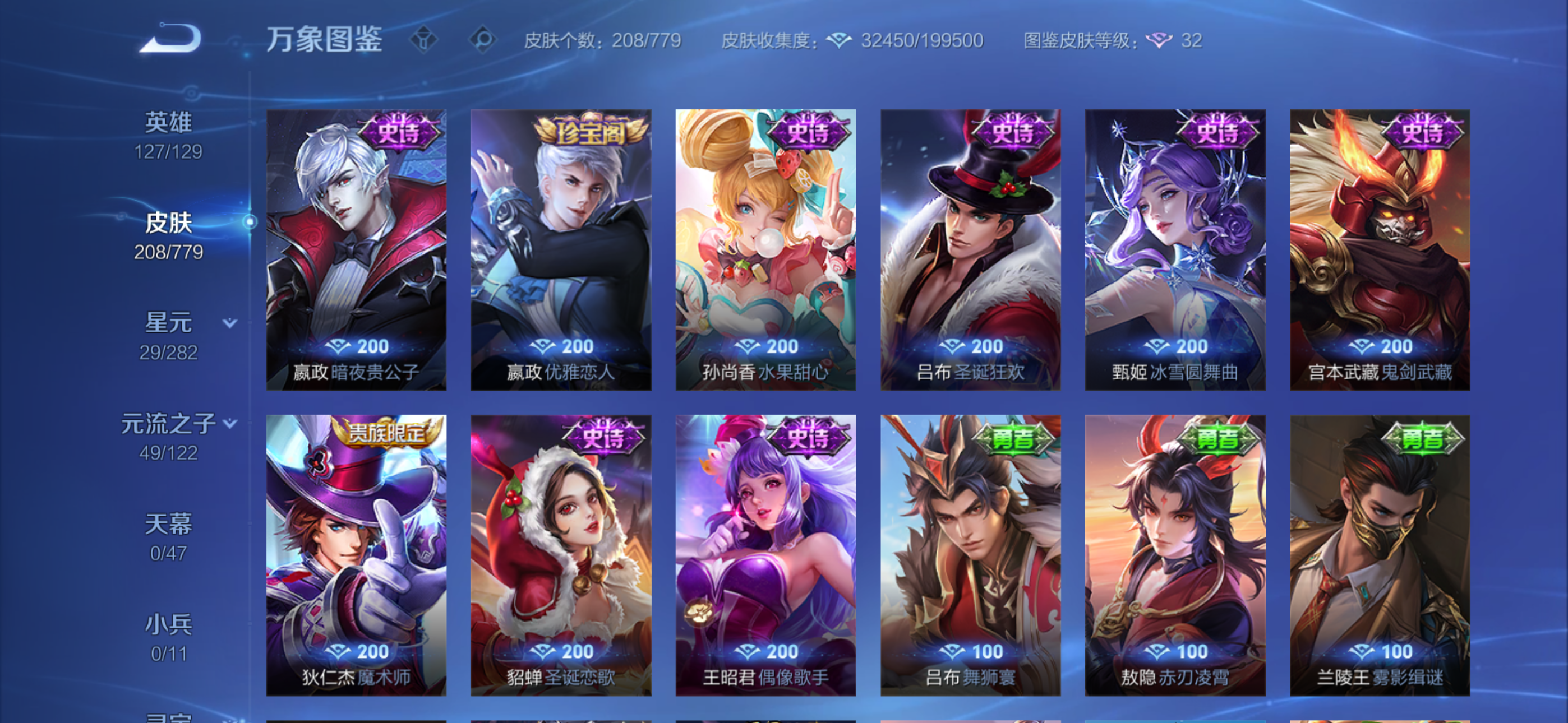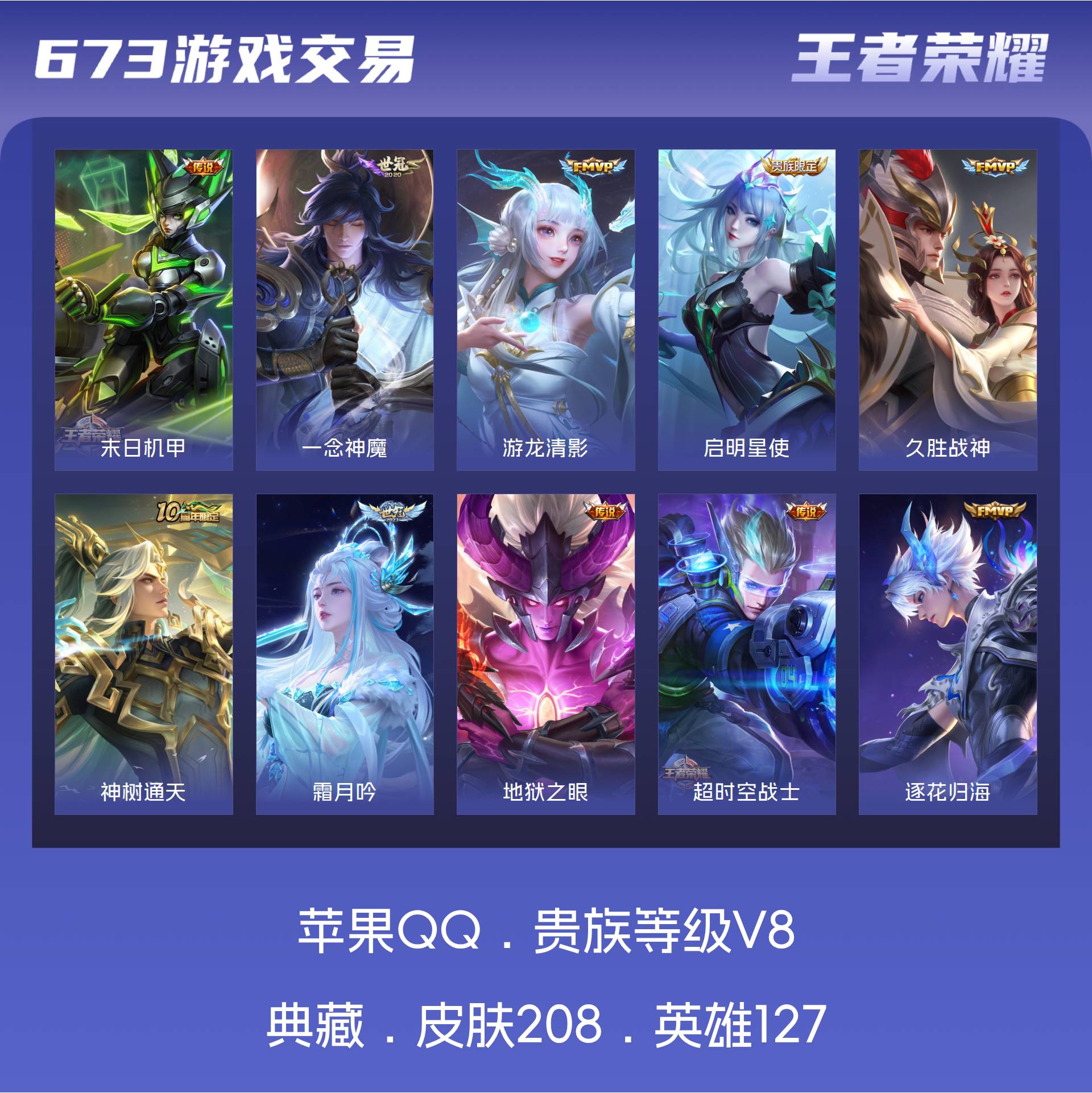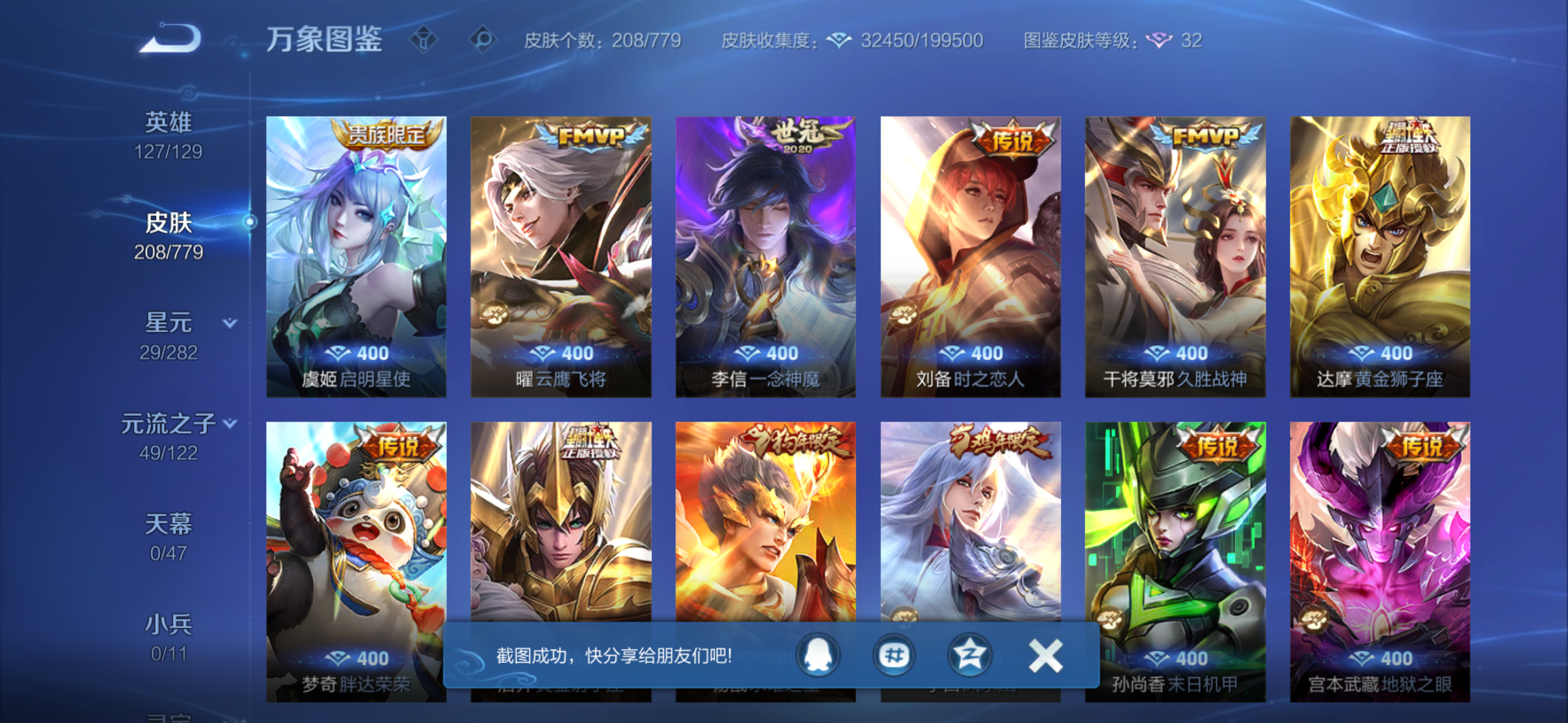V8 皮肤208 英雄127 至尊星耀 星传说2 传说22 其他皮肤186