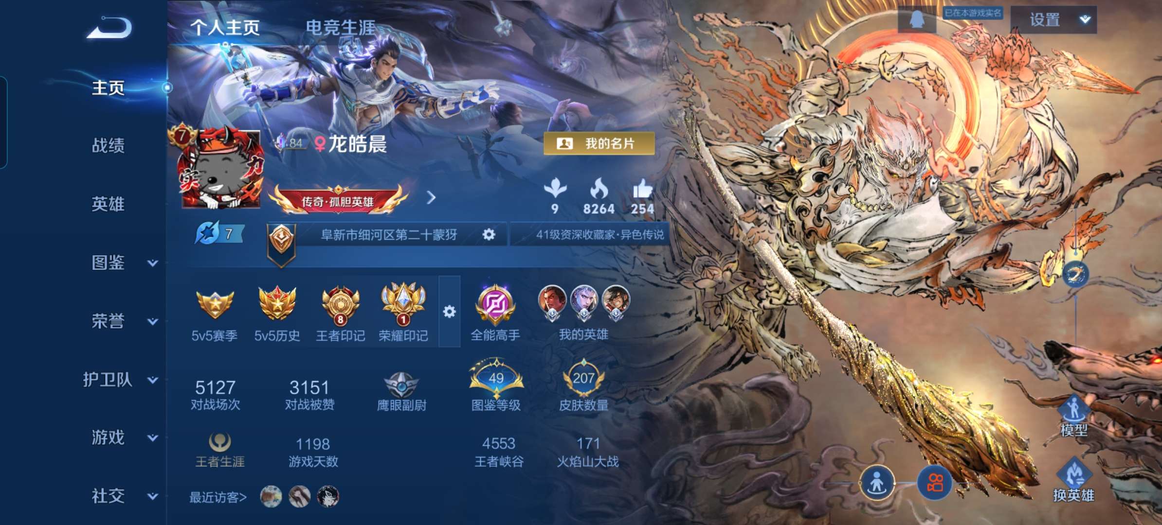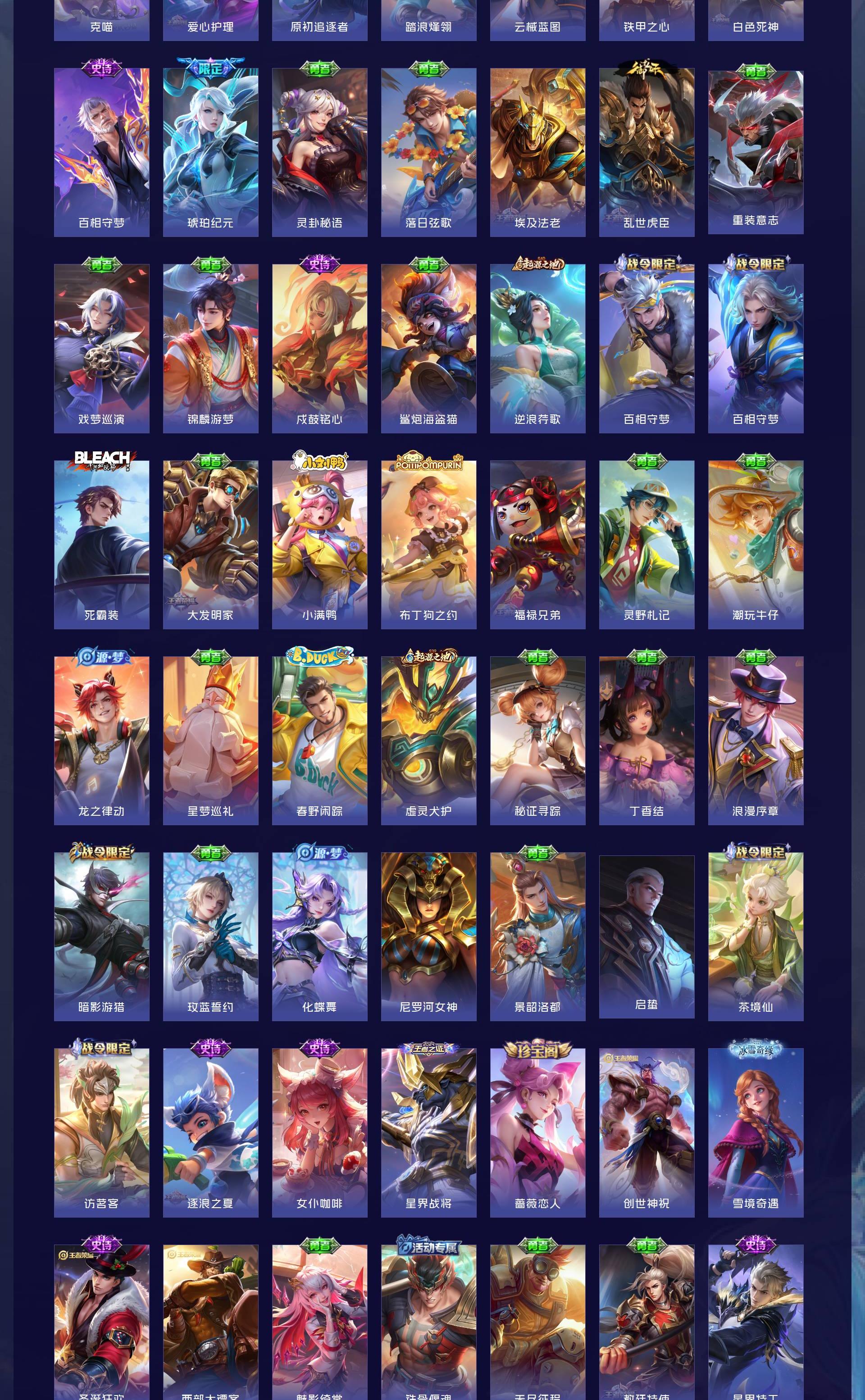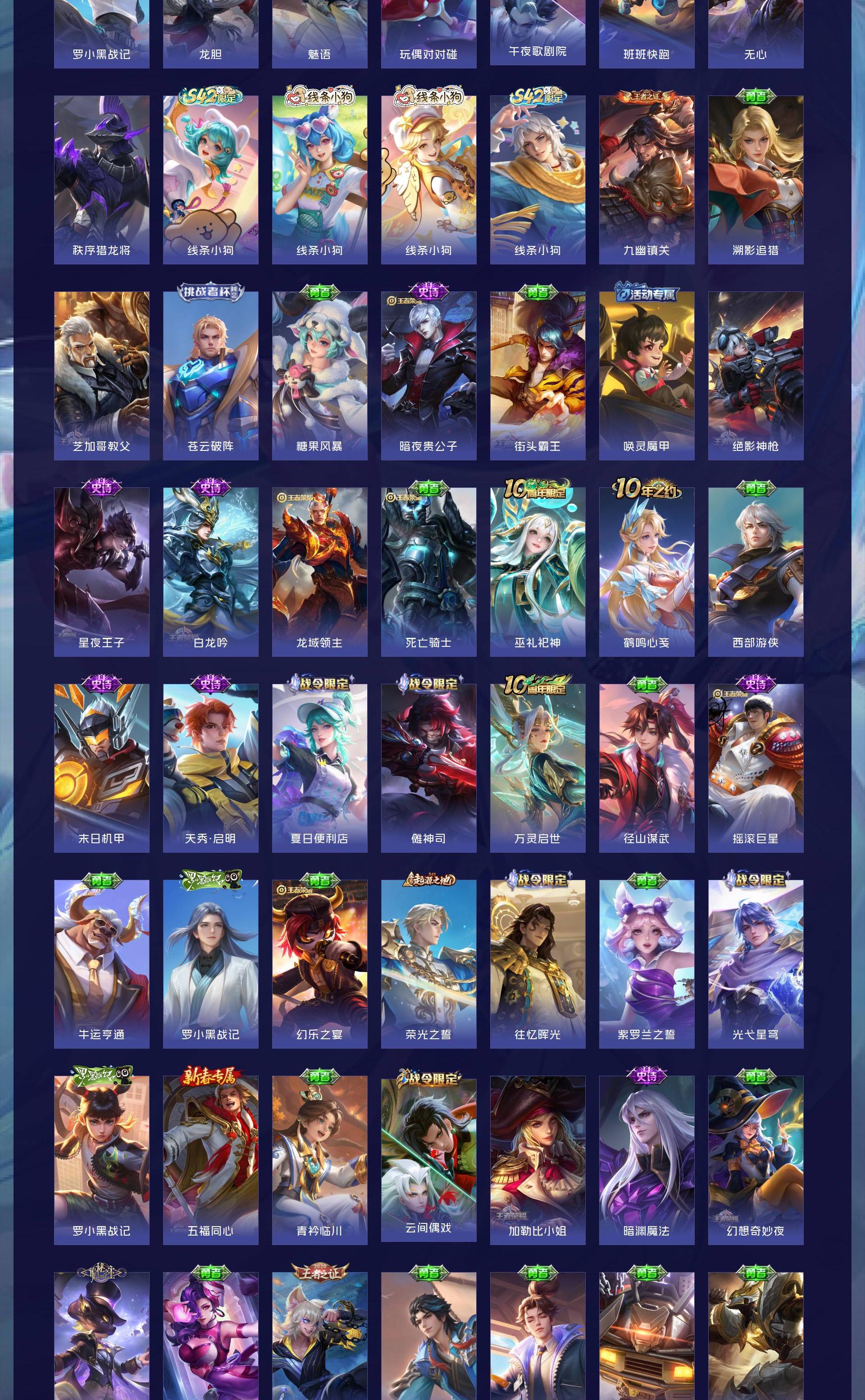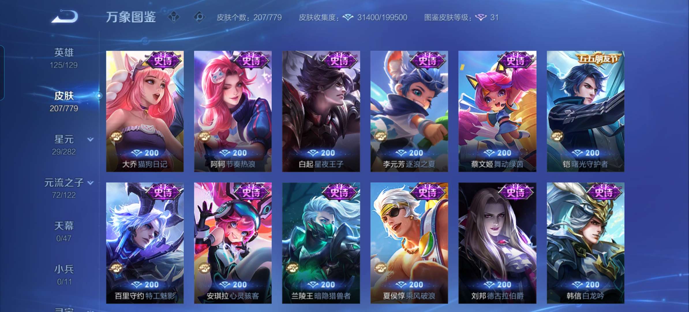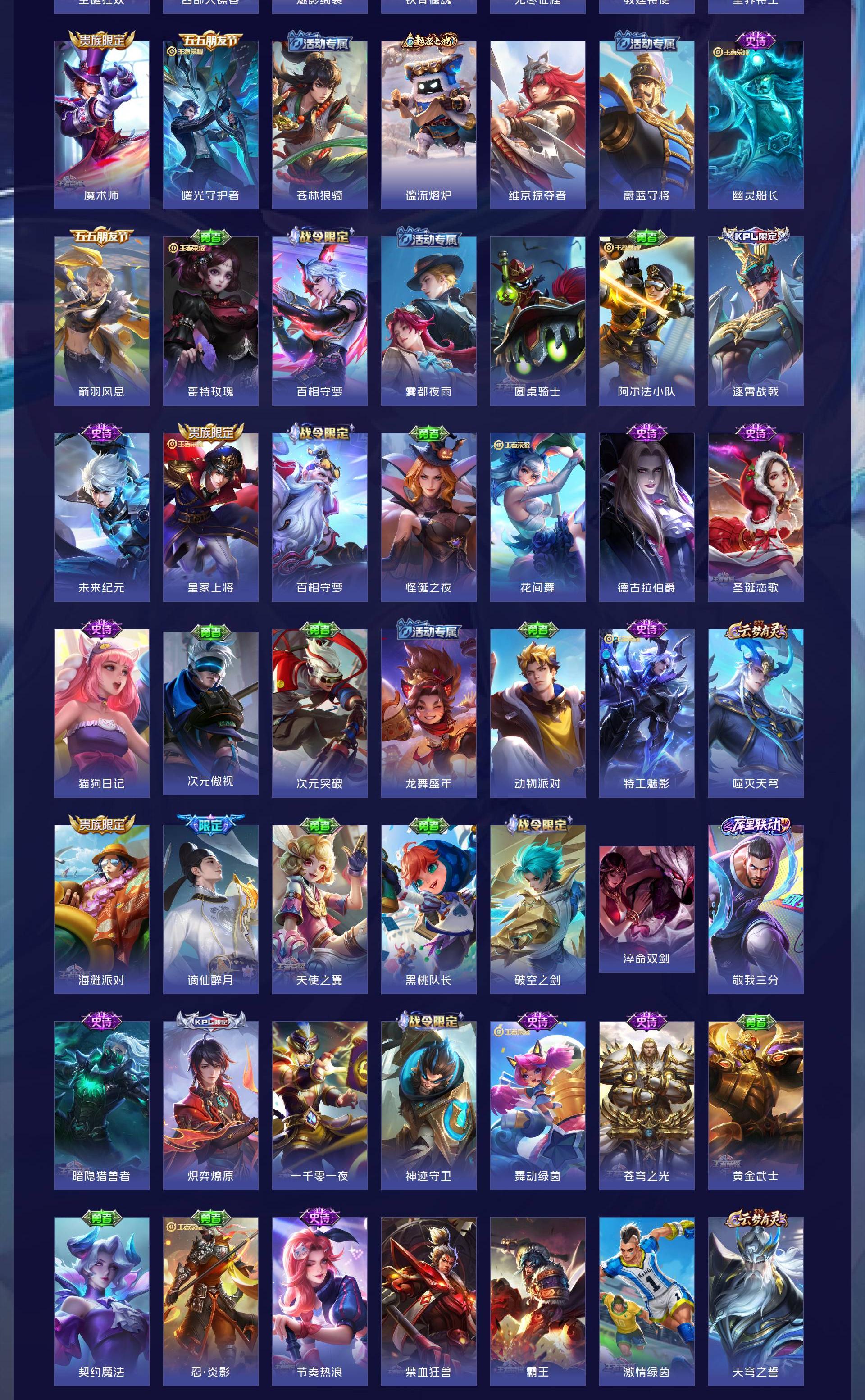 V7 皮肤207 英雄125 最强王者 无双皮肤1 星传说1 传说15 其他皮肤195