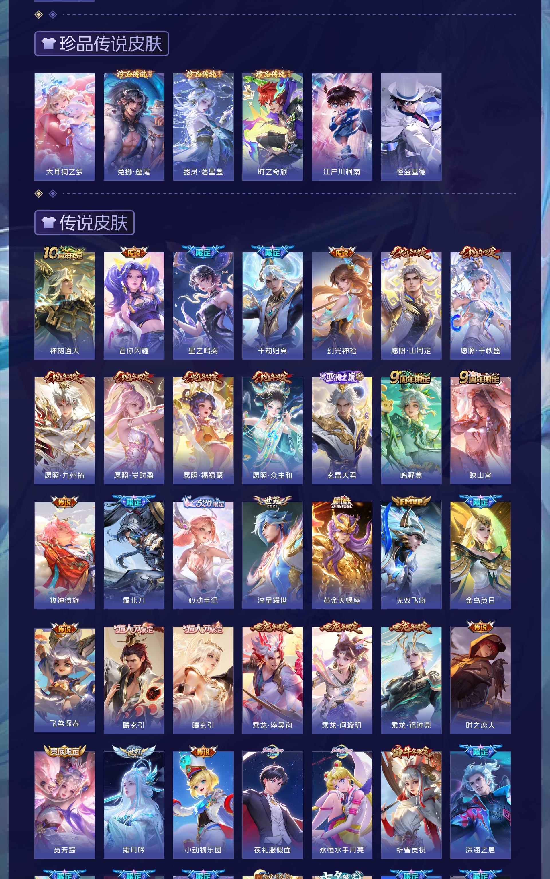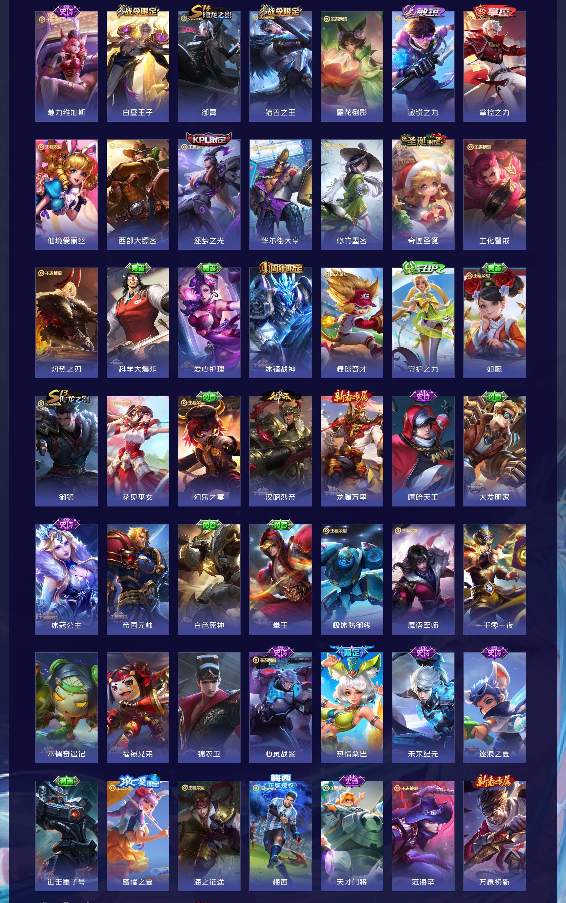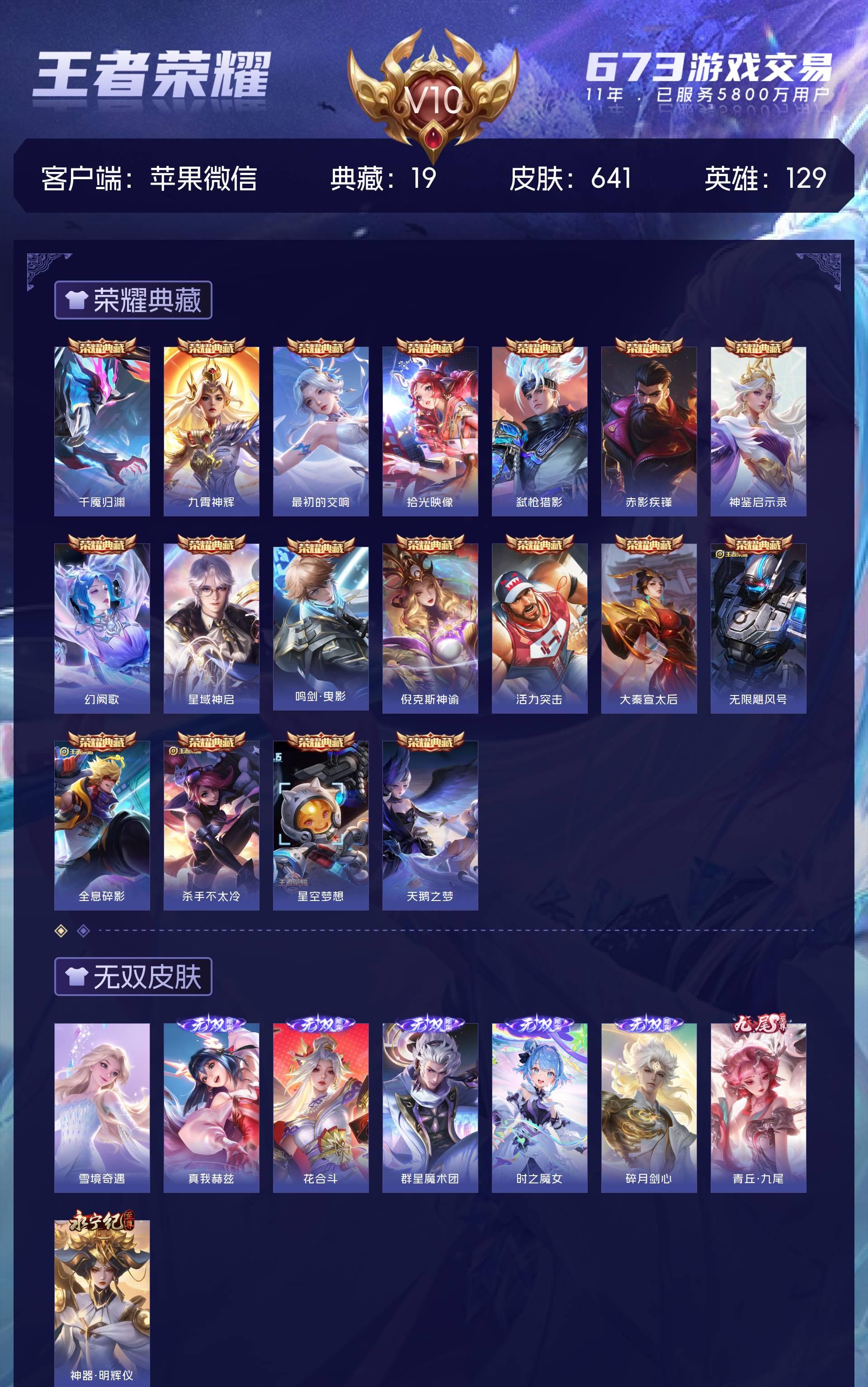 V10 皮肤641 英雄129 至圣王者 荣耀典藏19 无双皮肤8 珍品传说6 传说81 其他皮肤528