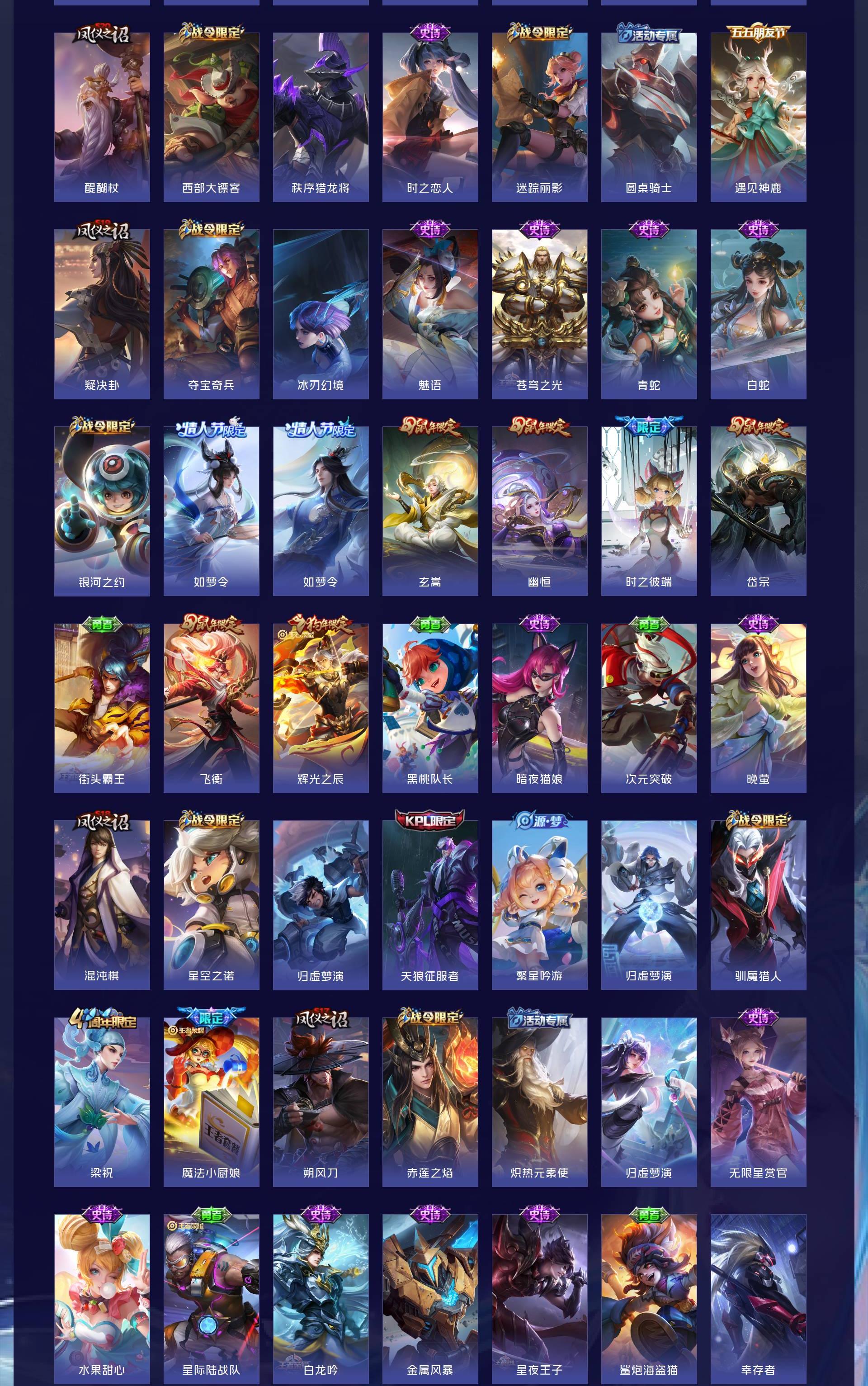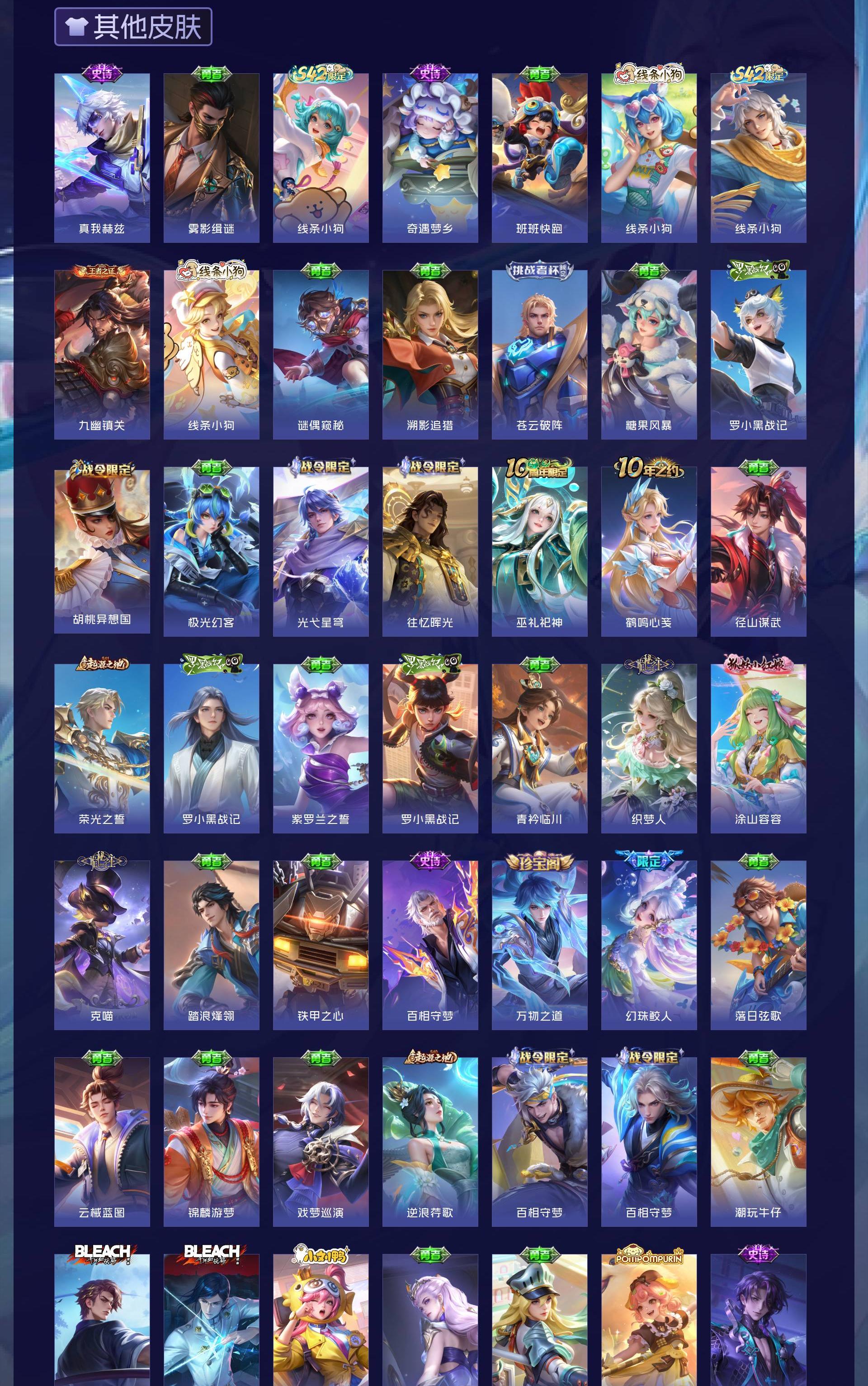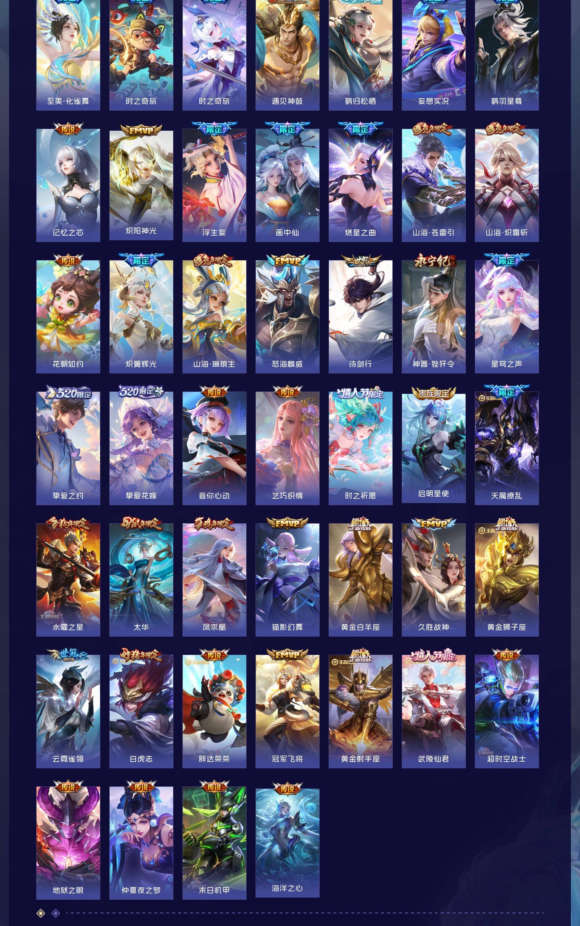 V10 皮肤641 英雄129 至圣王者 荣耀典藏19 无双皮肤8 珍品传说6 传说81 其他皮肤528