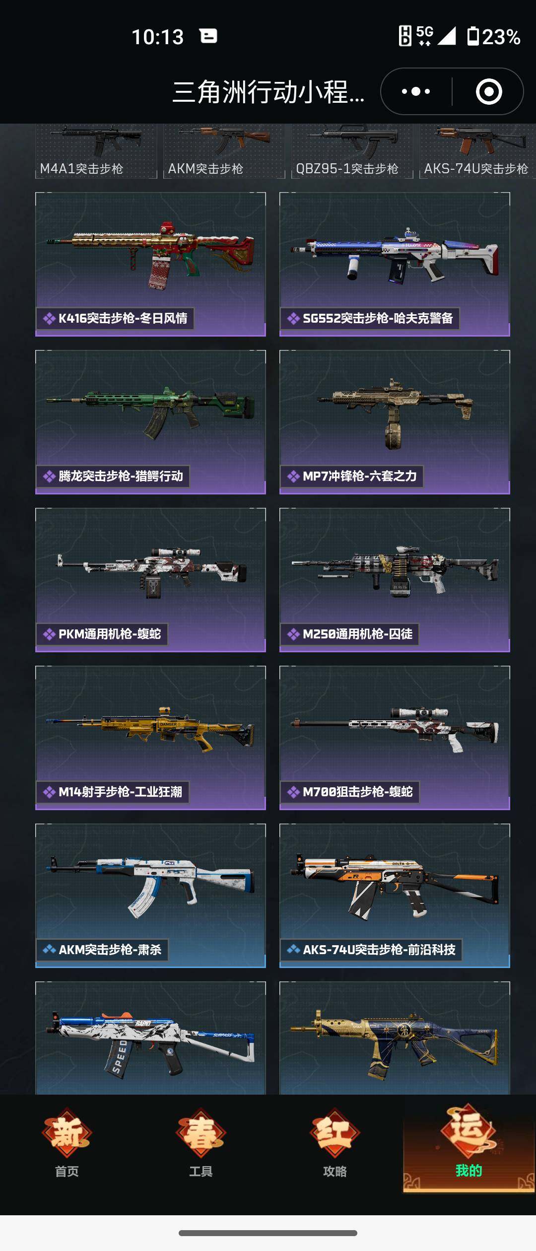 【稀有外观】:AKM突击步枪-肃杀,AKS-74U突击步枪-前沿科技,K416突击步枪-一帆风顺,SG552突击步枪-2026,SCA