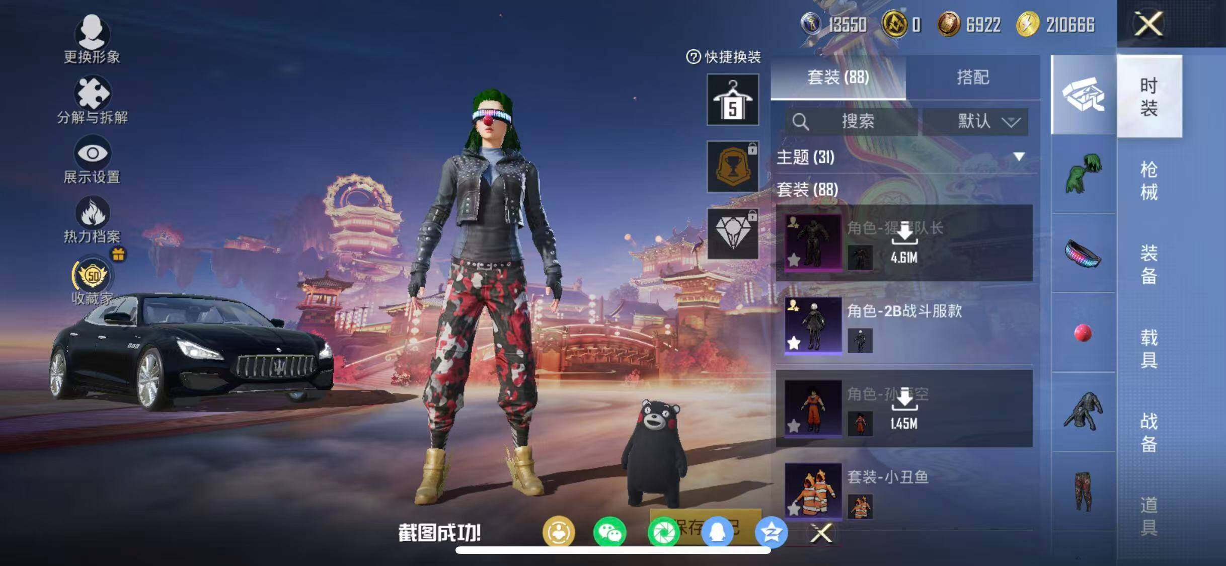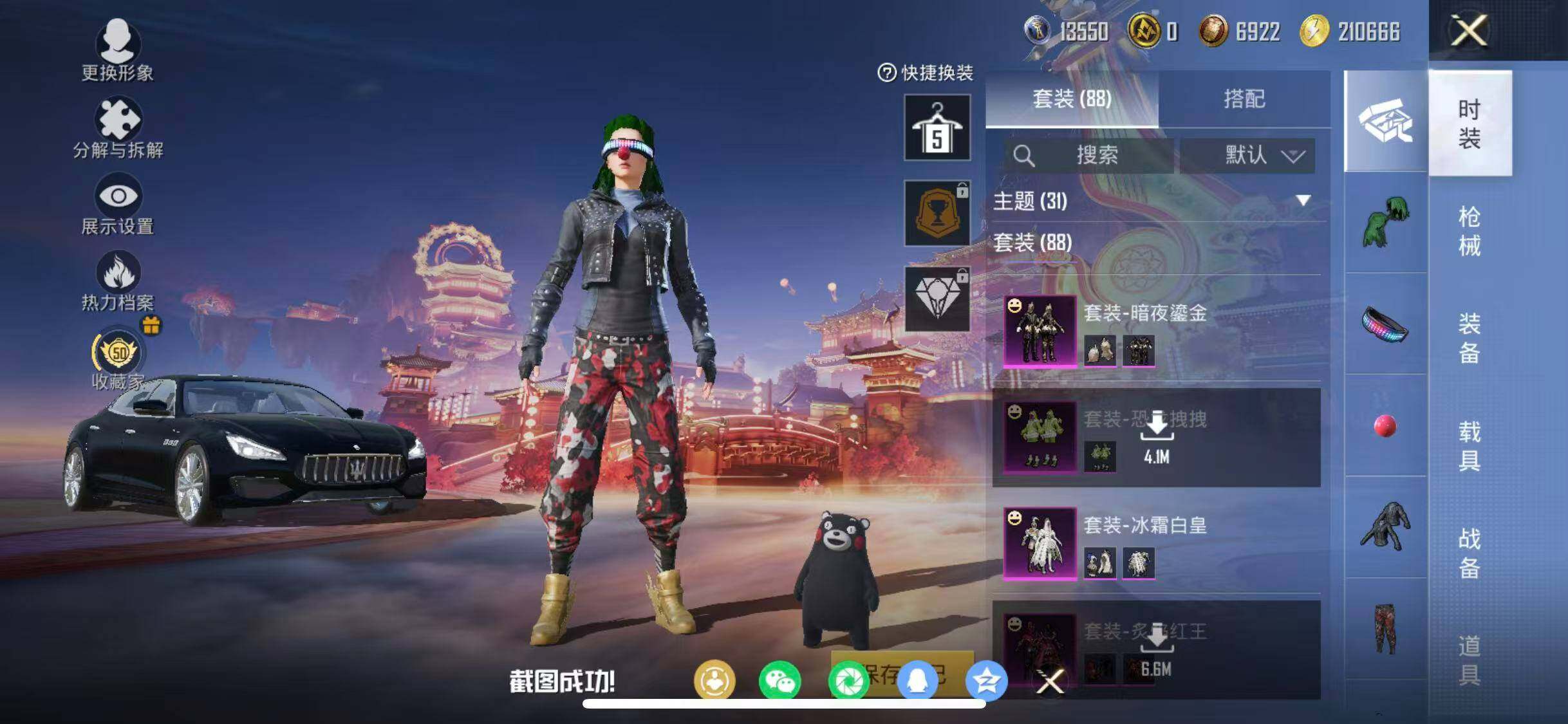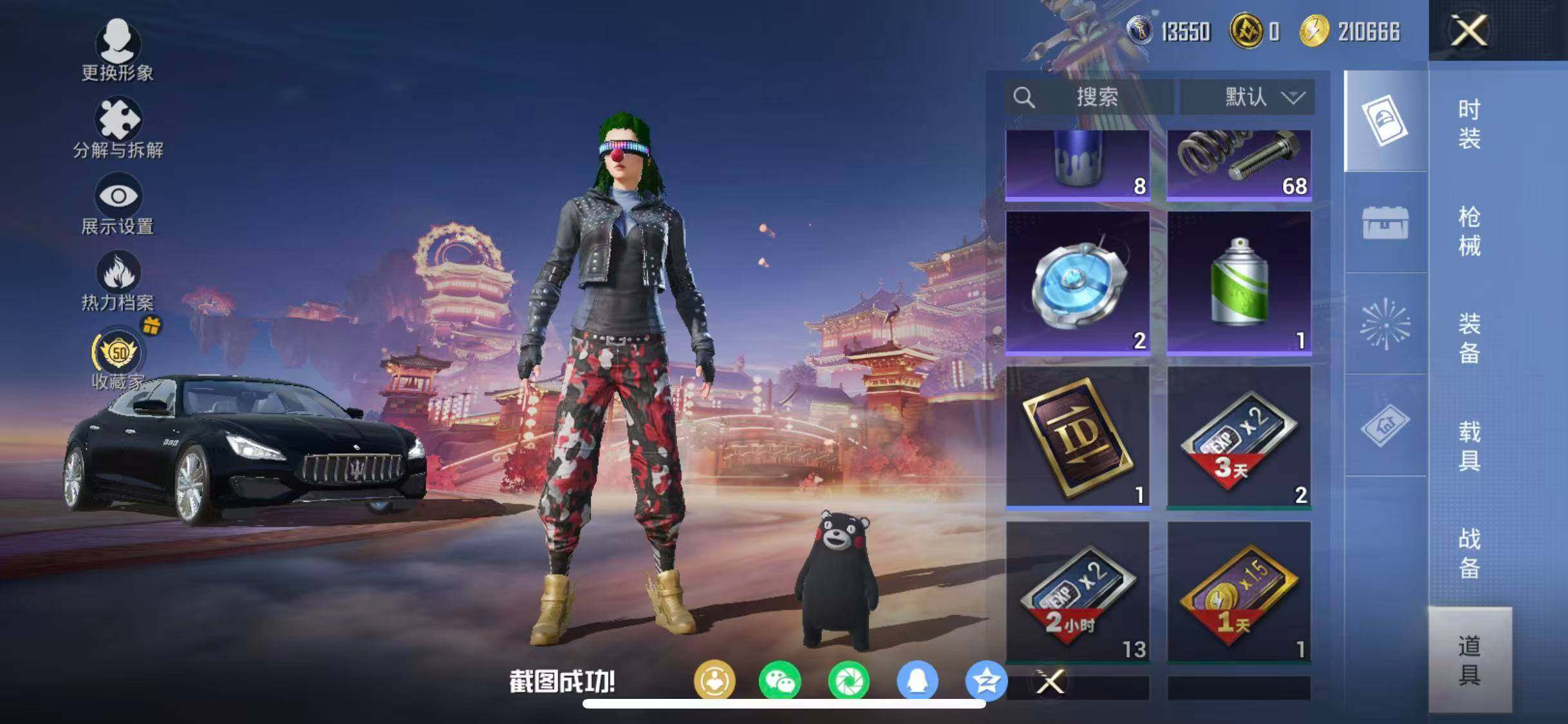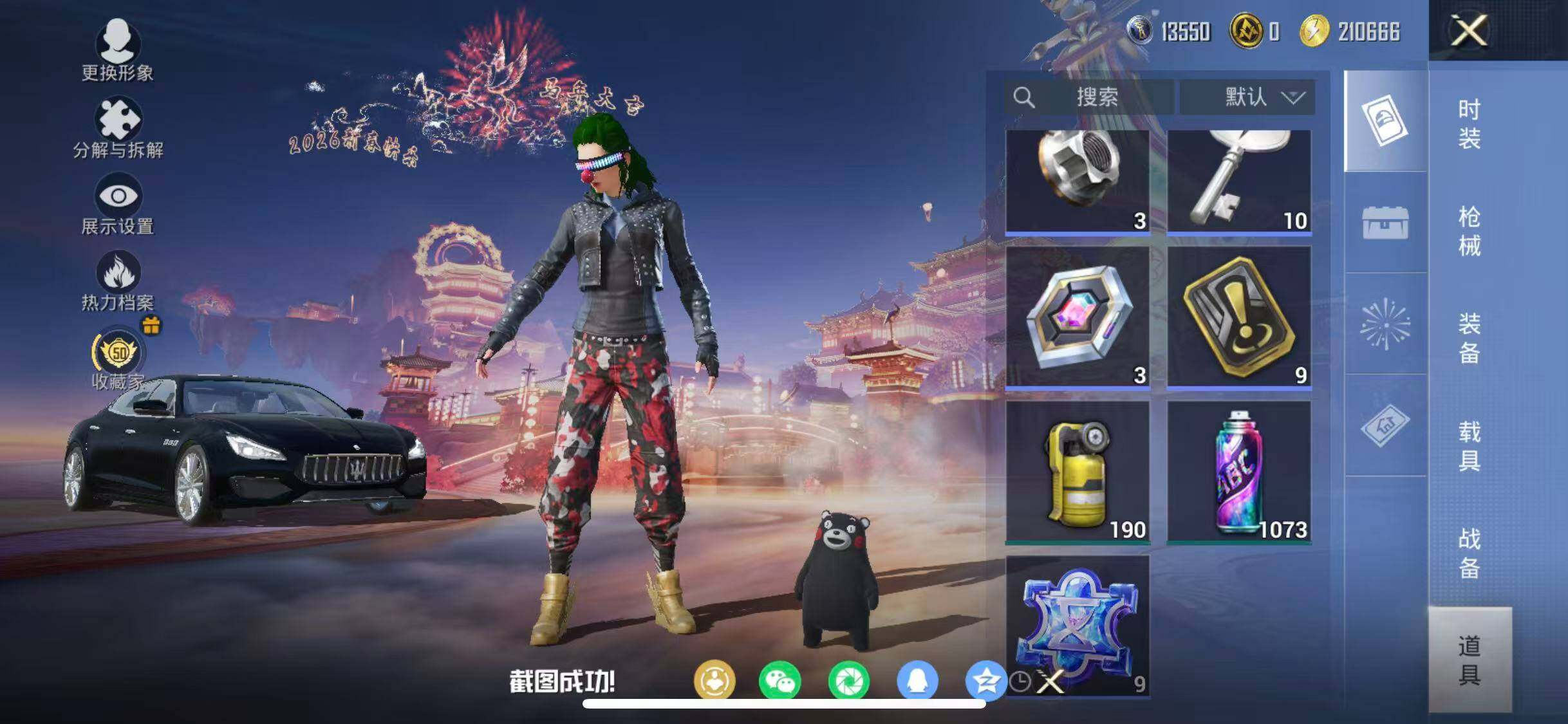 苹果 手Q-12粉装-2特效枪-2载具-3粉色飞行器-41310热力值-6王牌印记-88套装-113枪皮