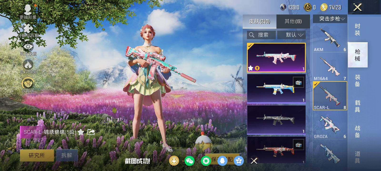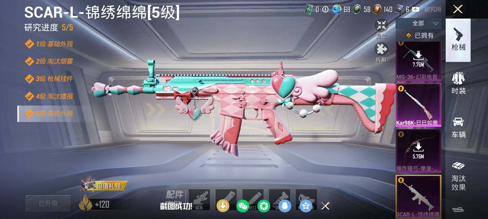 【粉色枪皮等级】:SCAR-L-锦绣绵绵(五级),Kar98K-巳巳如意(五级),D