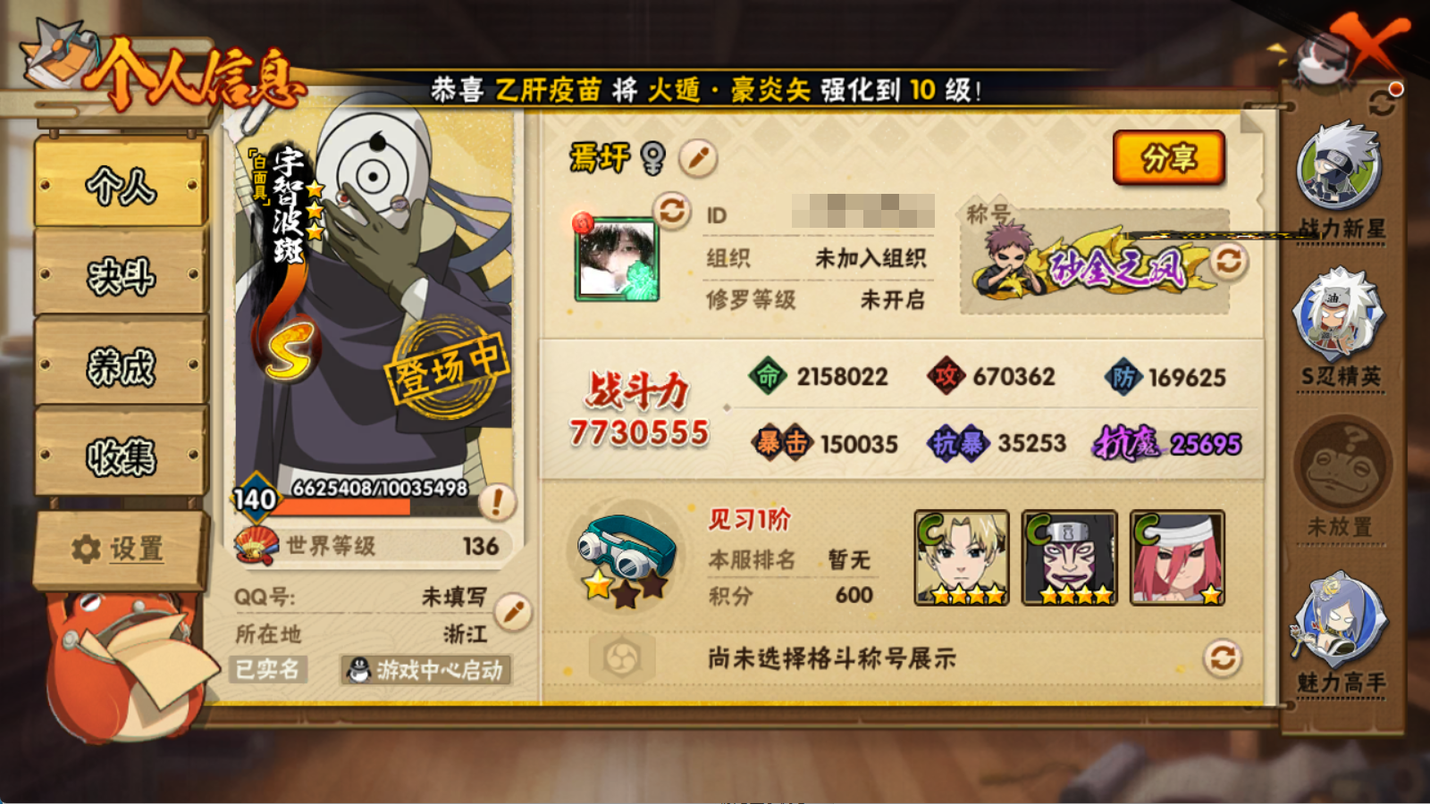 (可转苹果)773W战力创柱绿牛红夜带土14S+面麻忍卡2个