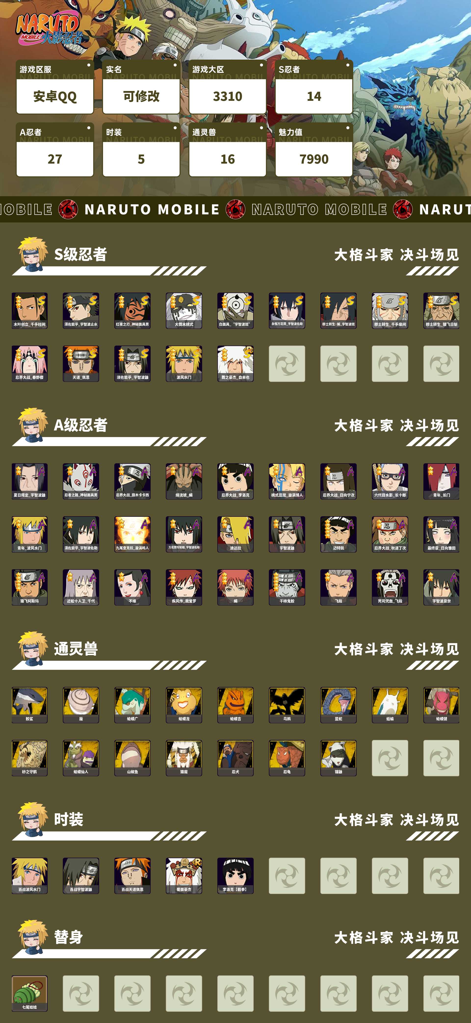 (可转苹果)773W战力 创柱 绿牛 红夜带土14S+面麻 忍卡2个198直购27A+84片传自
