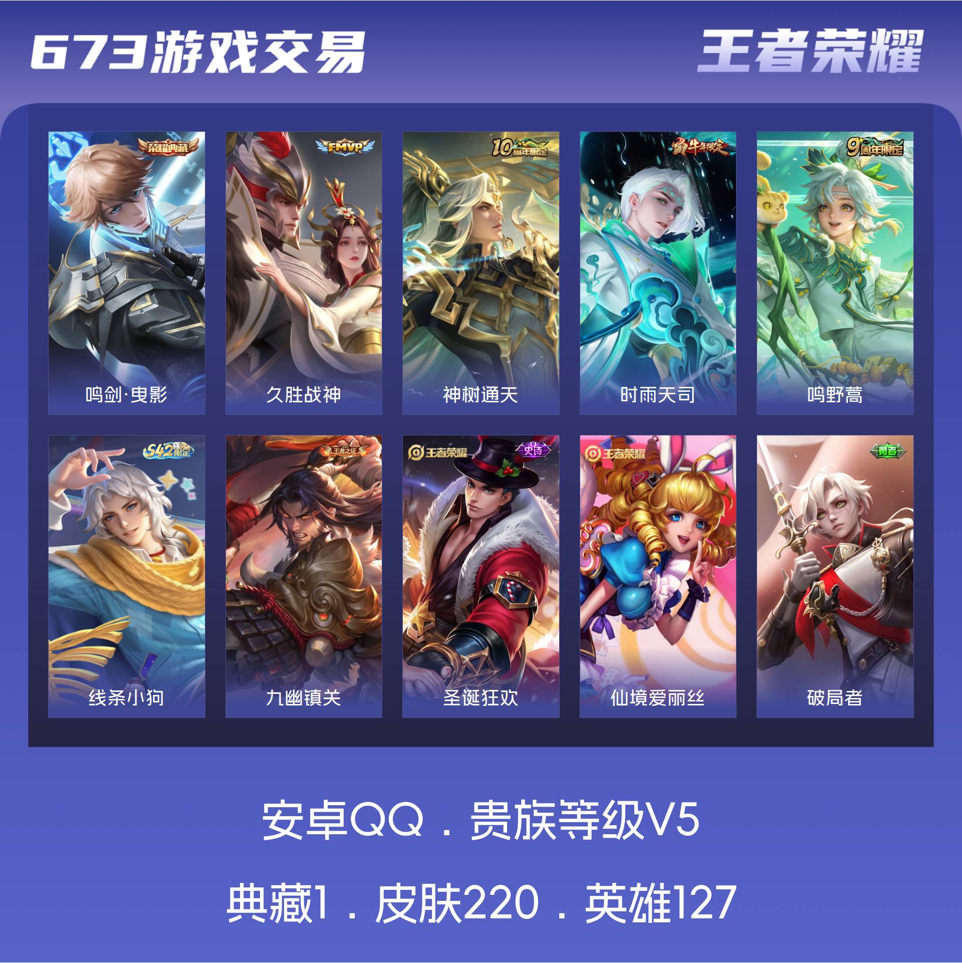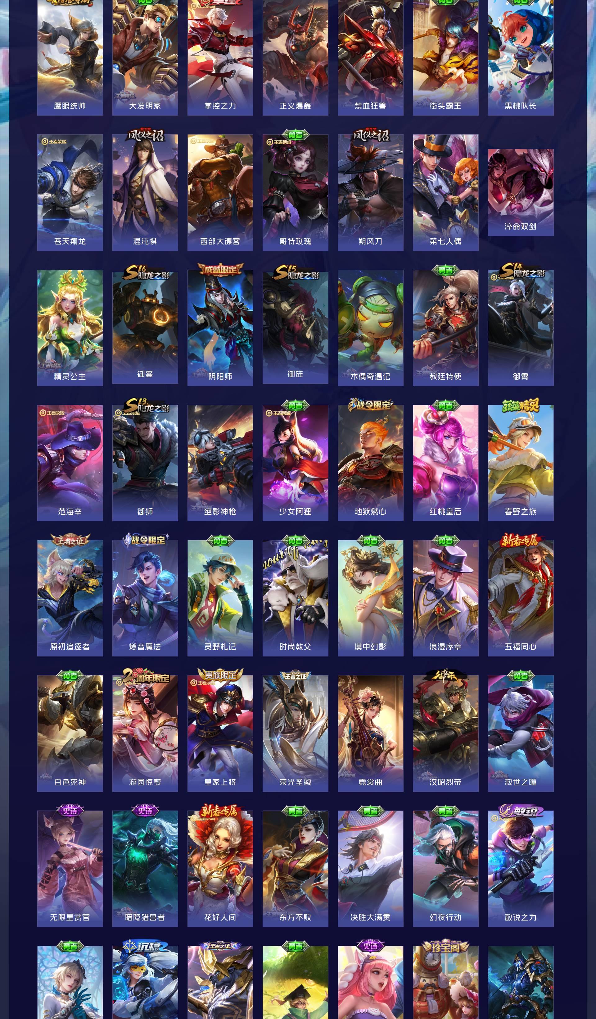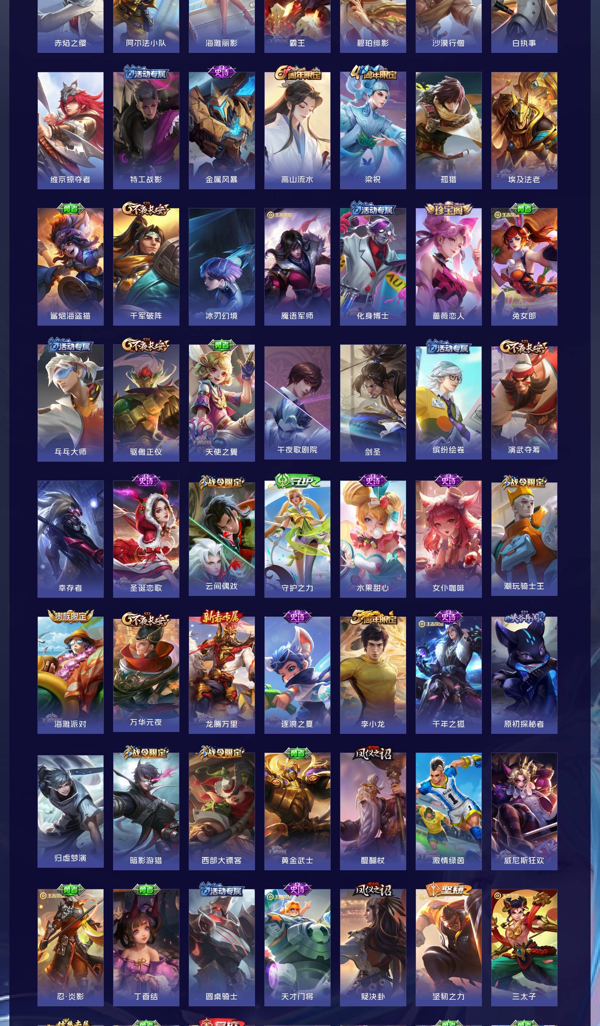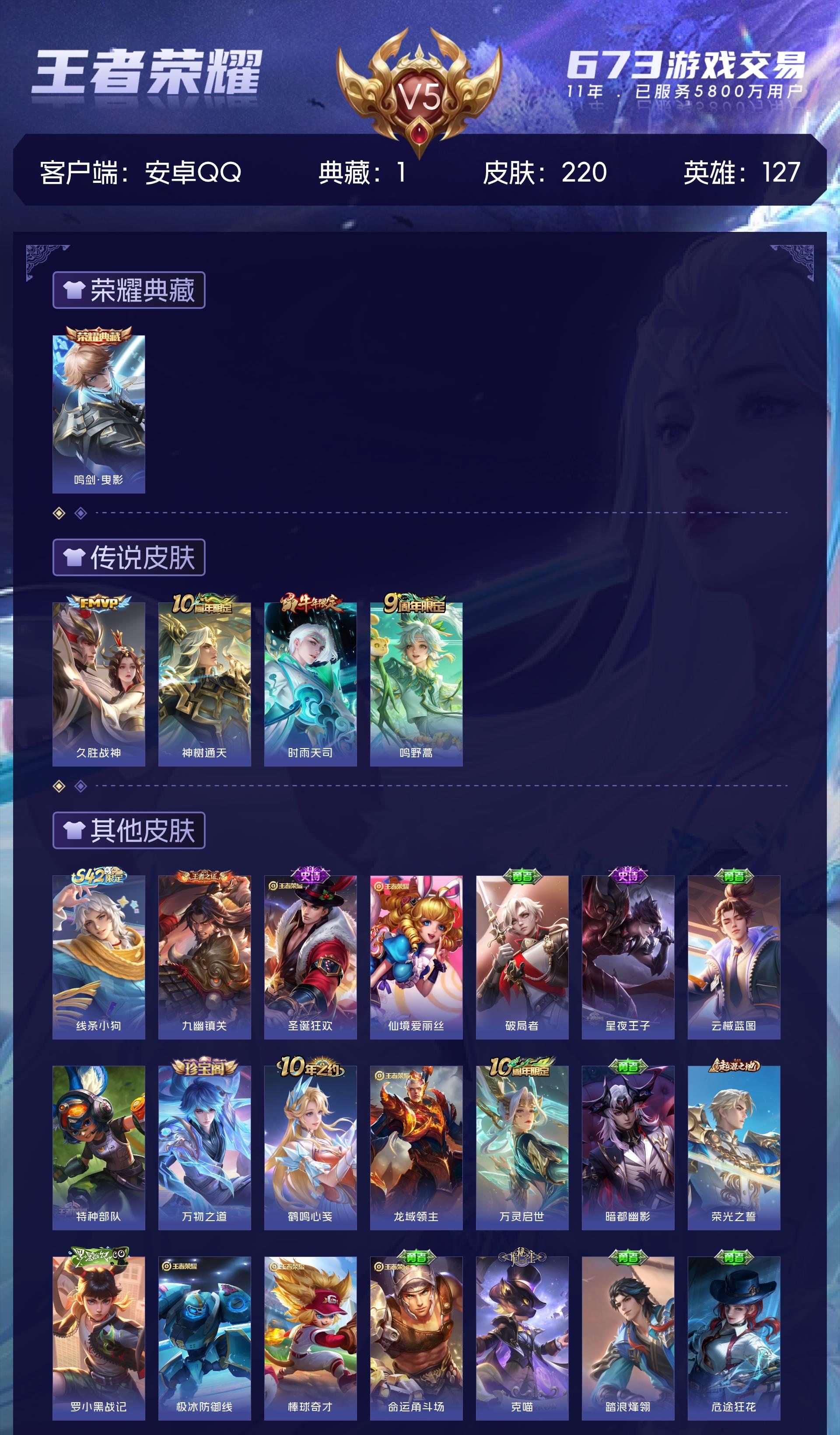 V5 皮肤220 英雄127 至尊星耀 荣耀典藏1 传说4 其他皮肤221