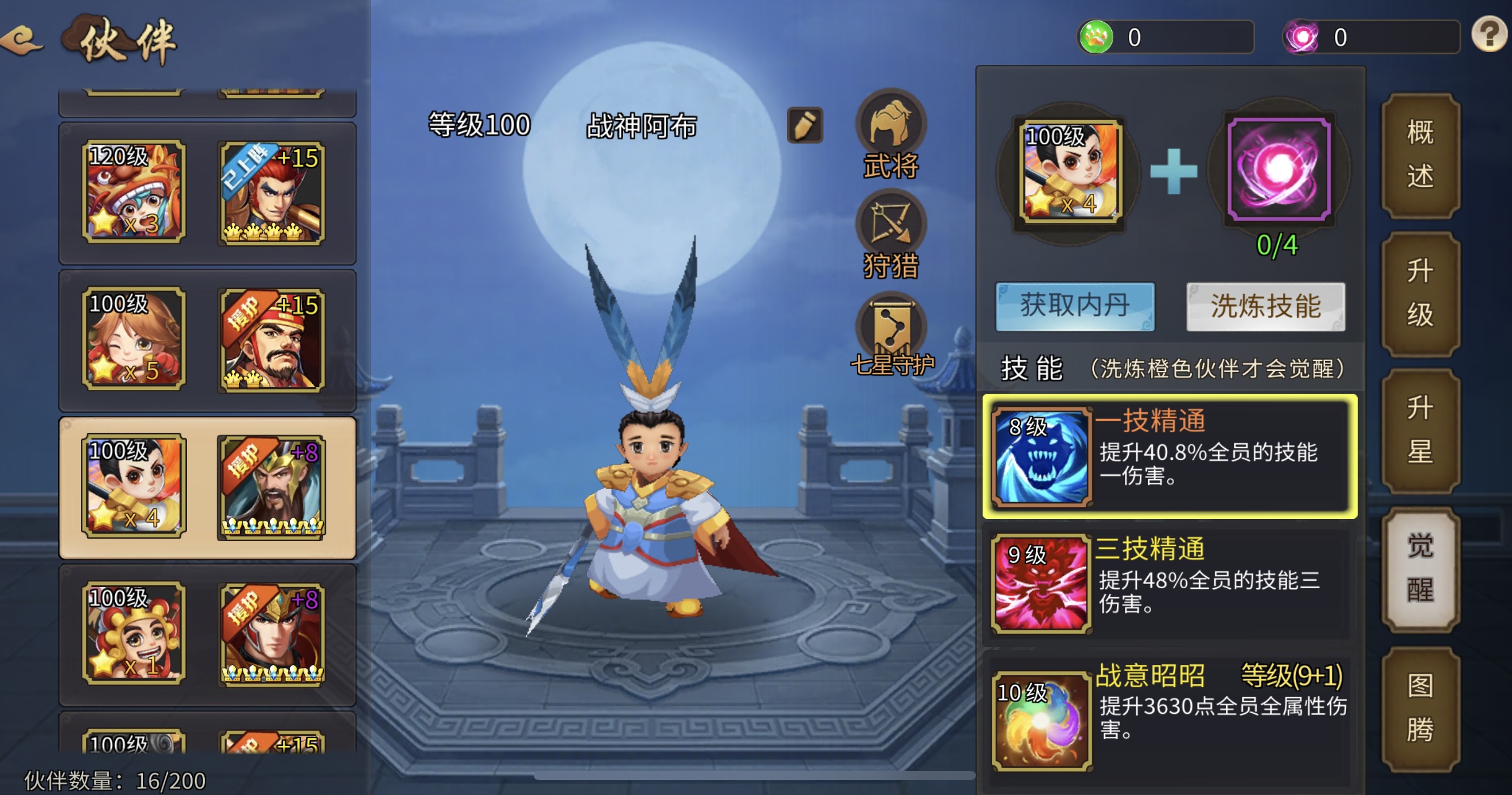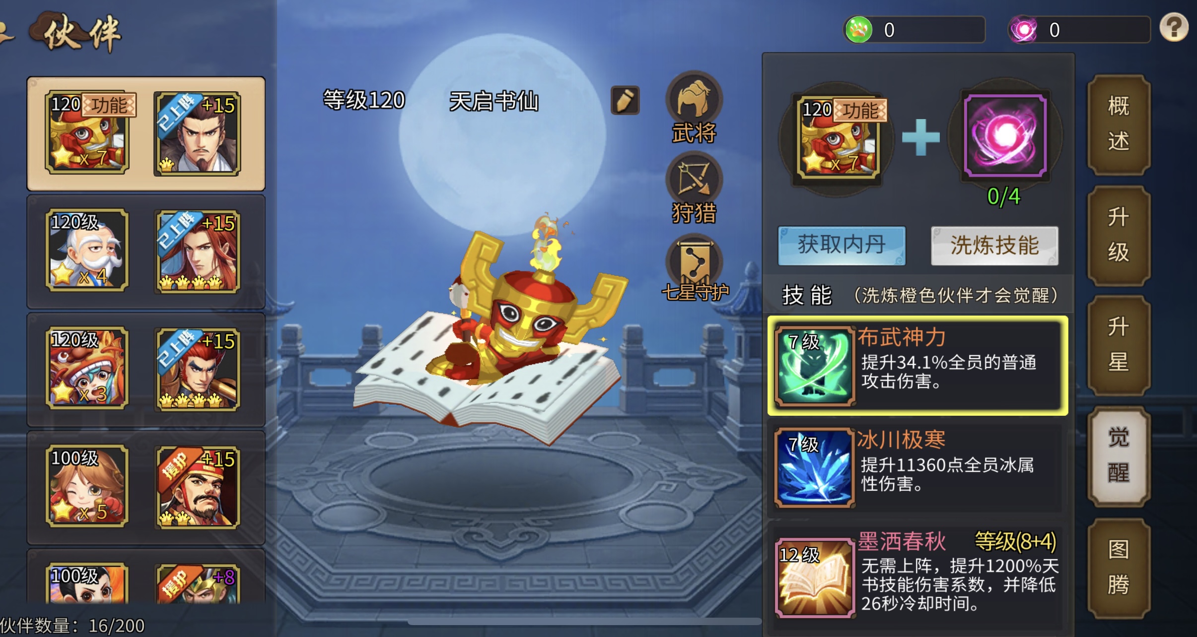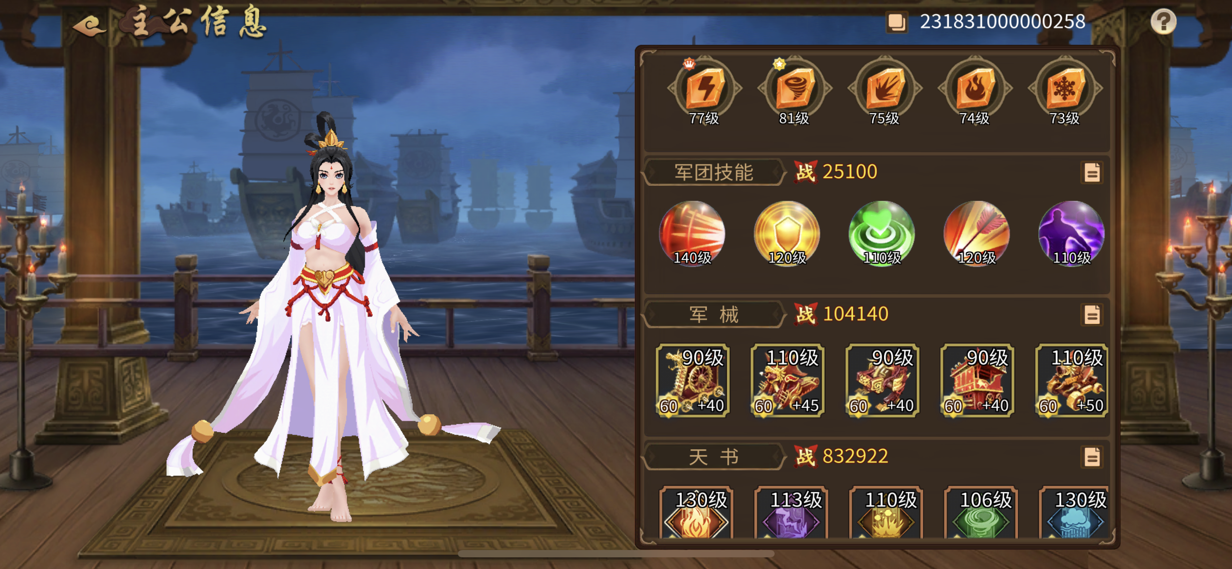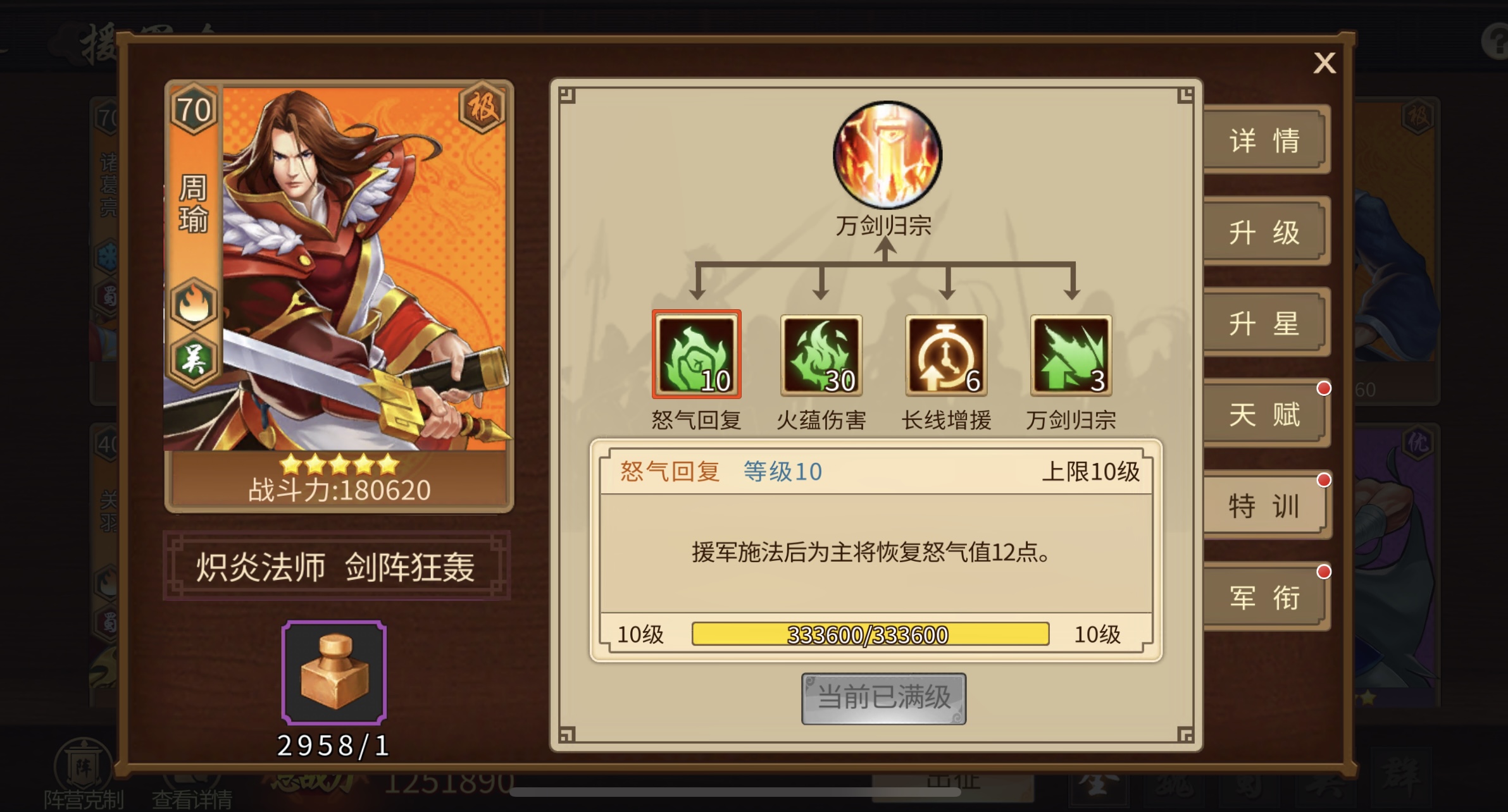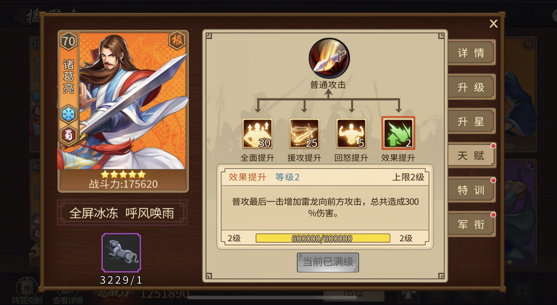 退游了 年将刘协兵法3星一个4星 天书两个快7星 5个金色祭石 援军两个5星 1个4星 两个3星 大招都3级 宠物专属技能基本都是9级