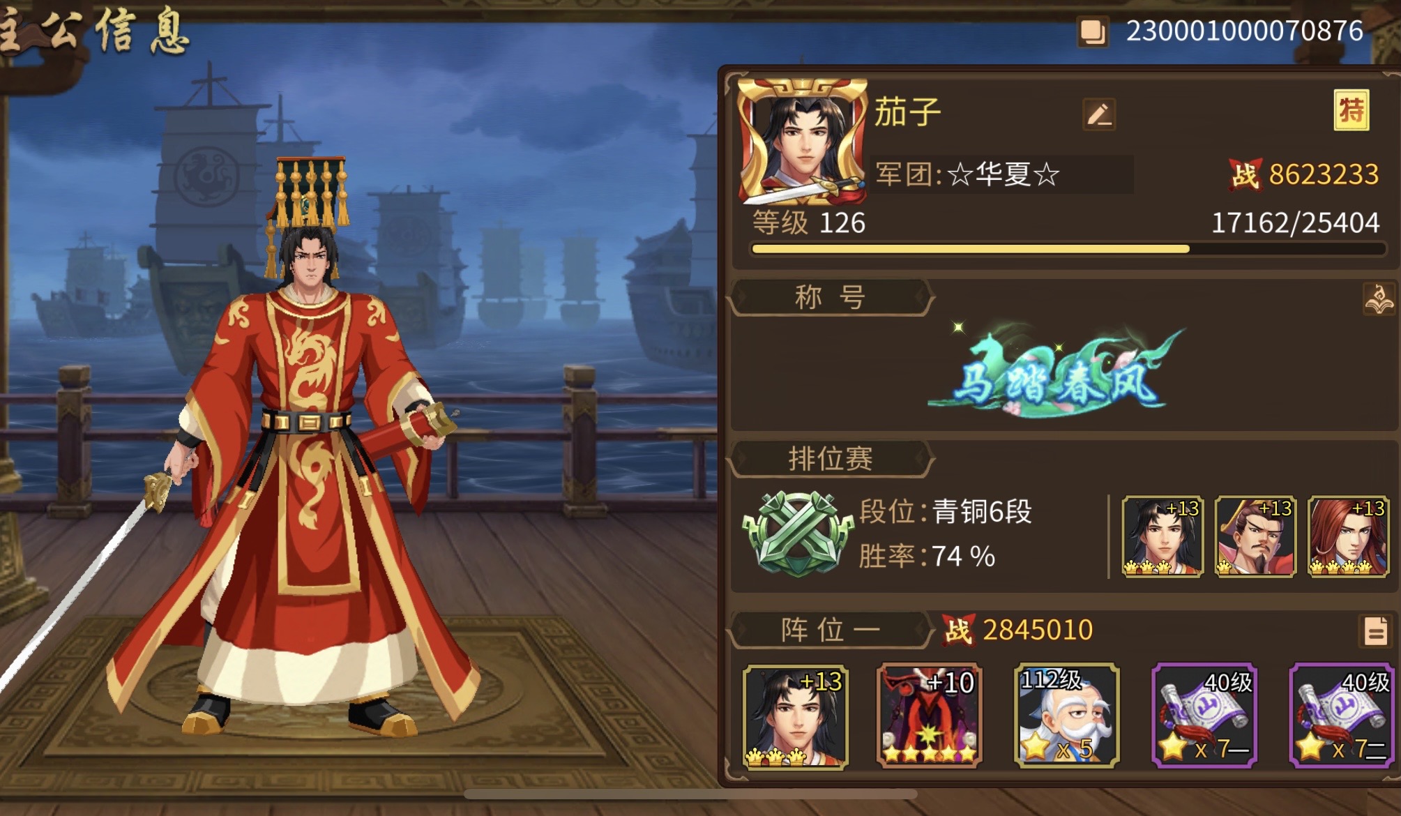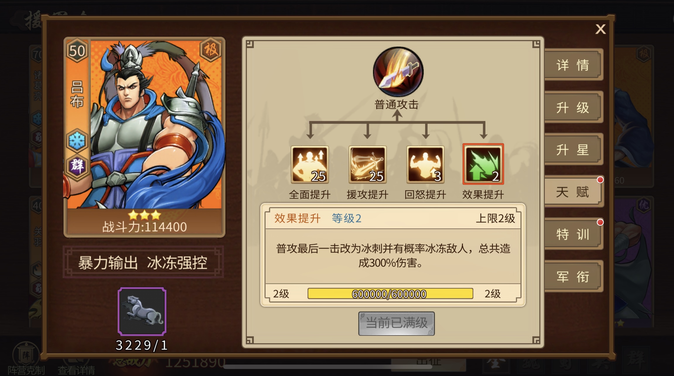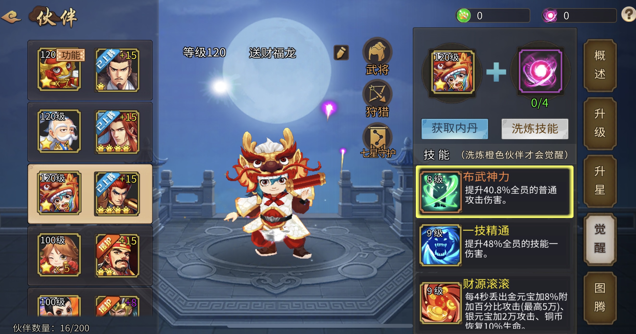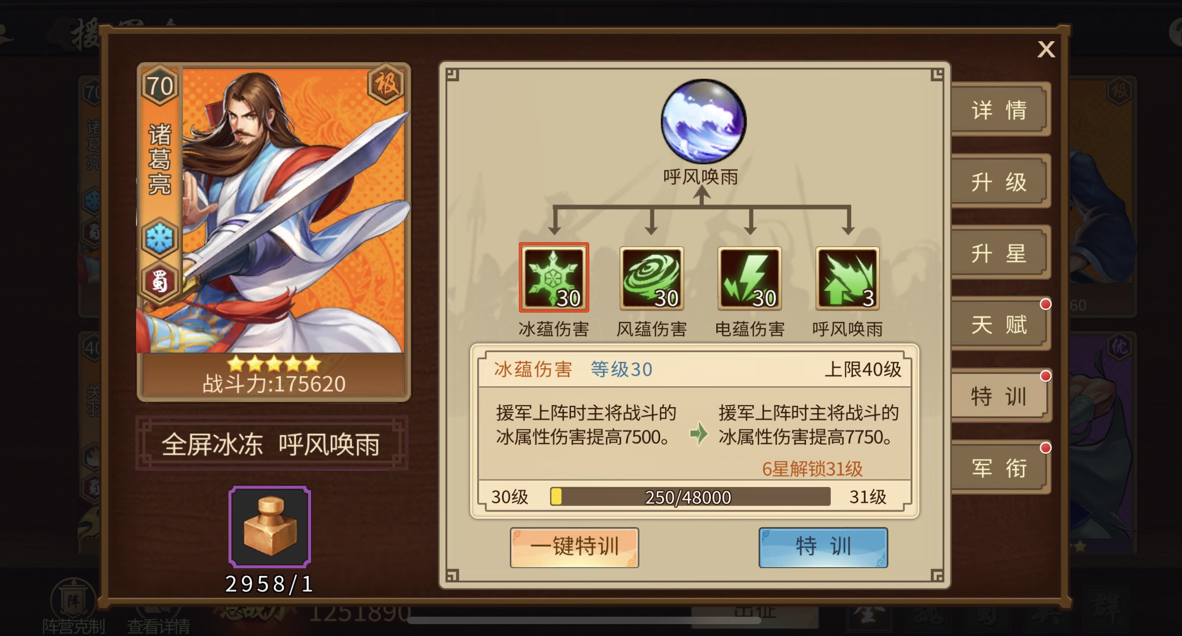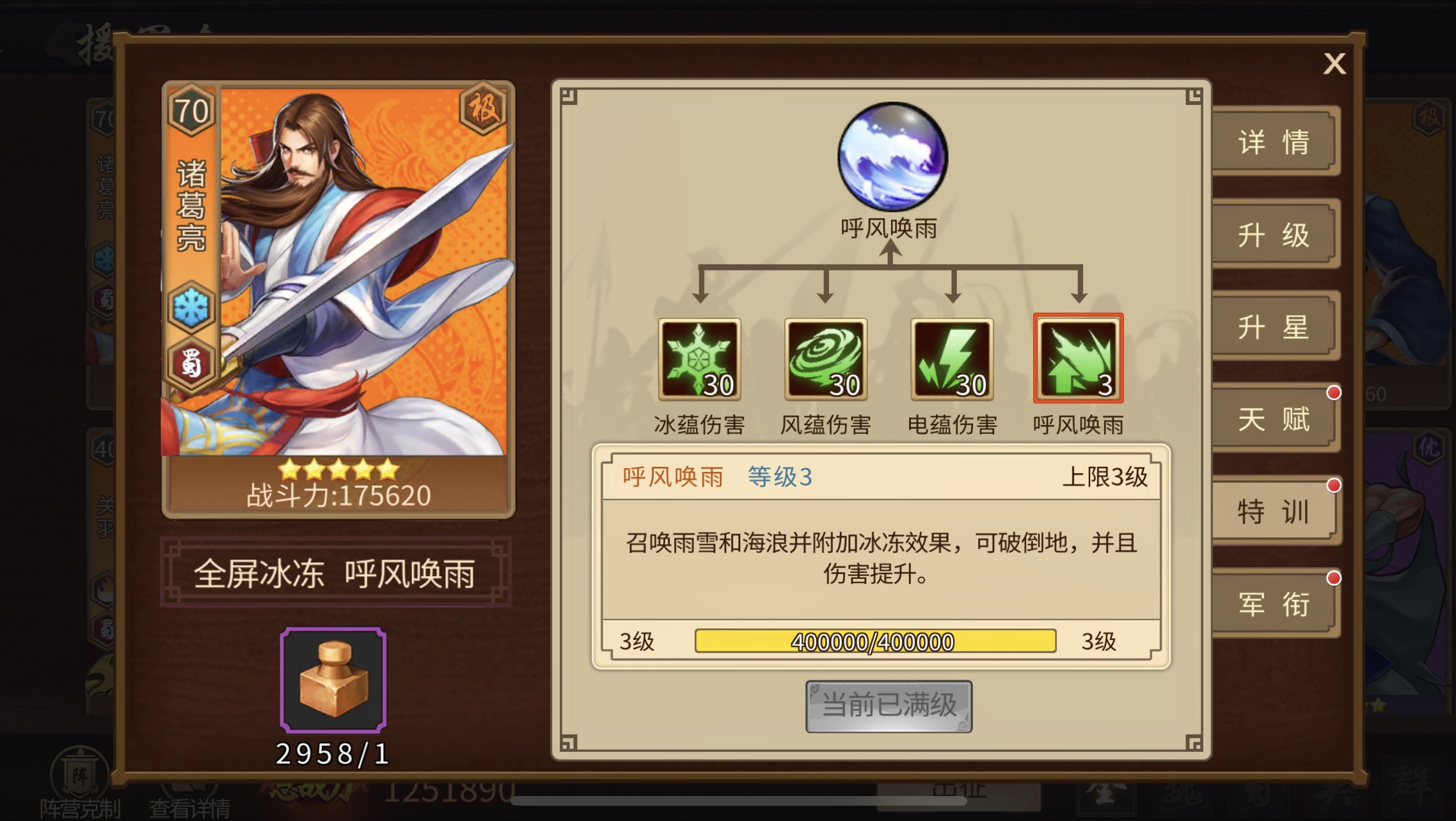退游了 年将刘协兵法3星一个4星 天书两个快7星 5个金色祭石 援军两个5星 1个4星 两个3星 大招都3级 宠物专属技能基本都是9级