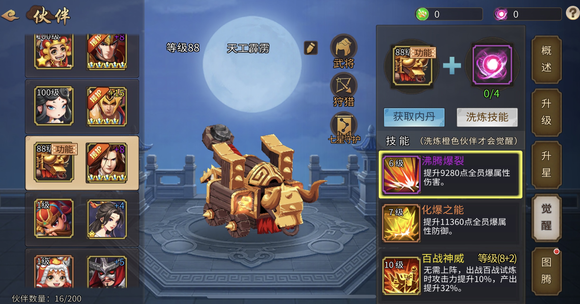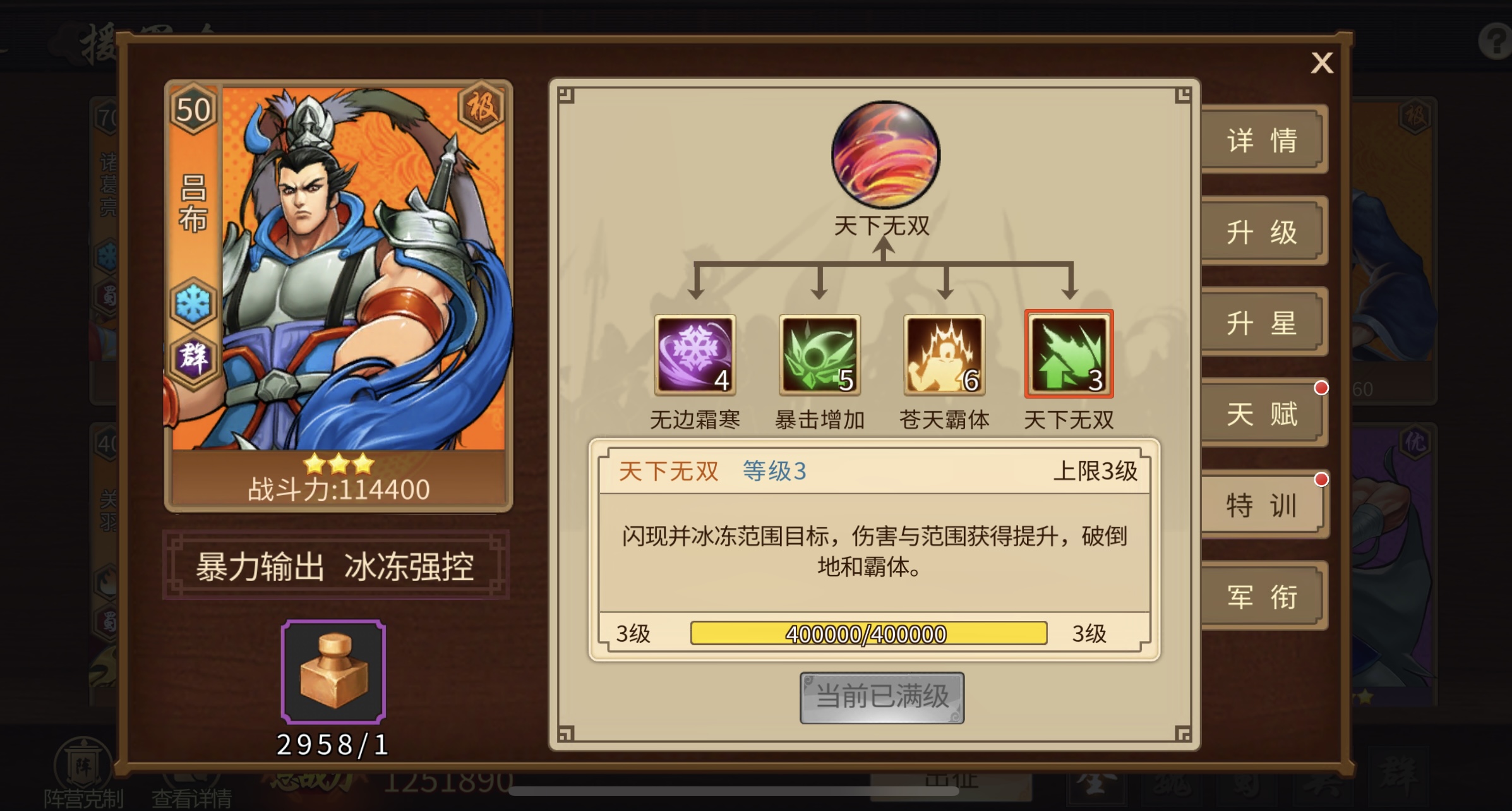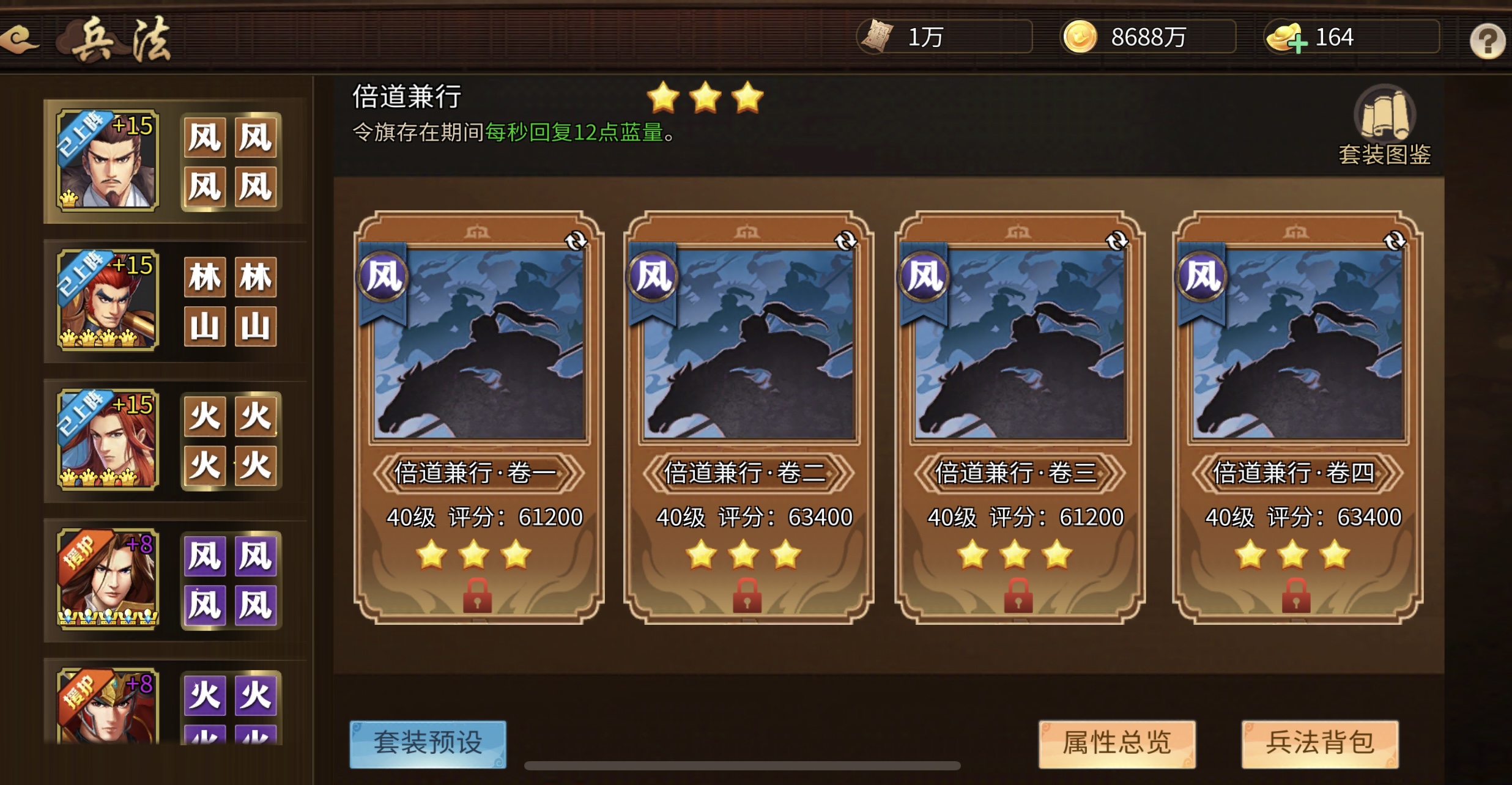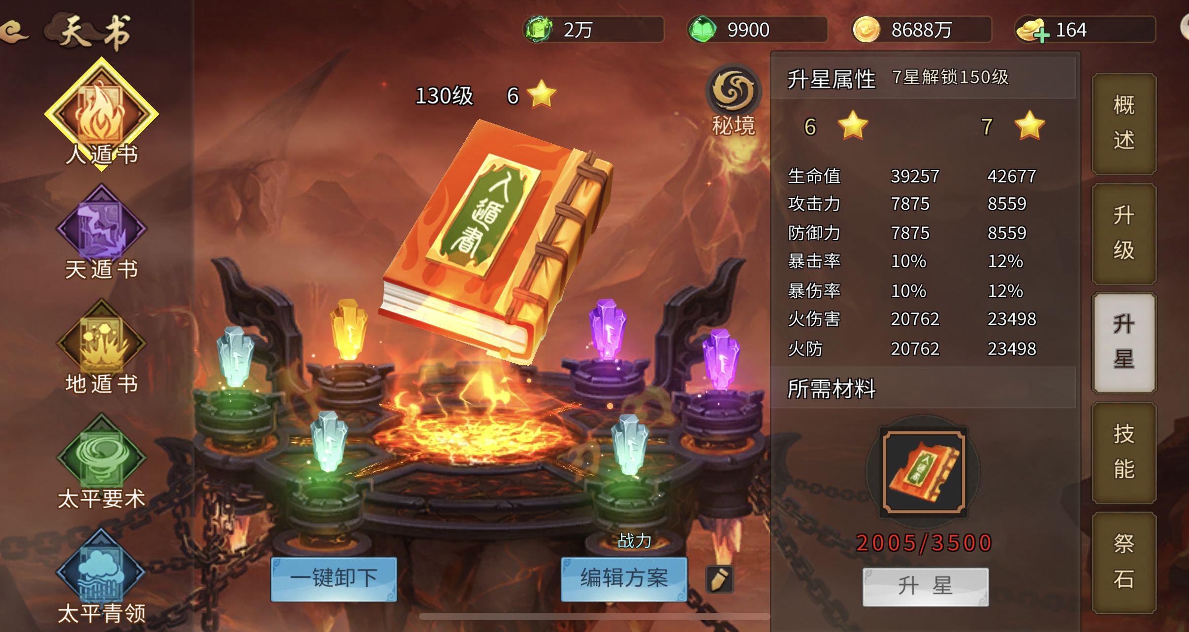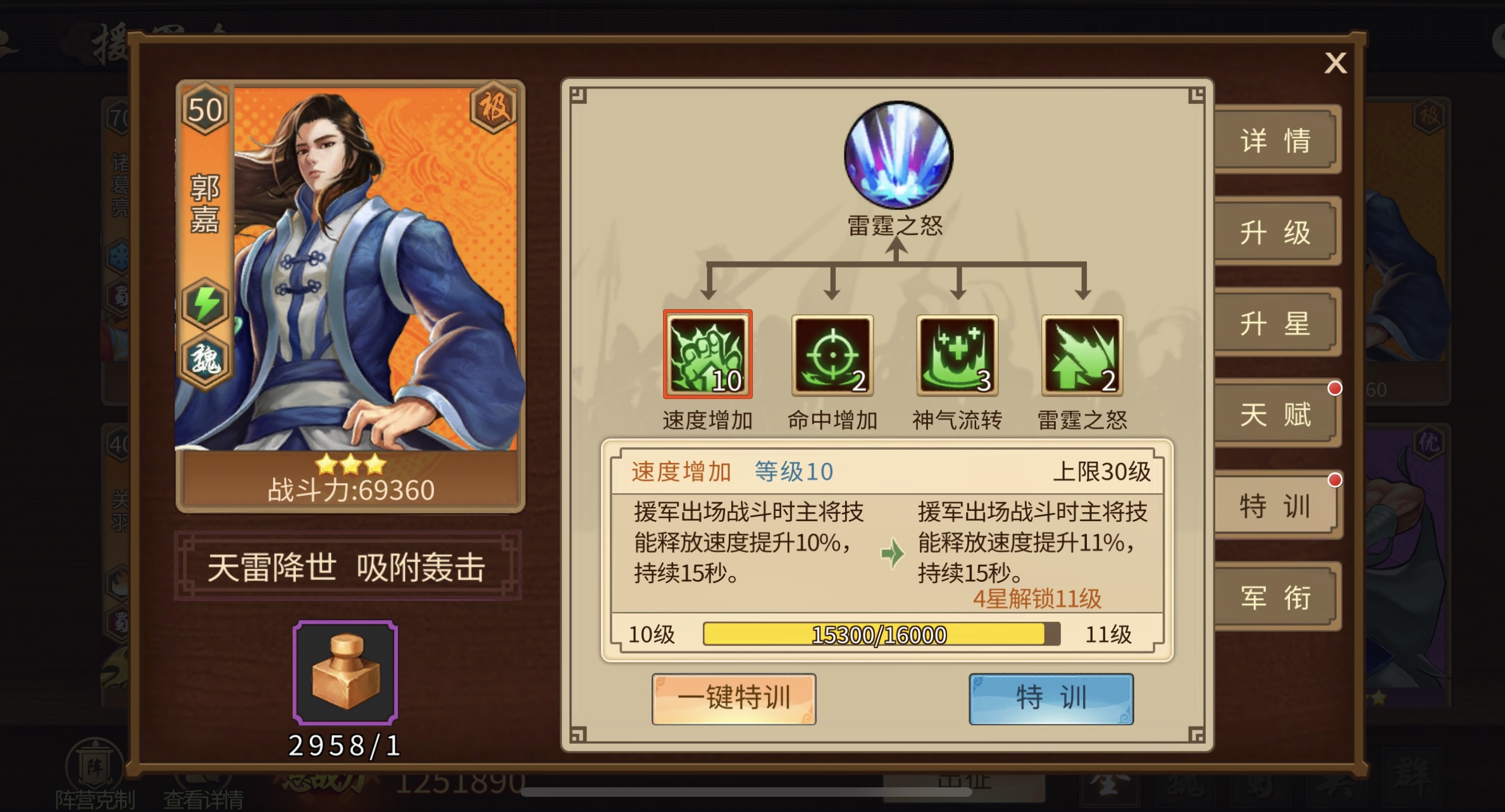 退游了 年将刘协兵法3星一个4星 天书两个快7星 5个金色祭石 援军两个5星 1个4星 两个3星 大招都3级 宠物专属技能基本都是9级