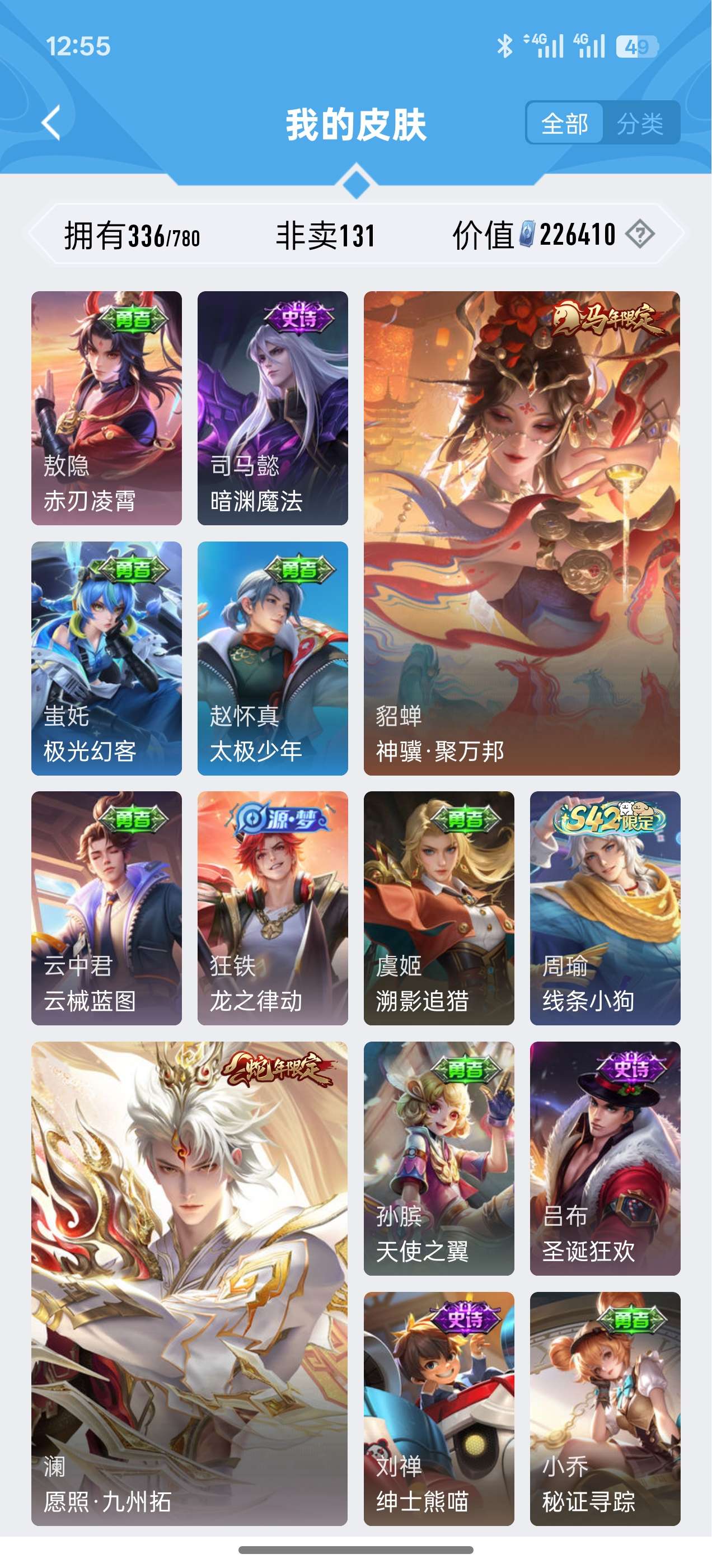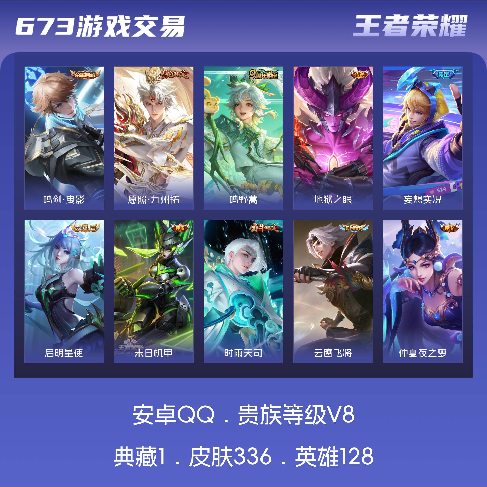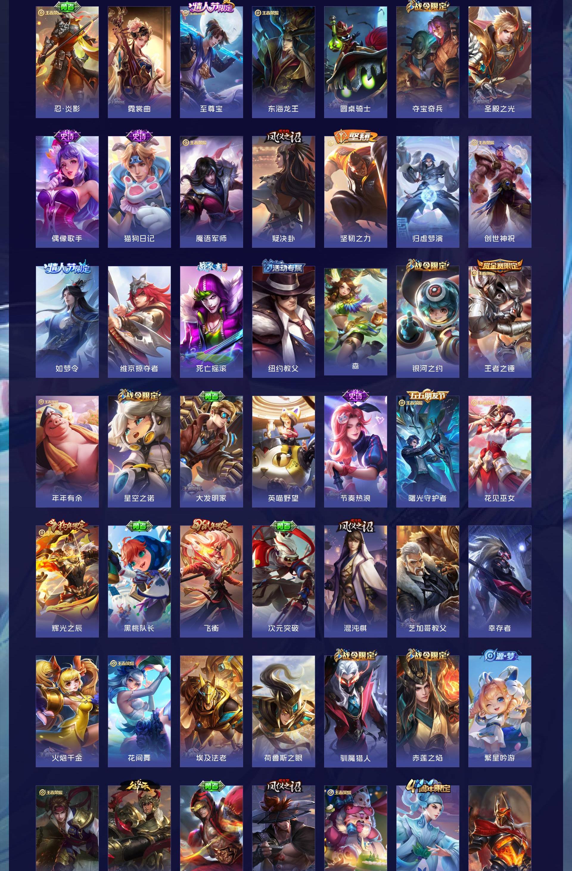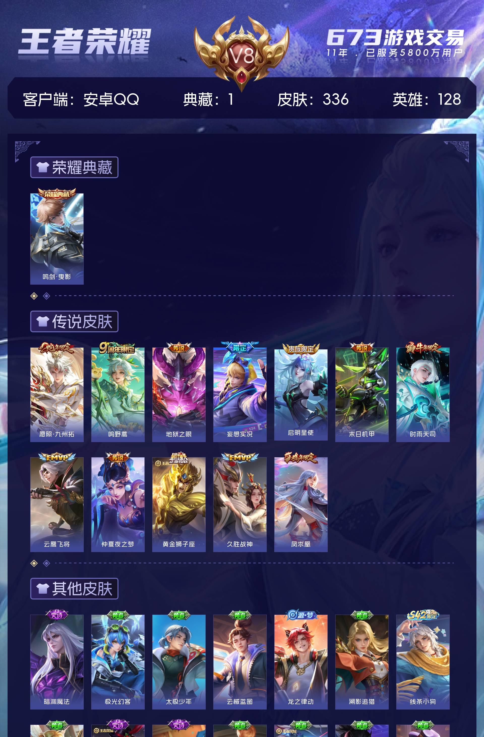 V8 皮肤336 英雄128 非凡王者 荣耀典藏1 星传说2 传说12 其他皮肤327