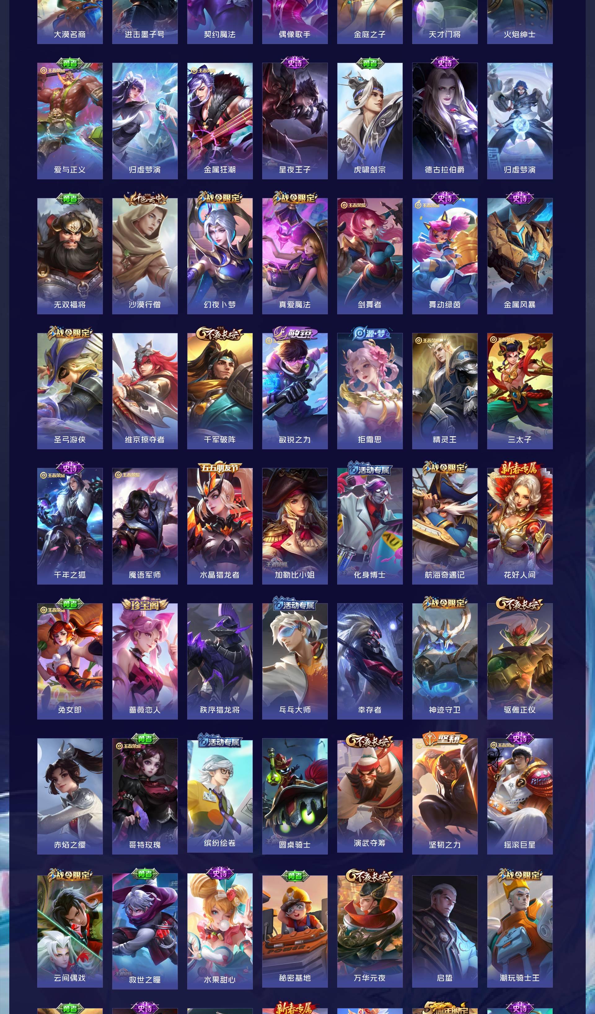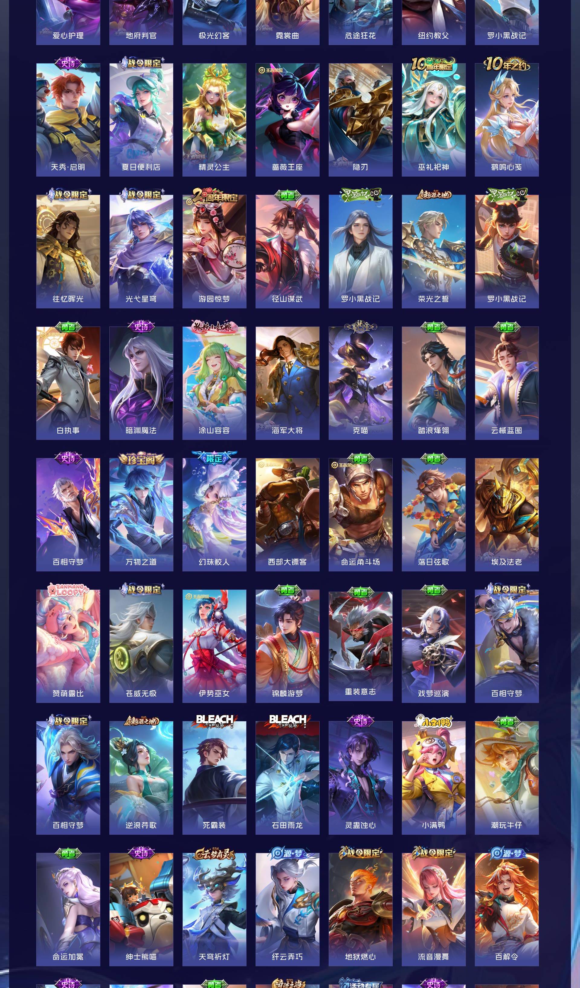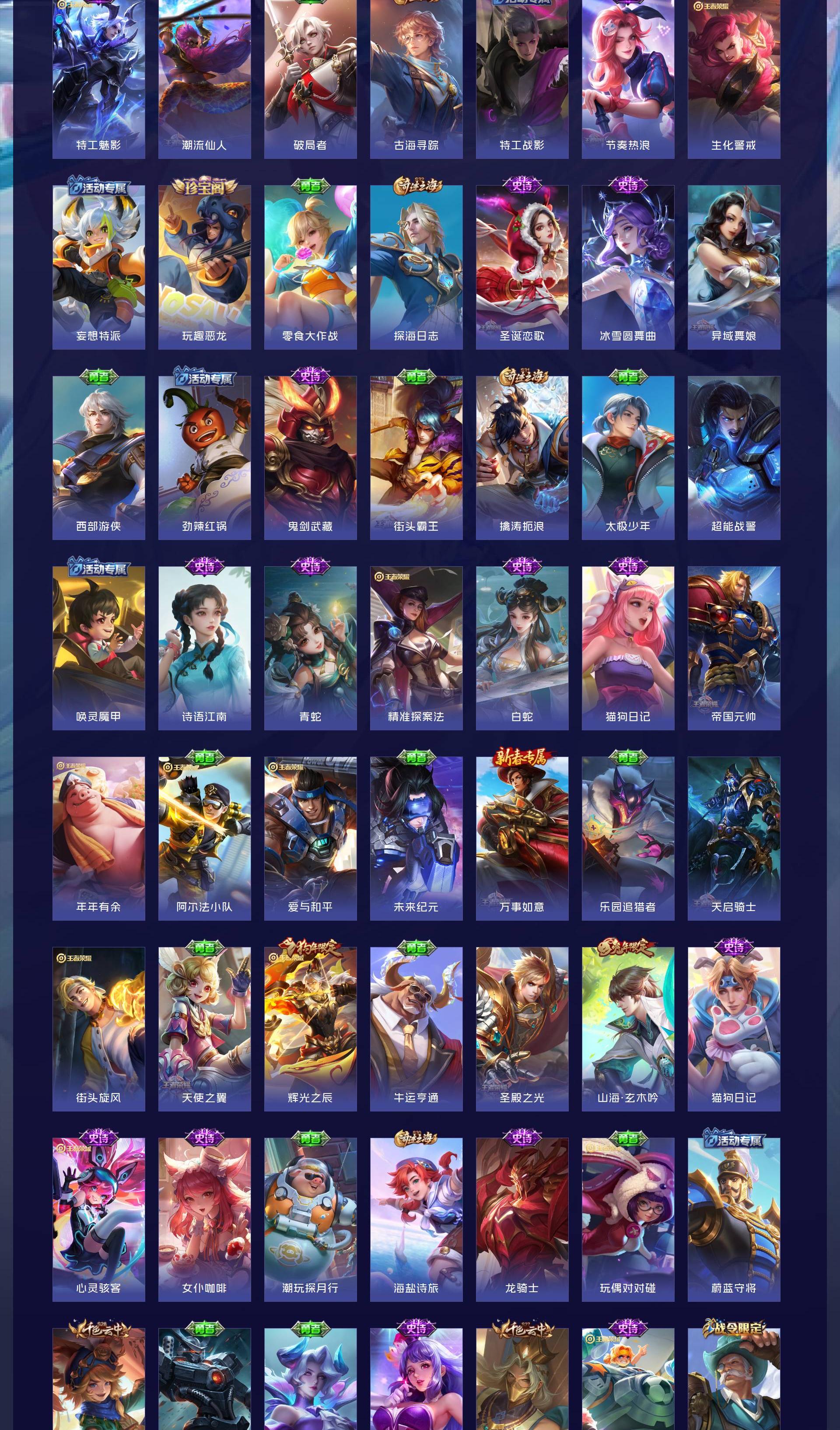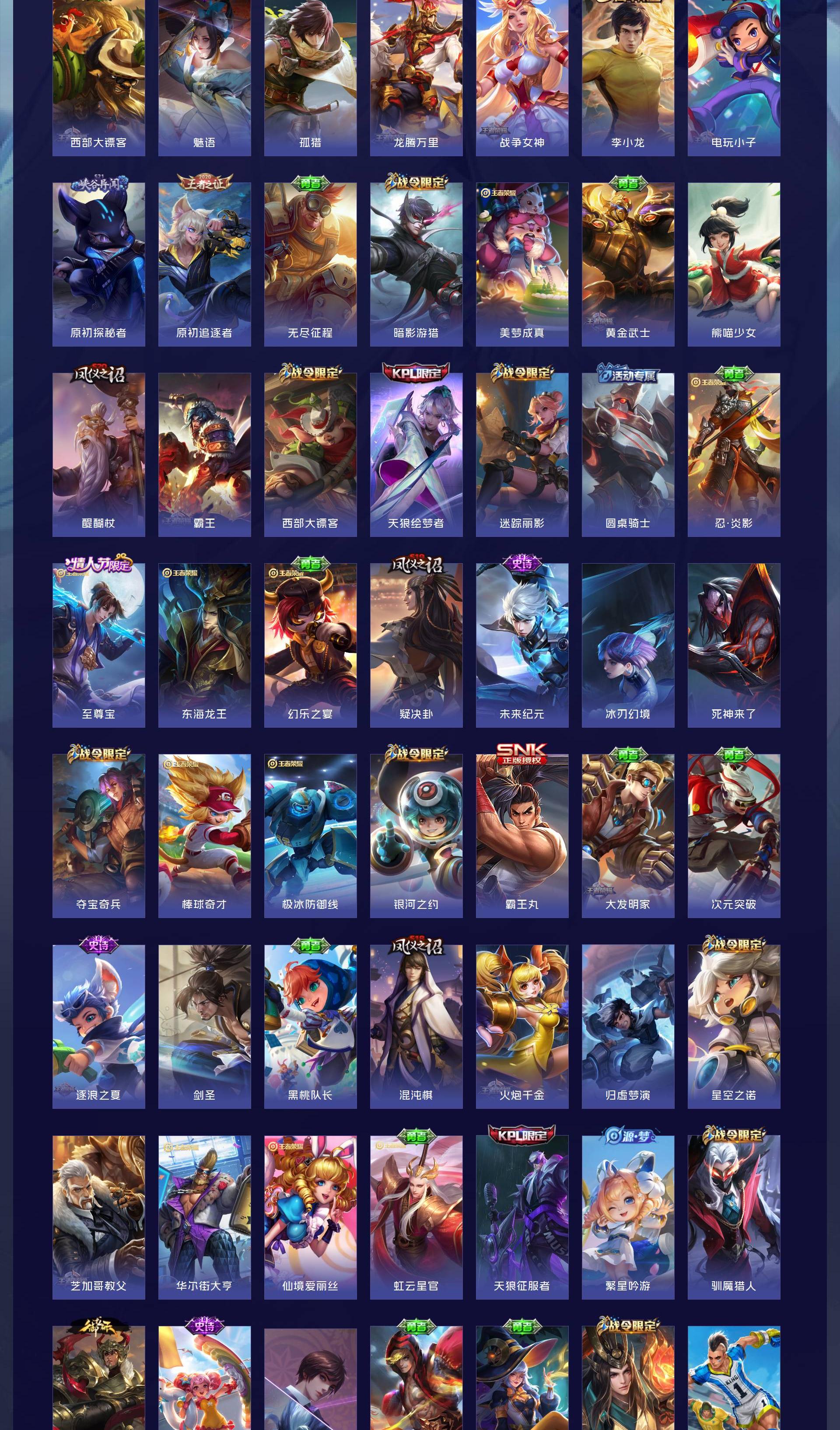 V9 皮肤416 英雄128 绝世王者 荣耀典藏2 无双皮肤2 珍品传说1 星传说7 传说36 其他皮肤376