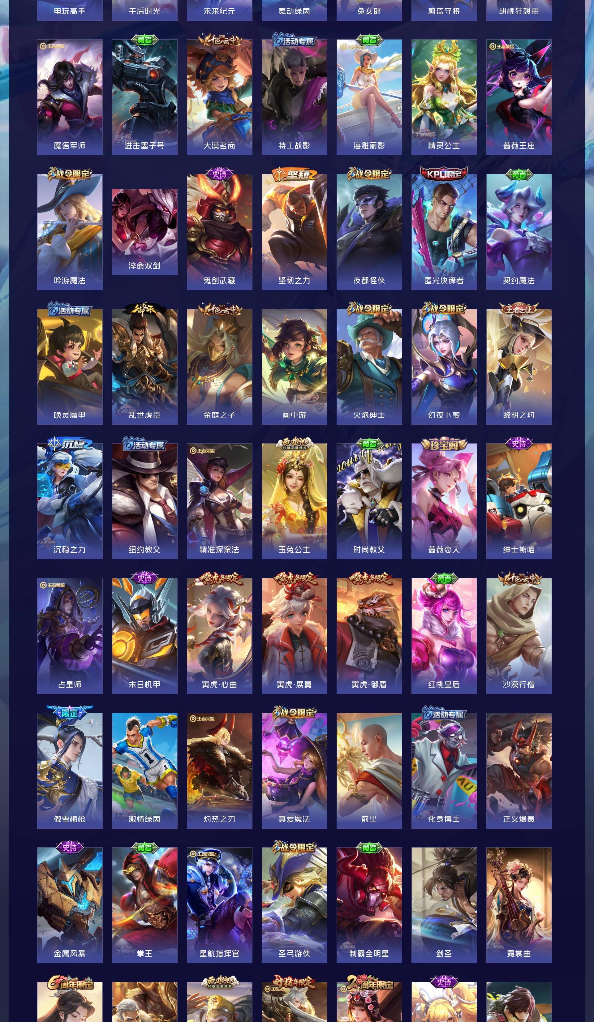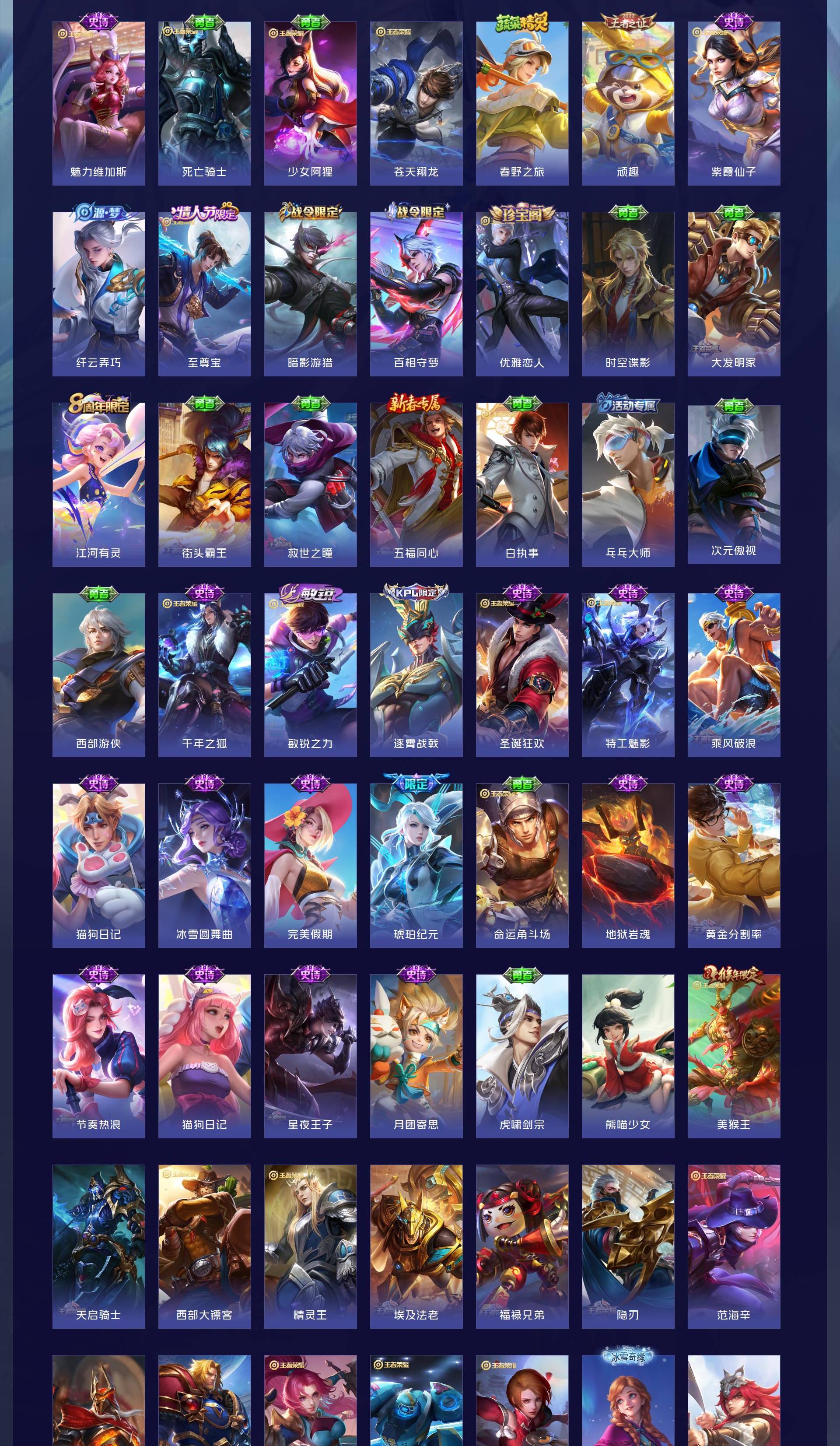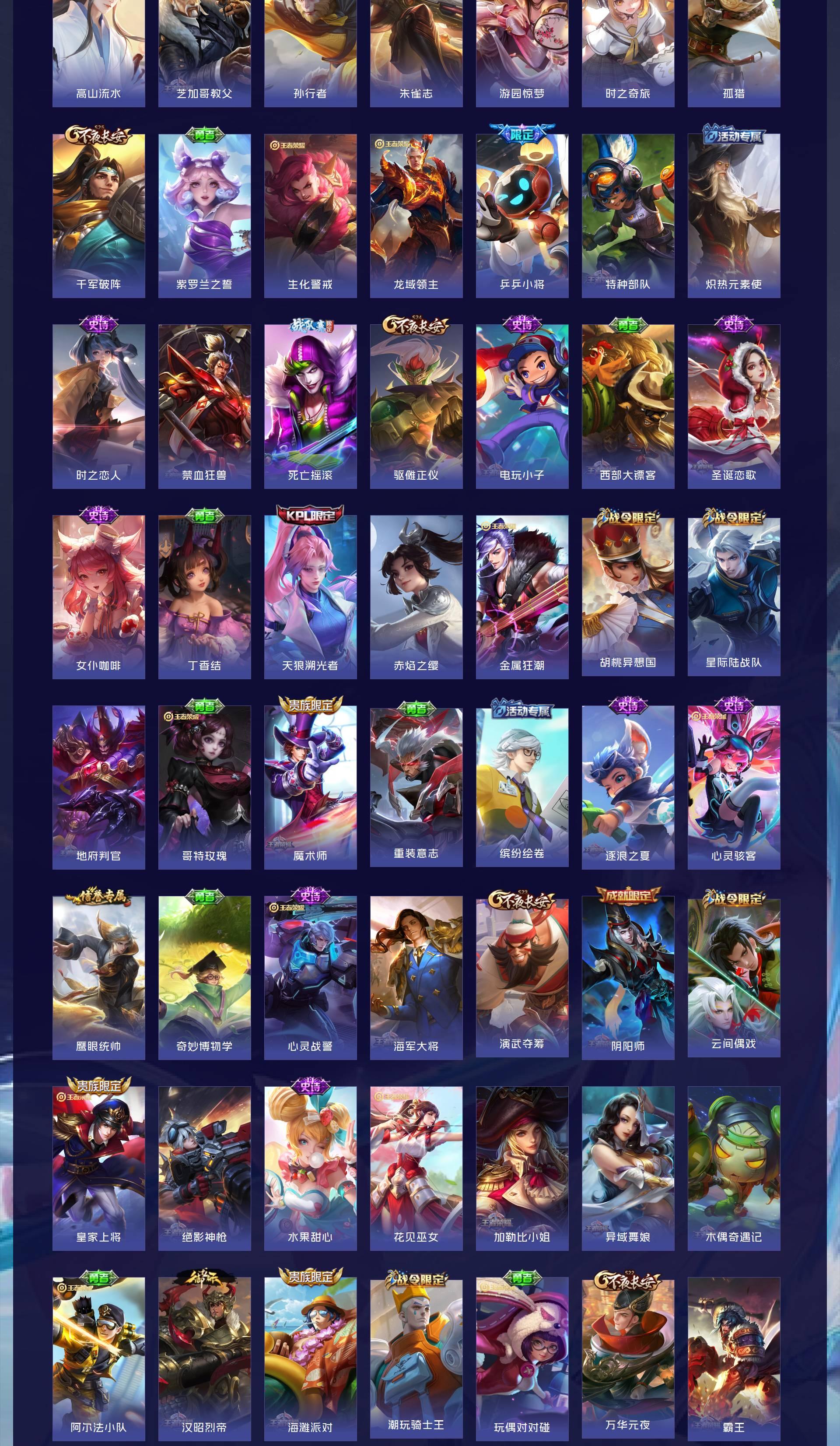 V9 皮肤316 英雄129 最强王者 荣耀典藏2 无双皮肤1 传说30 其他皮肤289
