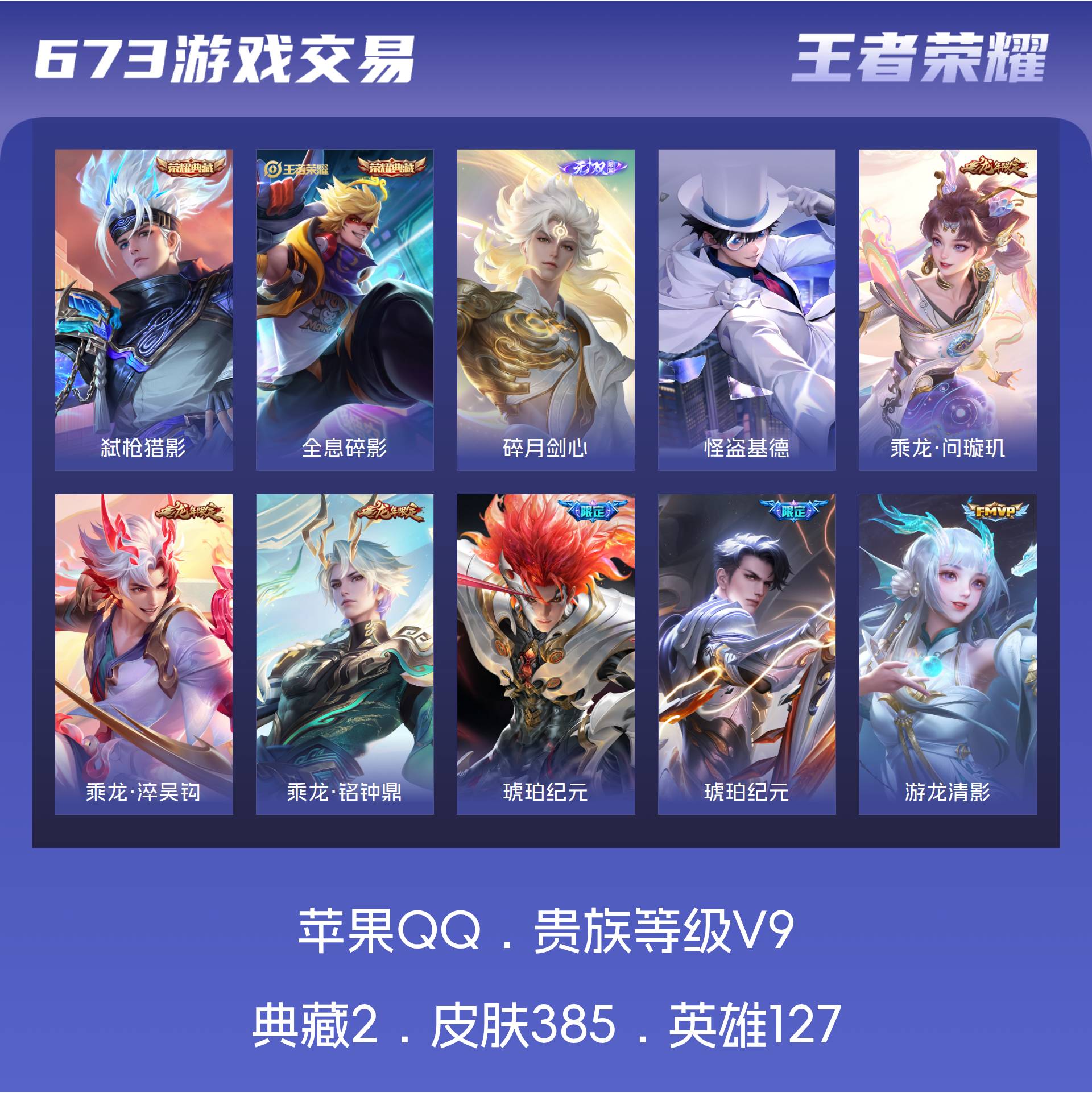 V9 皮肤385 英雄127 永恒钻石 荣耀典藏2 无双皮肤1 珍品传说1 传说36 其他皮肤351