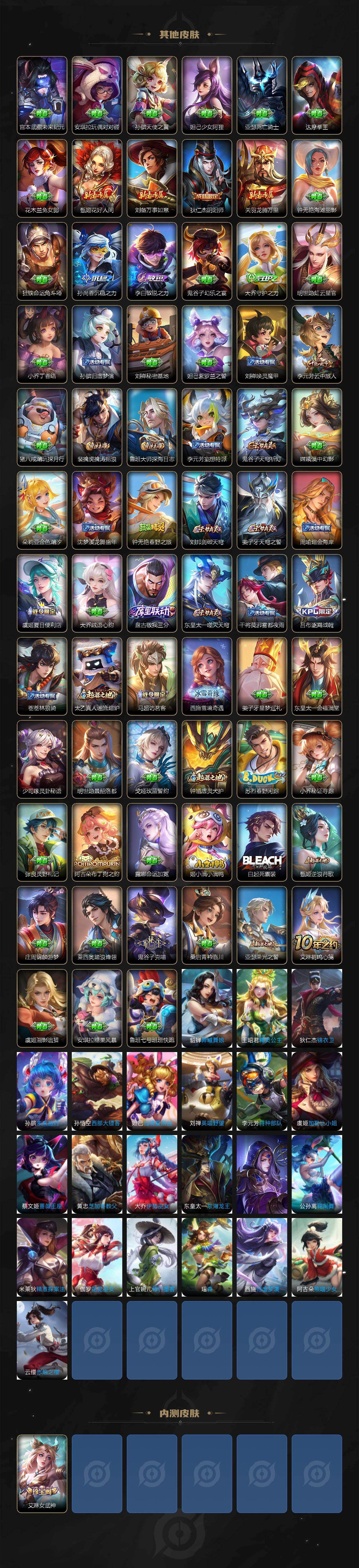 【限定皮肤】:蔡文姬夏日便利店,大乔绒语心约,虞姬夏日便利店,姜子牙天穹之誓,狄仁杰阴阳师,赵云皇家