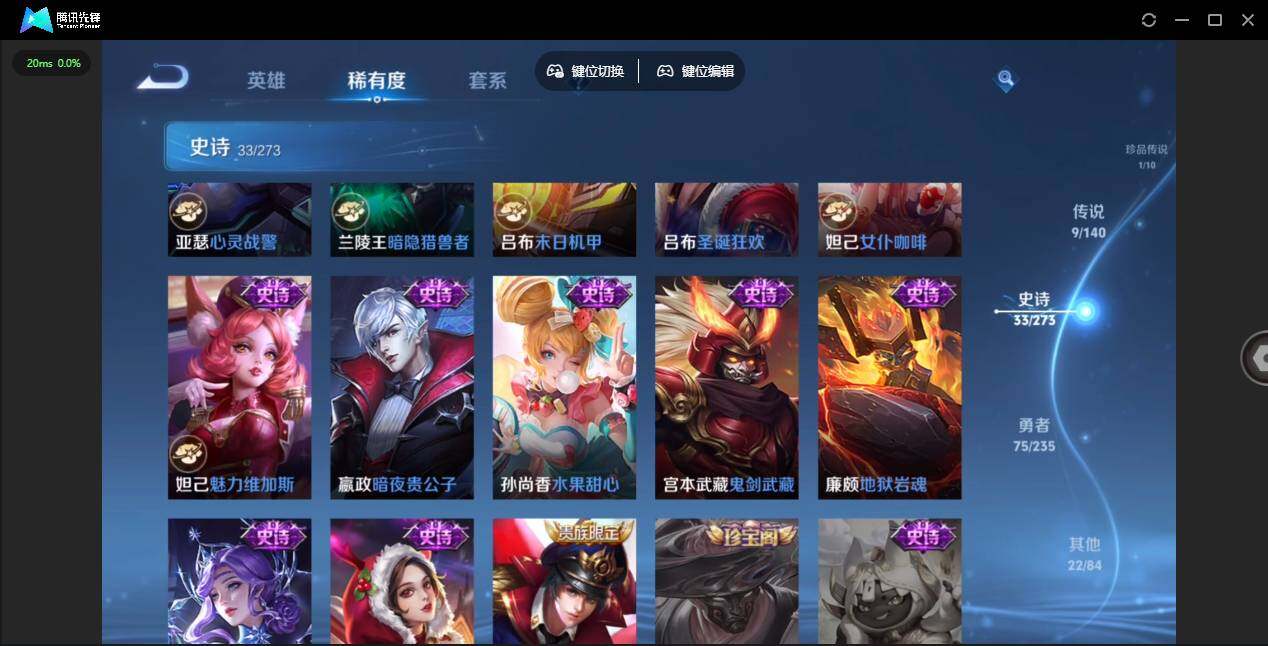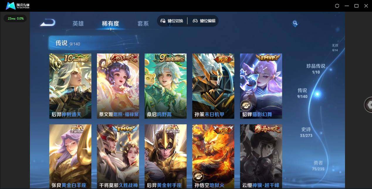 安卓Q-V5-至尊星耀V段位-123英雄-140皮肤-1珍品传说-9传说-32
