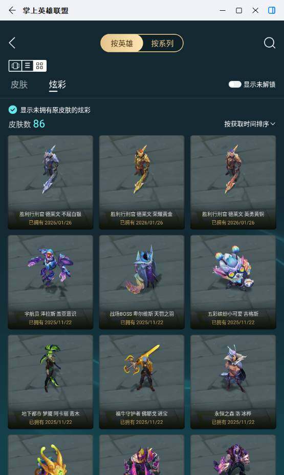 未定级段位-172英雄-339皮肤-86炫彩-1终极-12神话-40限定-23