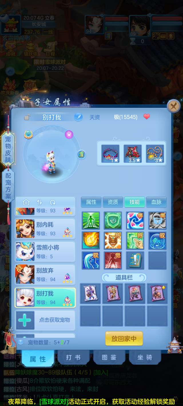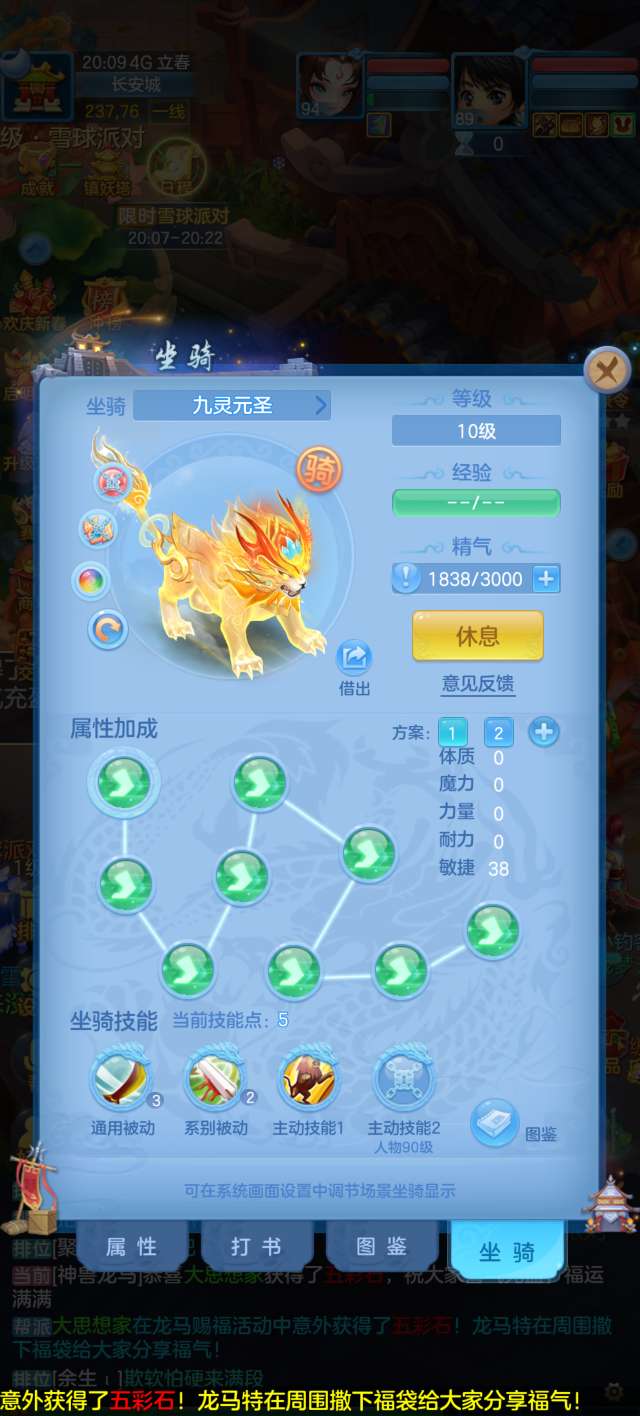 新区等级刚开《锦绣金秋》 90级好运万兽内丹隐追蛇,九圣元灵坐骑,5技能大波,5技能47,5技能九头